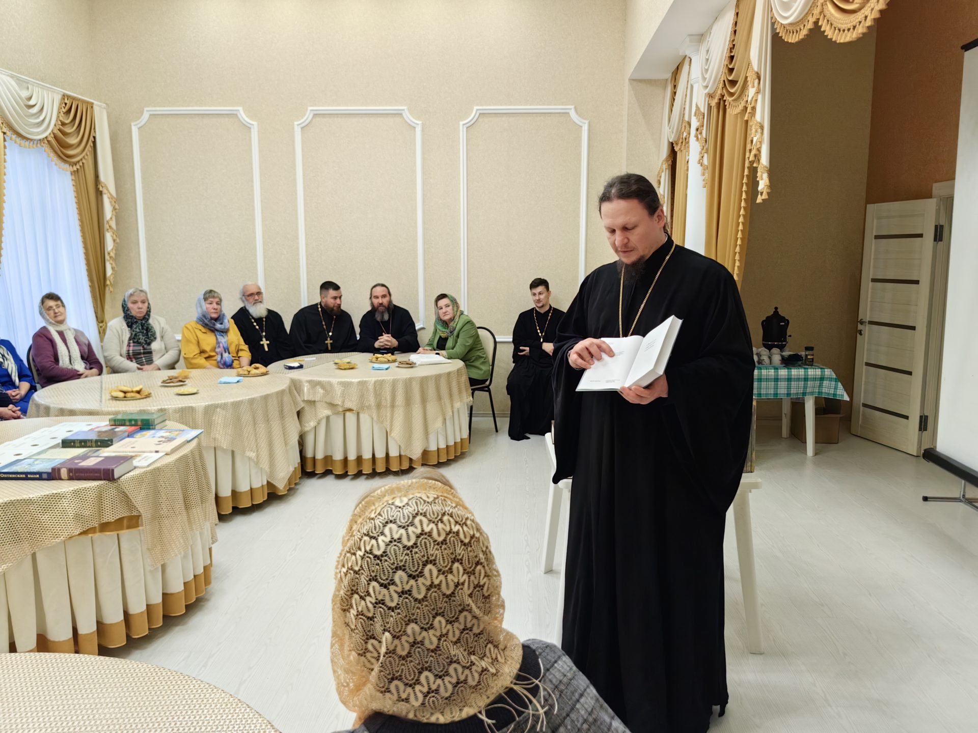 Епископ Макарий рассказал участникам встречи о жизненном пути великого русского писателя и обстоятельствах его открытия для себя Евангелия во время пребывания на каторге в Омском остроге. В ходе дискуссии состоялось обсуждение состояния читательской сферы в муниципальном округе.