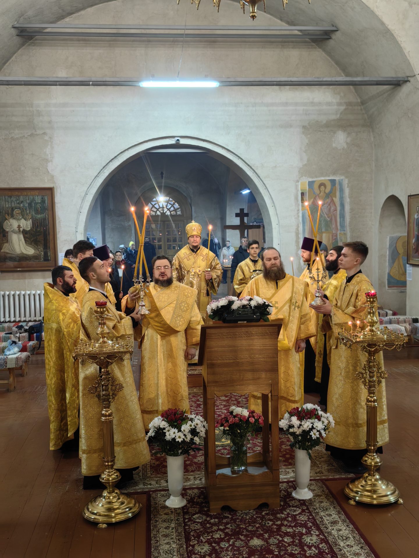 По окончании богослужения епископ Макарий поблагодарил гостей Козельска и пожелал всем участникам хорового коллектива помощи Божией и дальнейшего творческого развития и профессионального роста.