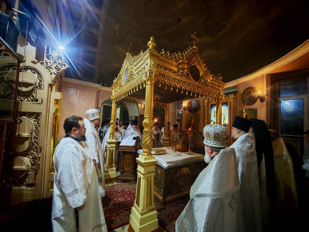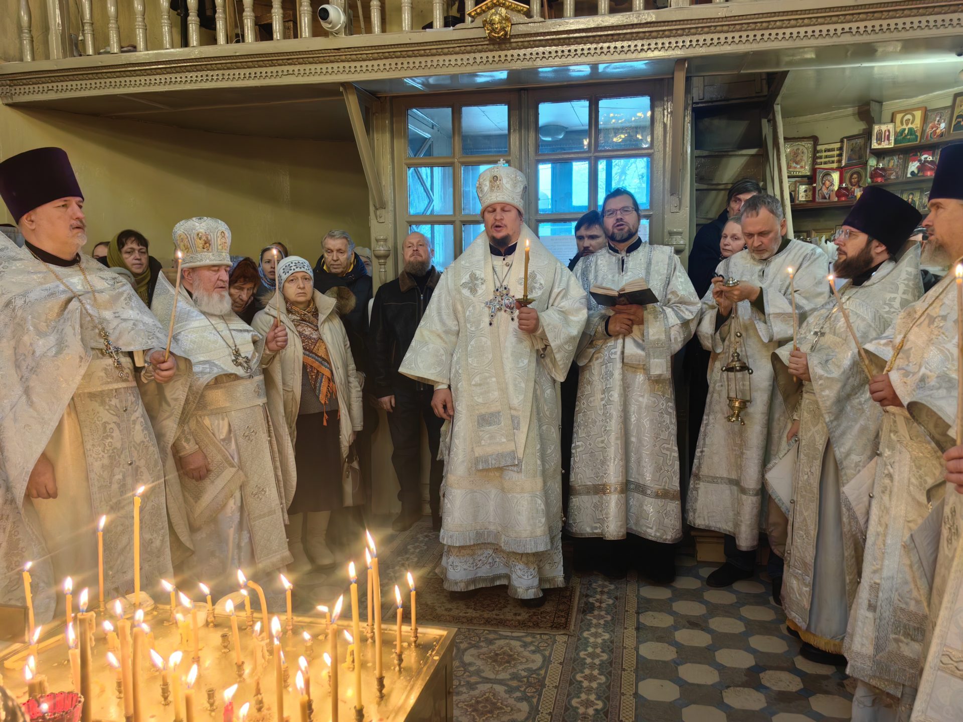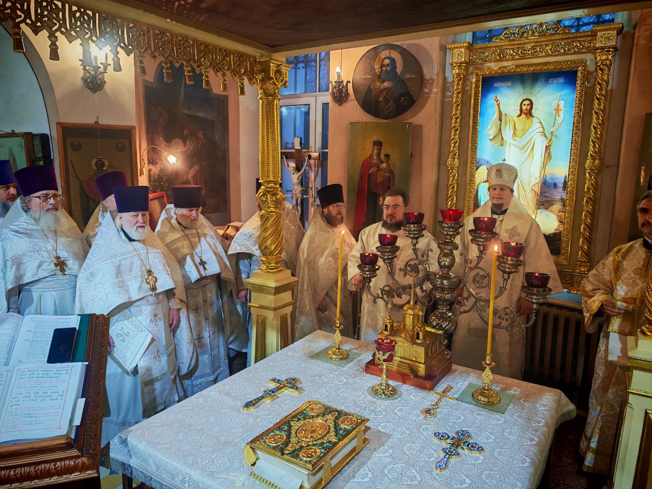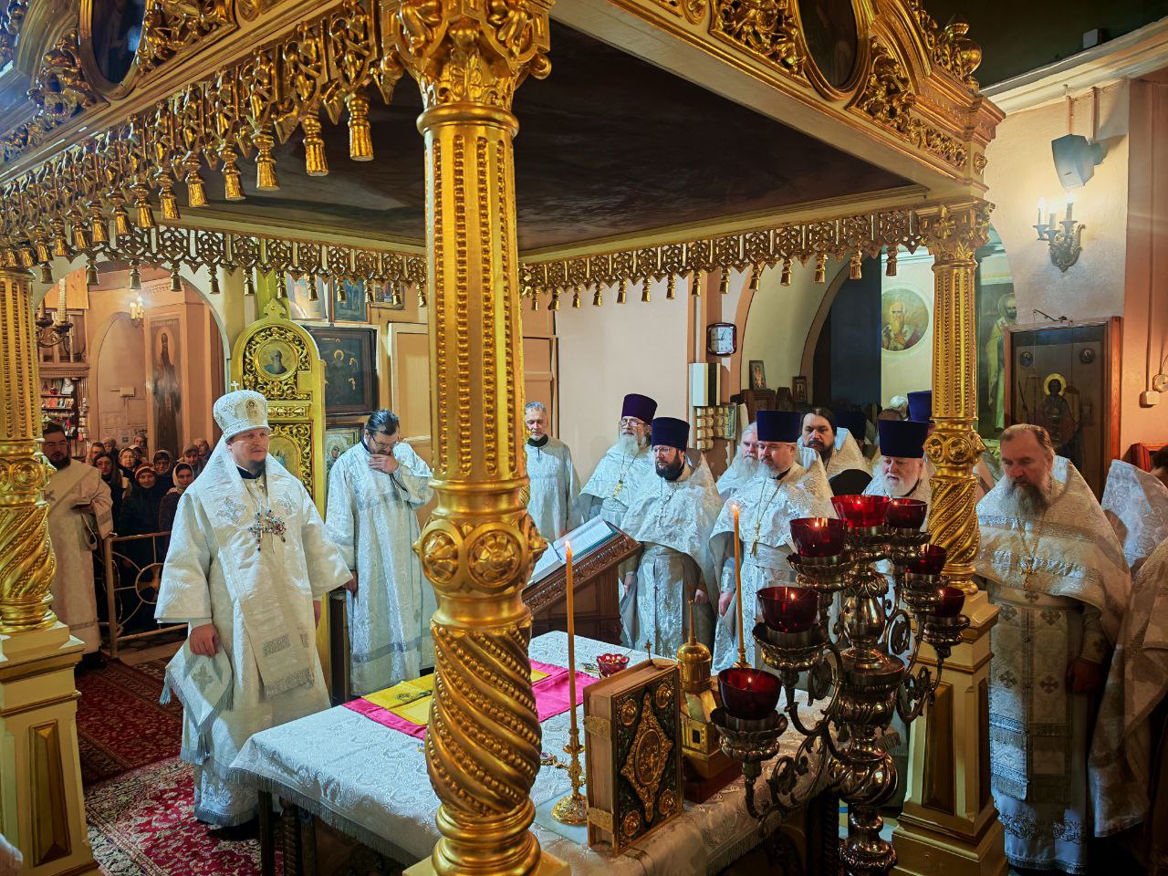 Архипастырю сослужили 25 священнослужителей, в том числе сыновья приснопоминаемого о. Валериана — протоиерей Феодор, иерей Тихон и диакон Николай Кречетовы.