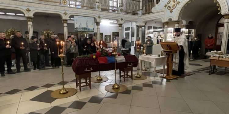 Отпевание погибших воинов в Казанском соборе города Людиново