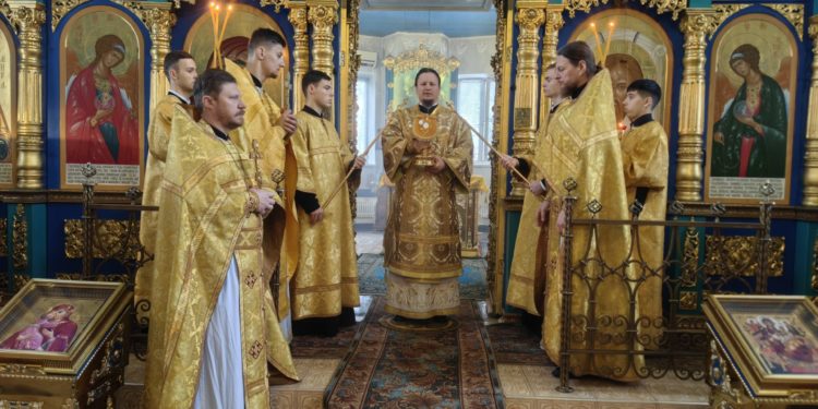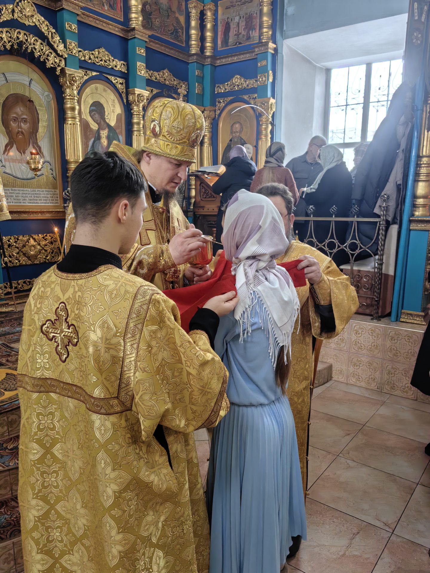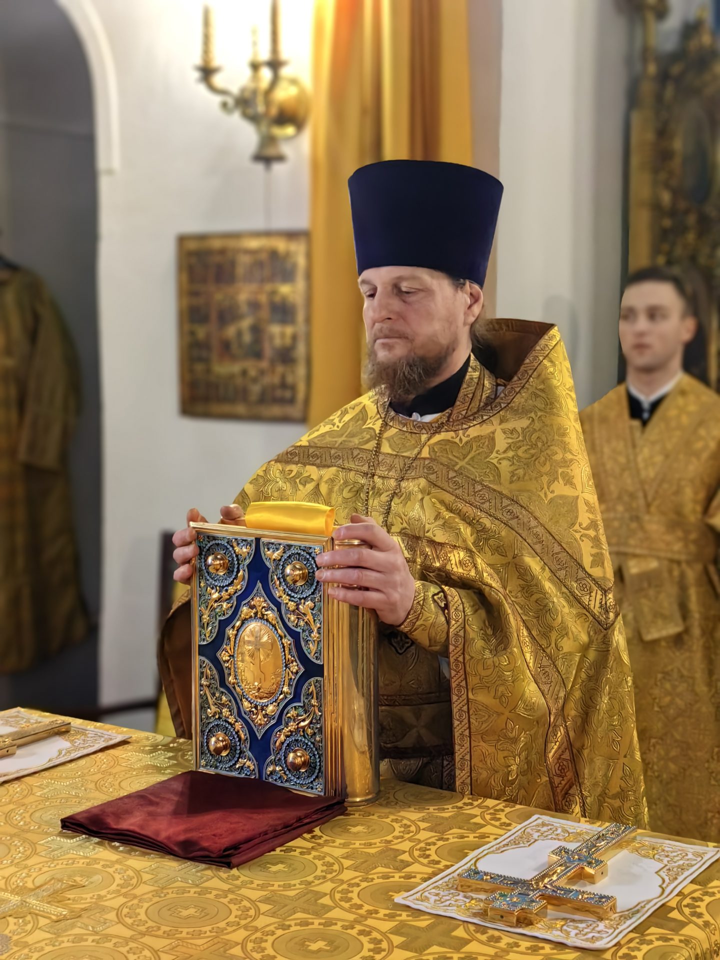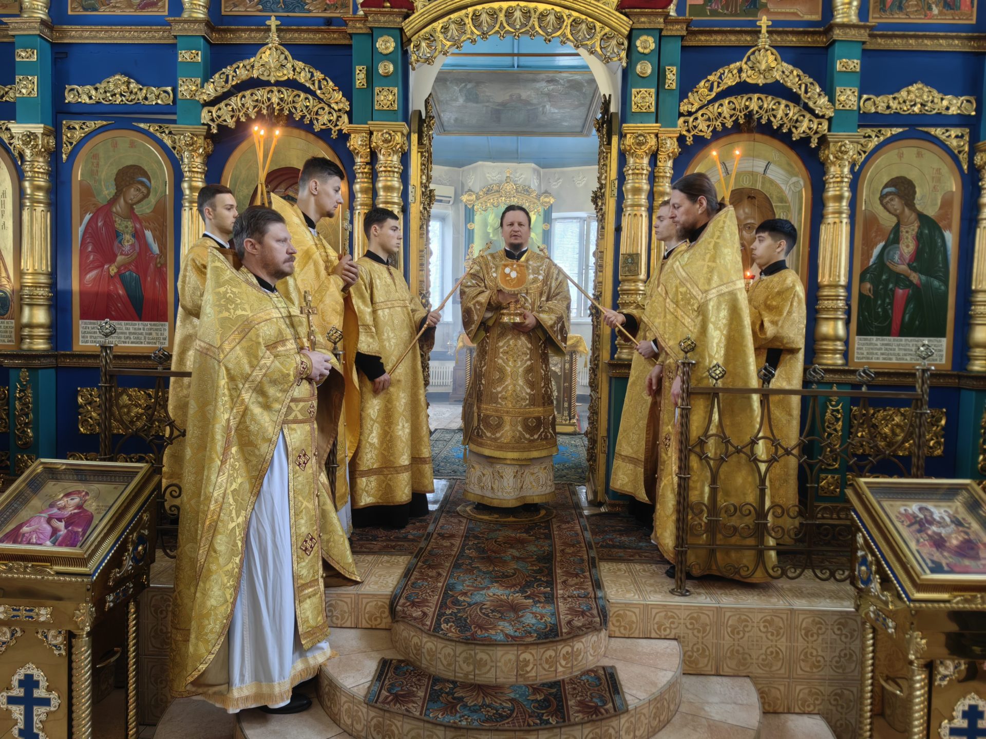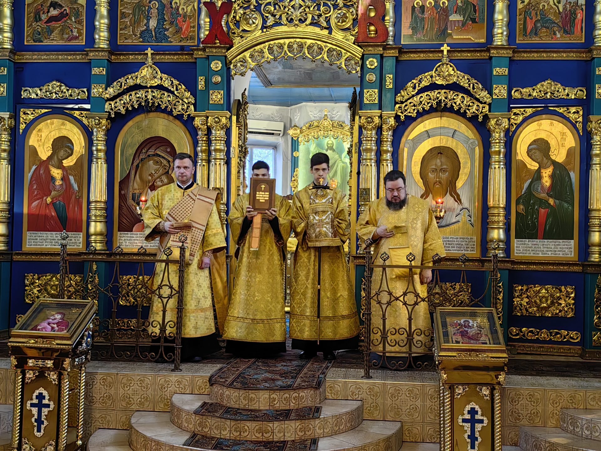По окончании Литургии было совершено славление и чин освящения восстановленных икон, а также прочитана молитва о здравии всех воинов из Сухиничей, которые выполняют свой воинский долг в зоне проведения Специальной военной операции.
