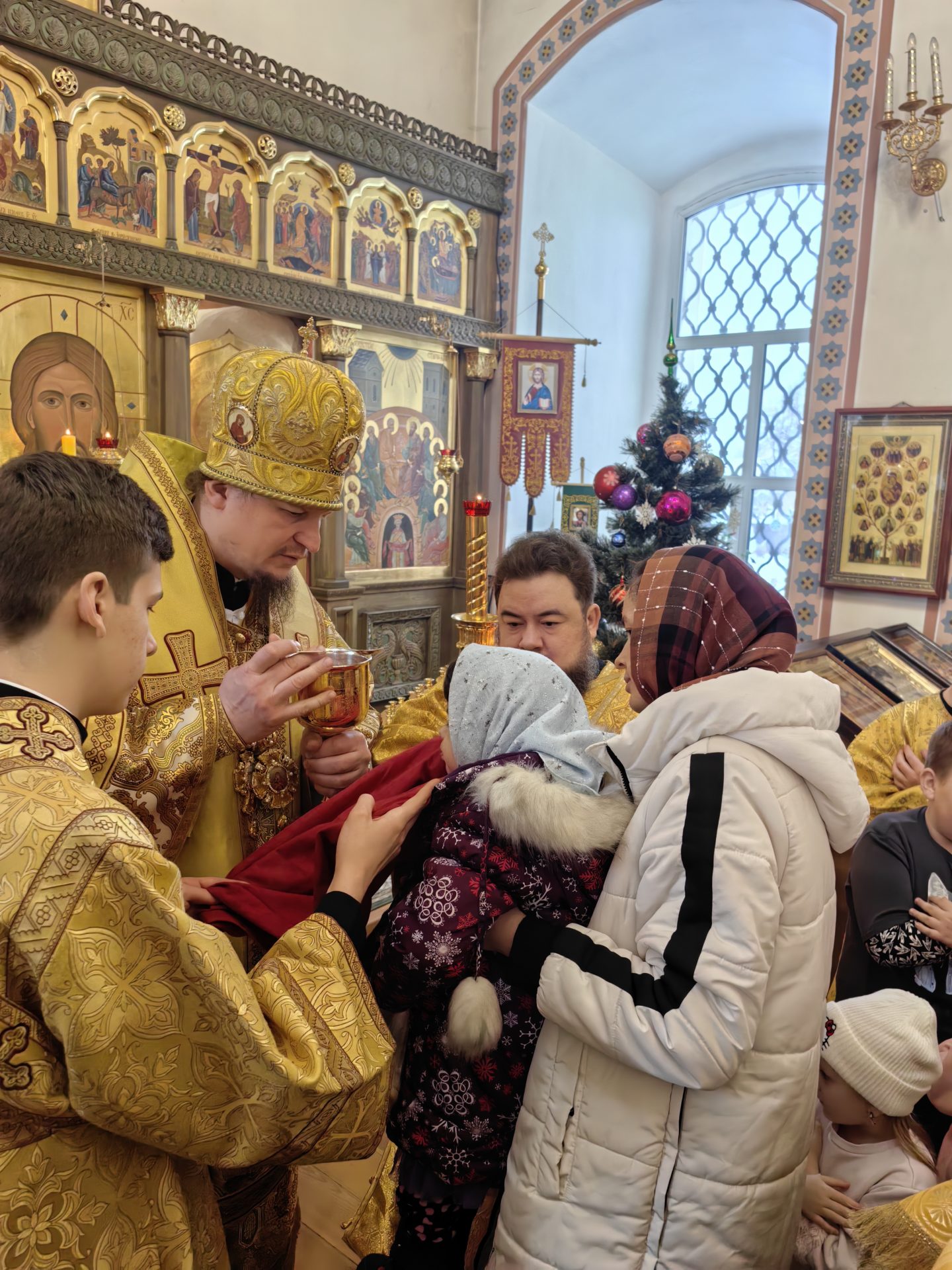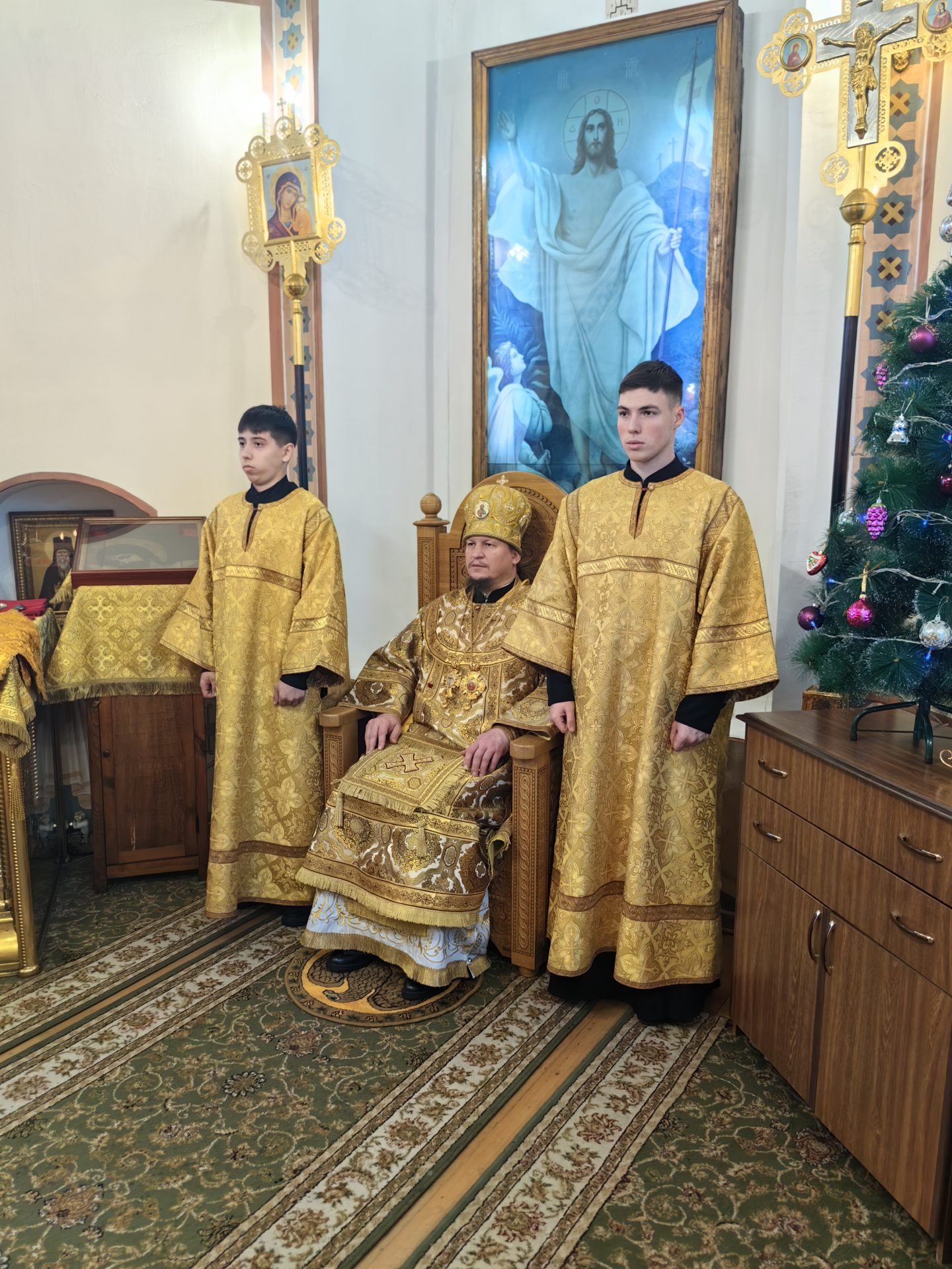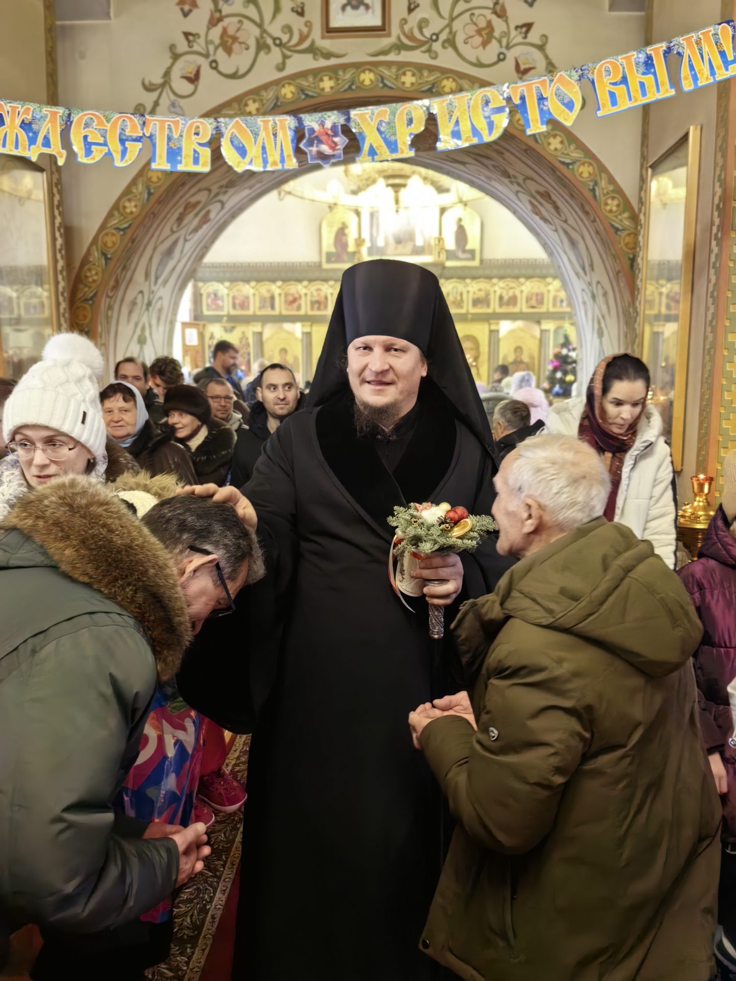 Епископ Макарий обратился со словом проповеди: «Сегодня в евангельском чтении мы слышали с вами перечисление родов, которые составили древо, произрастившее по плоти Господа нашего Иисуса Христа. В этом сонме мы видим разных людей, и праведников, и грешников, которые однако тоже стали сопричастны воплощению Бога Слова. Потому что Господь своим Рождением во плоти спасает все человечество, отверзает двери рая каждому, кто готов последовать за Ним. Мы слышали повествование о том, как произошло Рождество Христово, и с этого дня начинаются Святые Рождественские дни — устраиваются вертепы, украшаются храмы, но главное сегодня — украсить свои души добродетелями: любовью, всепрощением, радостью о Рождающемся в Вифлееме Богомладенце Христе, милосердием и искренней верой. Я всем вам желаю обрести светлое рождественское настроение, укрепиться в доброделании и любви в эти Святые дни!»