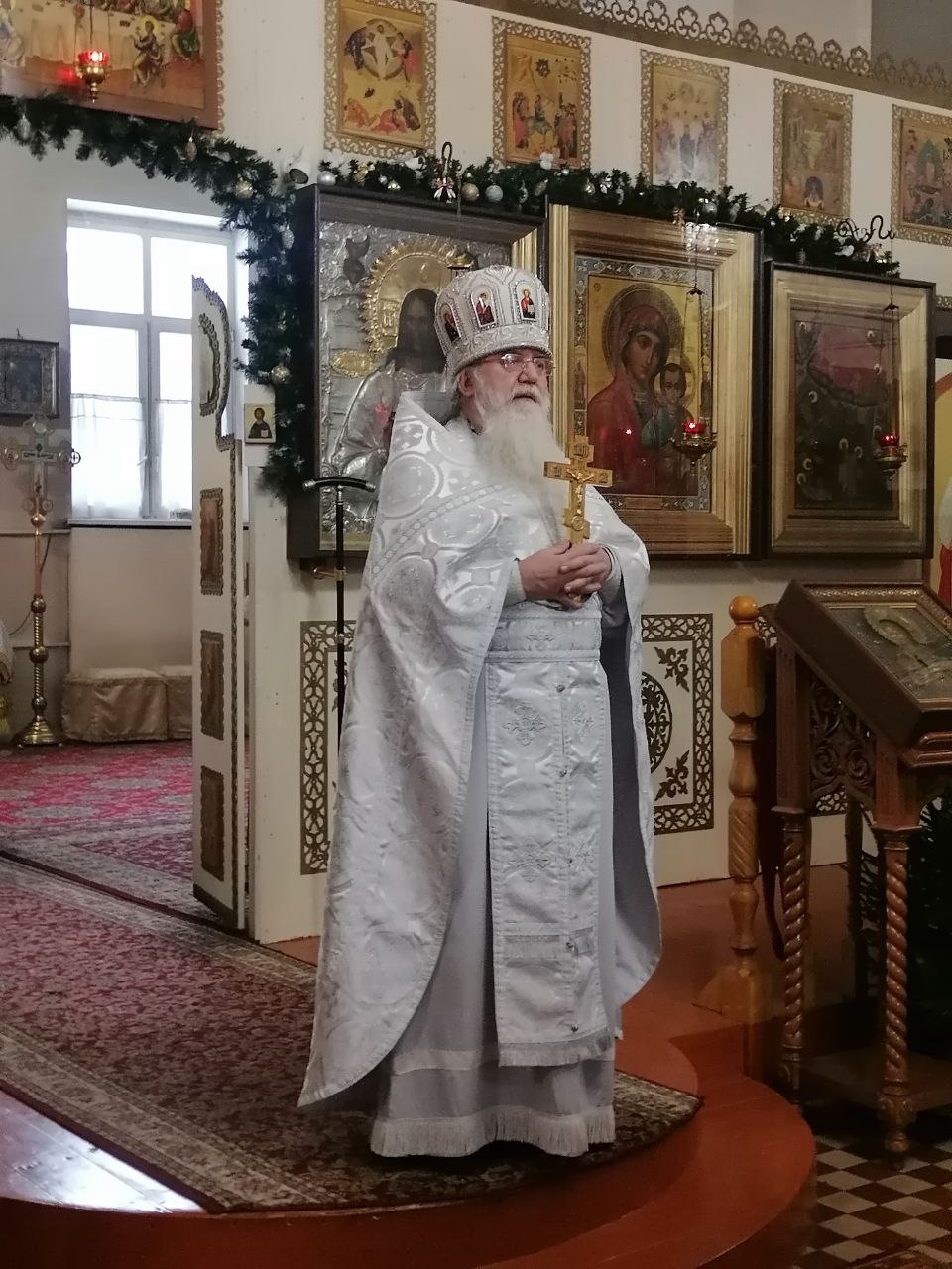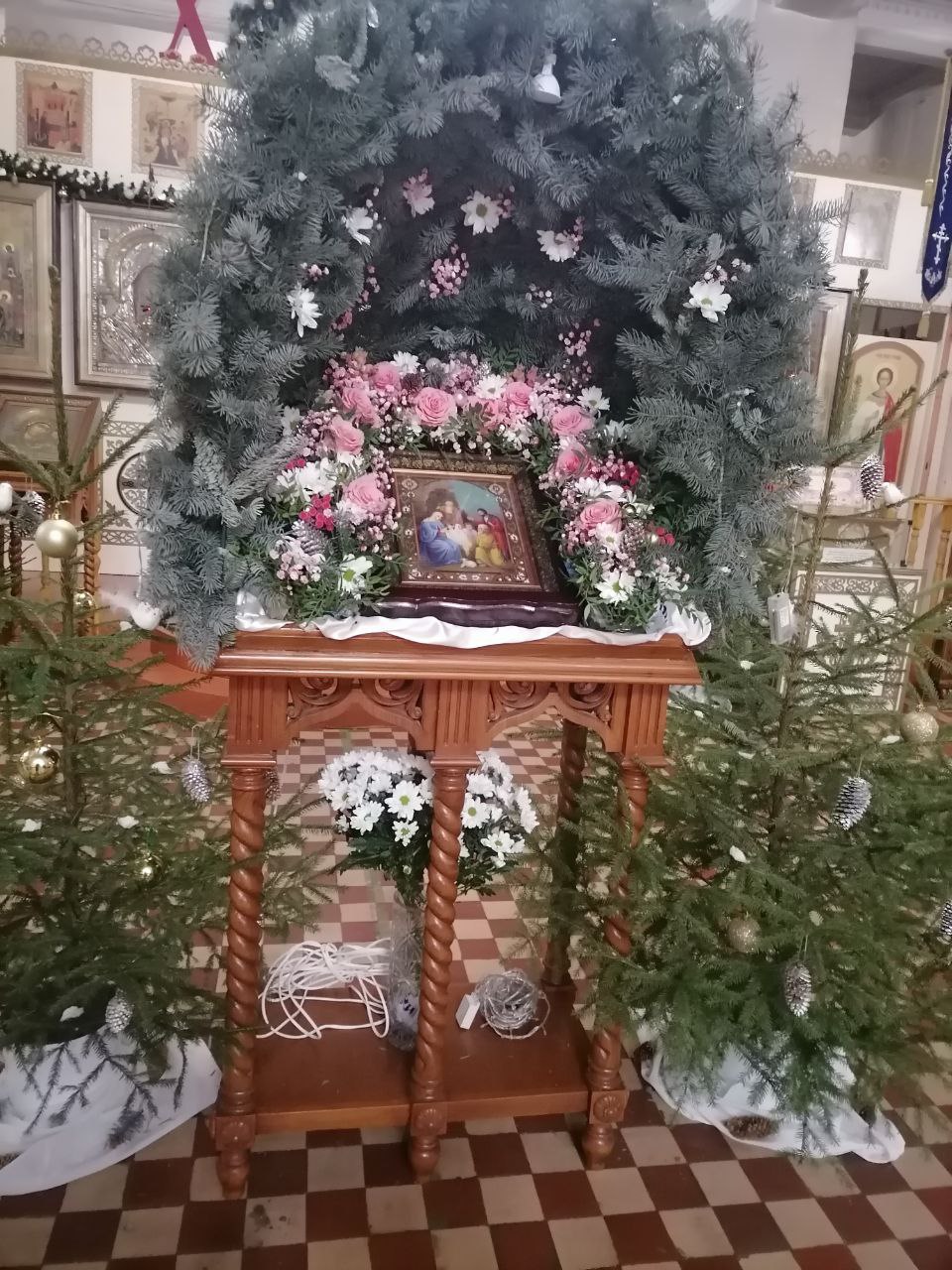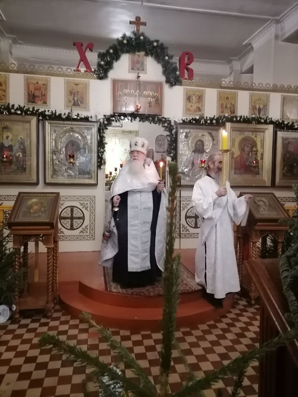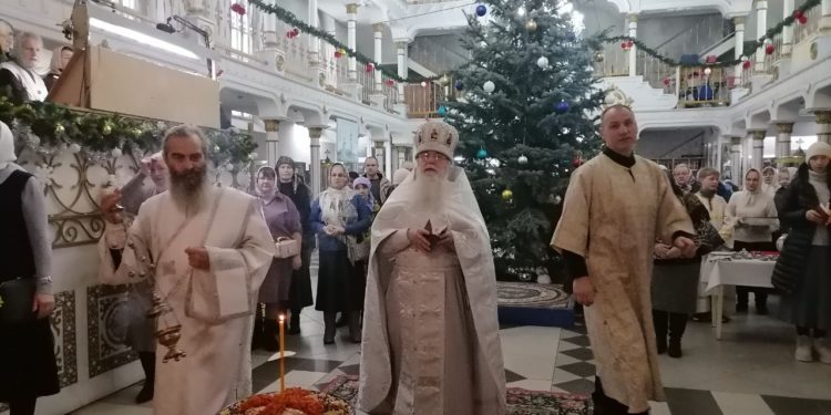 По окончании торжественного богослужения из алтаря в центр храма была вынесена свеча, символизирующая Вифлеемскую звезду. Здесь, перед этой свечой священнослужители вместе с хором пропели тропарь и кондак Рождества Христова, совершили чин освящения сочива (которое с любовью приготовили сотрудники храма по особому местному рецепту). По традиции настоятель поздравил именинников этого дня и вручил им святые просфоры.