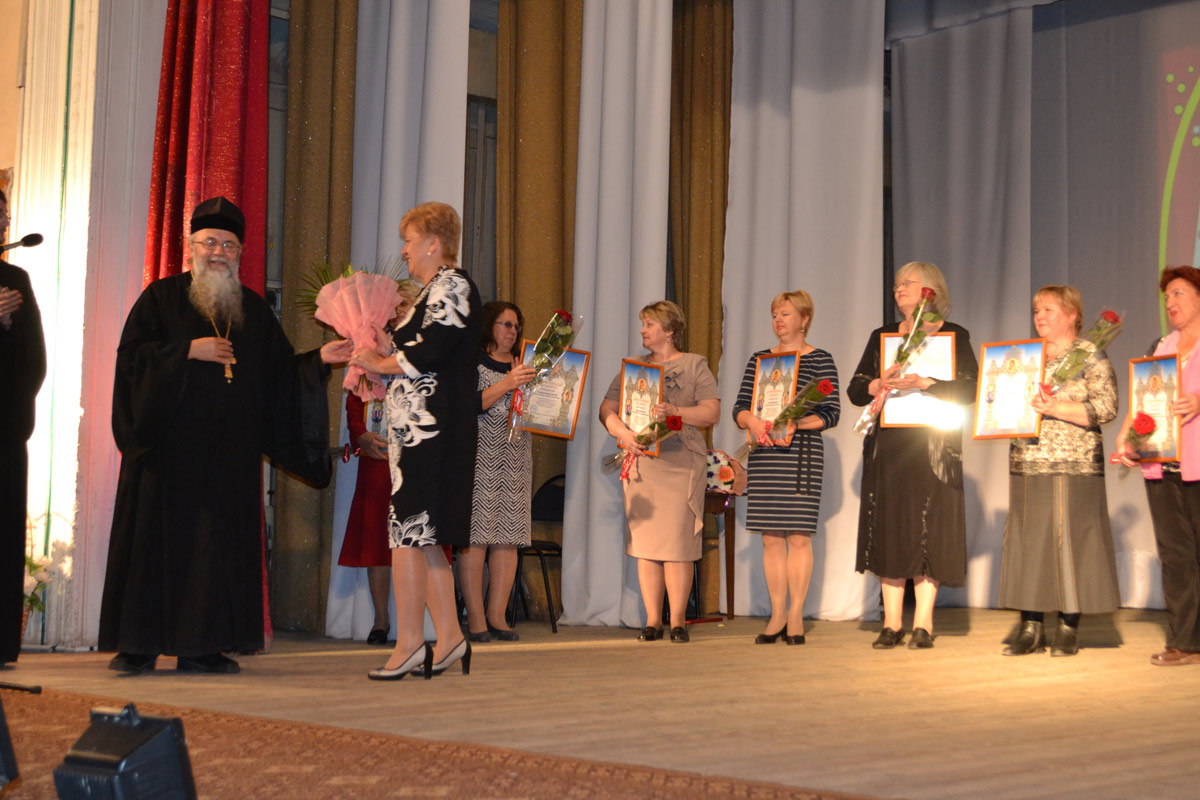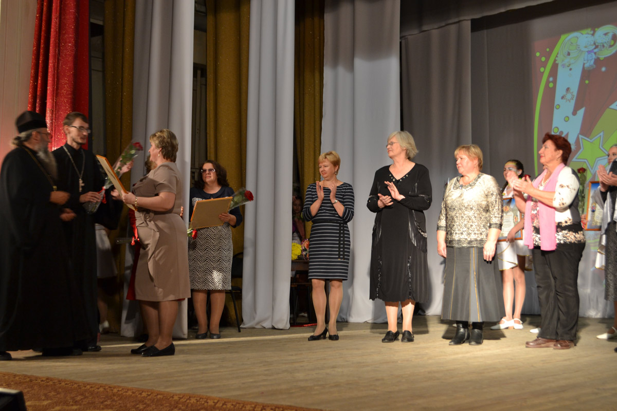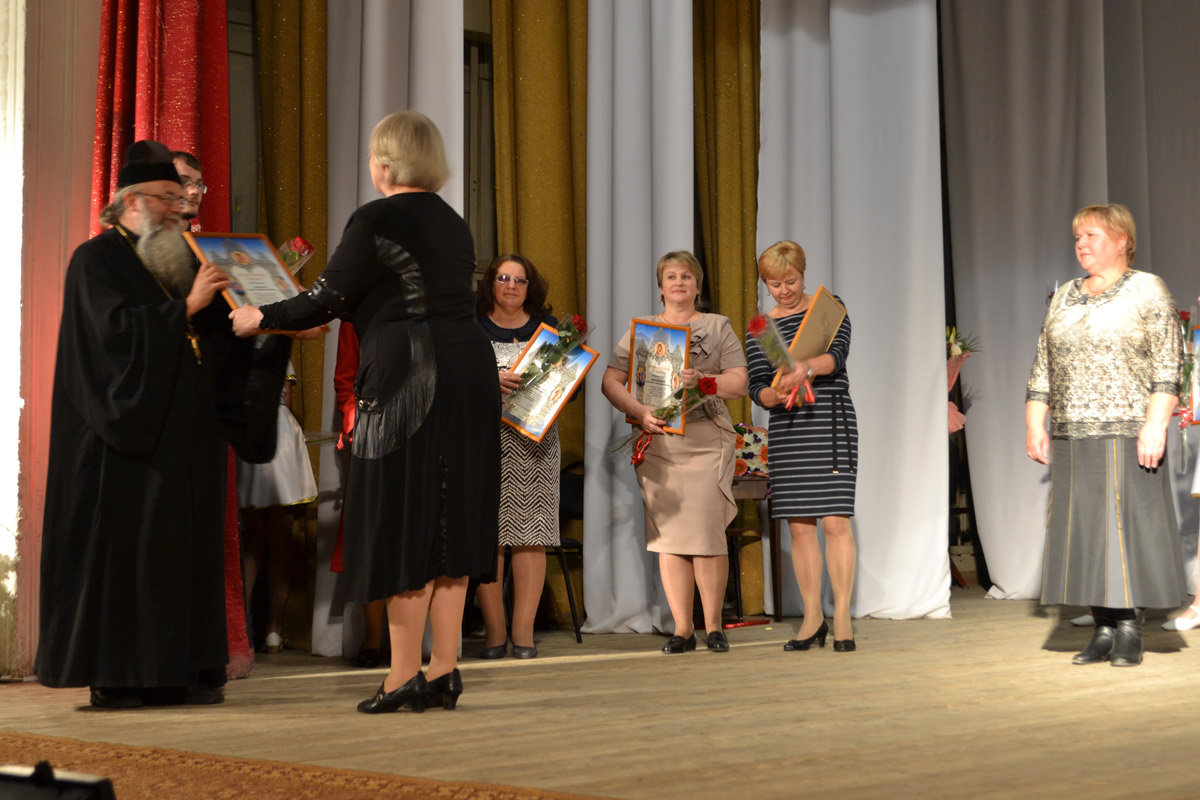 После награждения о. Алексий обратился к собравшимся педагогам со словами поздравления: «Профессия педагога сродни апостольскому служению, так как, Вы несёте свет просвещения детям. И от того каким будет этот свет, во многом зависит будущее Ваших учеников. Желаю Вам здоровья, благополучия, терпения и помощи Божией в Вашем нелёгком учительском труде».