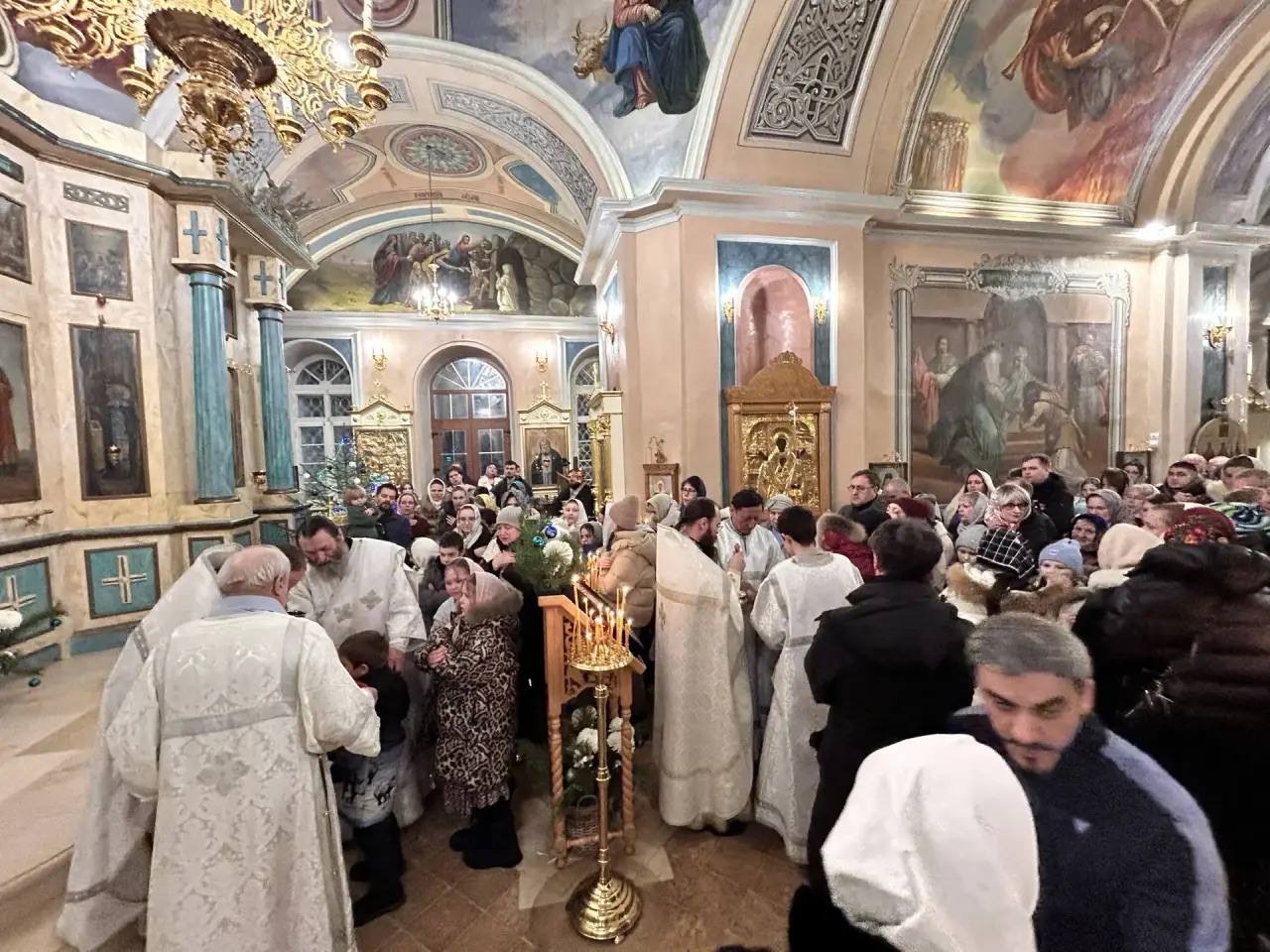 Всенощное бдение возглавил настоятель храма иерей Тихон Худяков, а ночную Божественную литургию иерей Симеон Худяков. За Богослужением были оглашены Рождественские послания святейшего патриарха и правящего архипастыря.