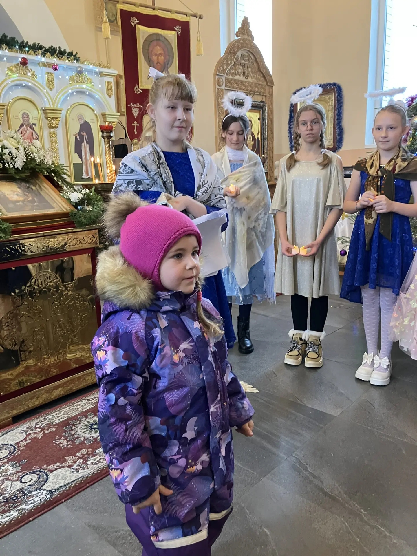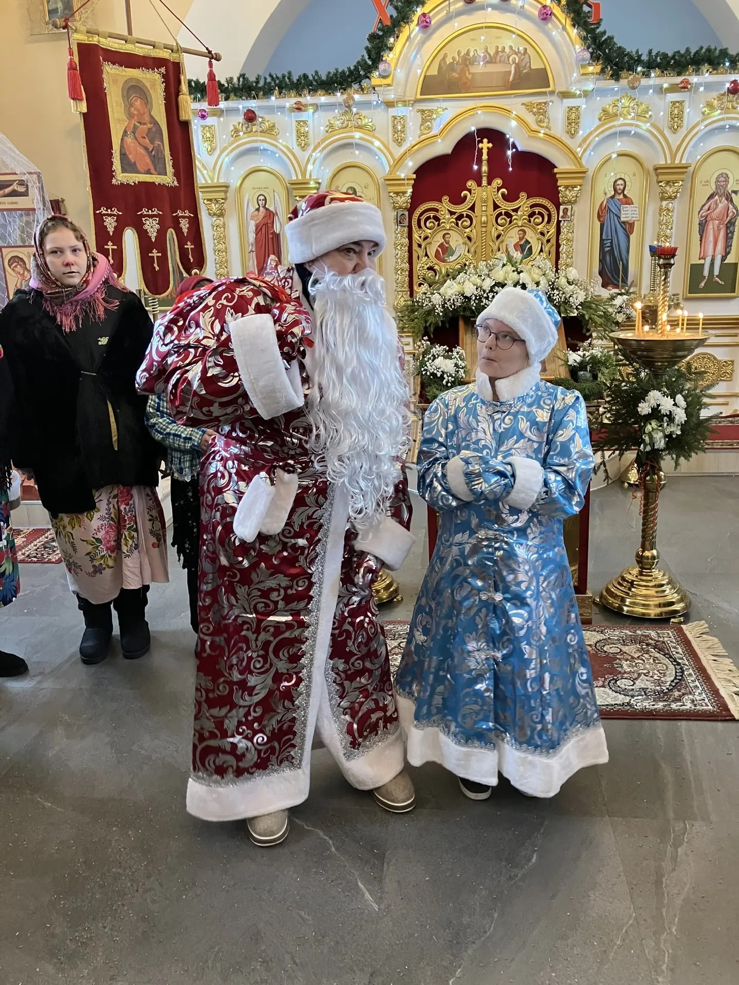 По отпусте перед праздничной иконой было совершено славление праздника. Затем священник Григорий поздравил всех прихожан с Рождеством Христовым, пожелал крепкой веры, любви и мира.