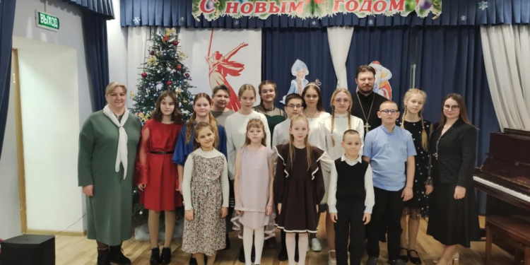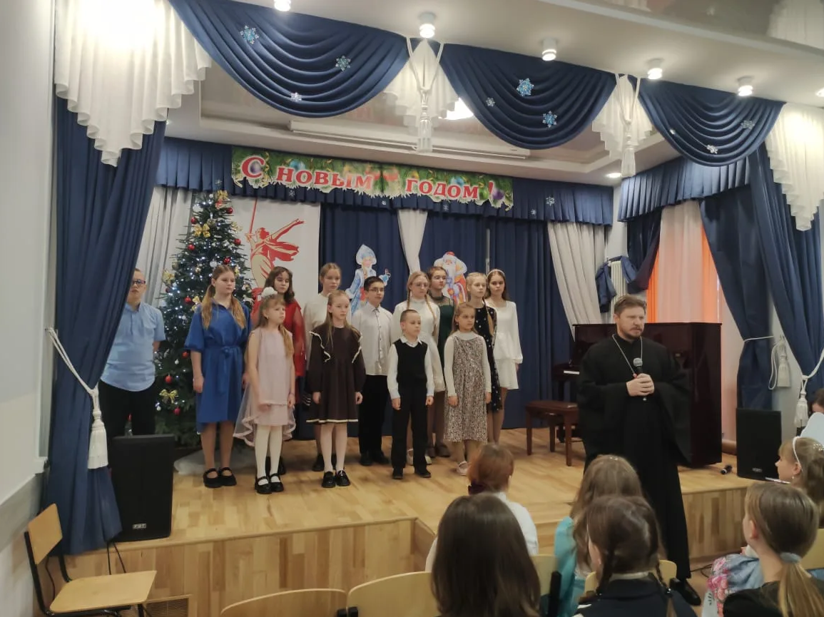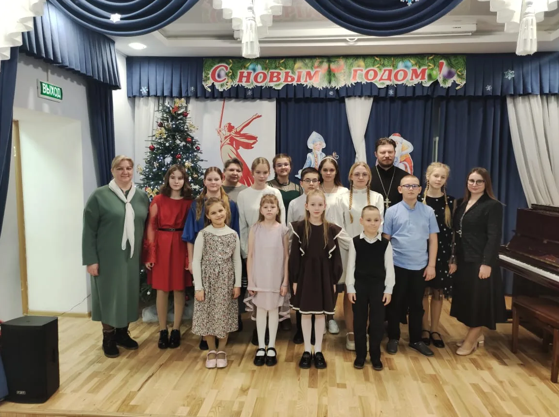 В гости к учащимся музыкантам со своей праздничной программой пришли воспитанники Воскресной школы Смоленского храма. Гостей встретили Рождественскими колядками и музыкальными номерами.