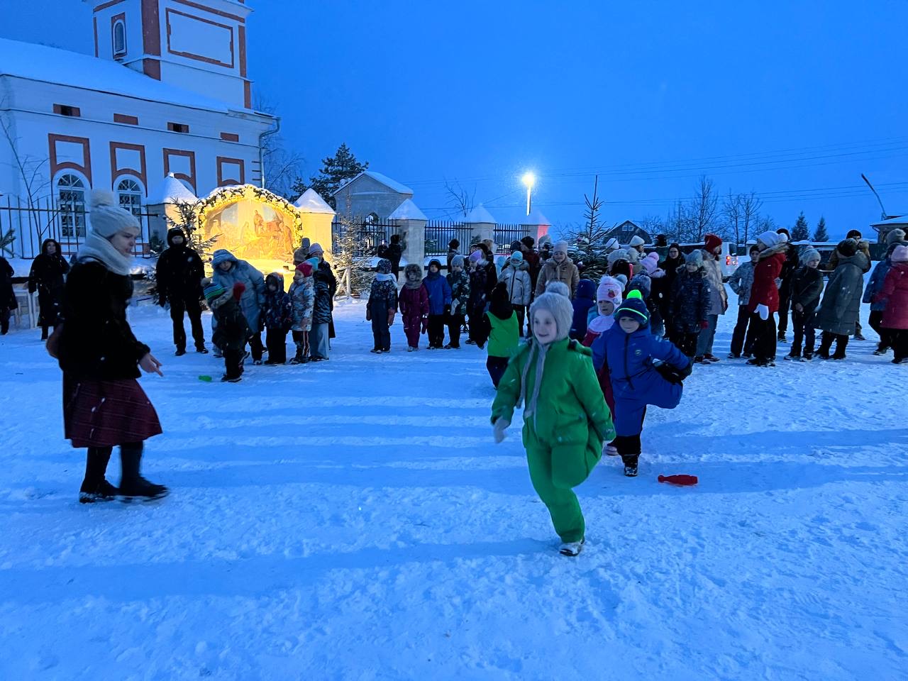 Днем, 7 января при храме Преображения Господня прошел уже ставший традиционным детский праздник, совмещенный с гуляниями на улице.