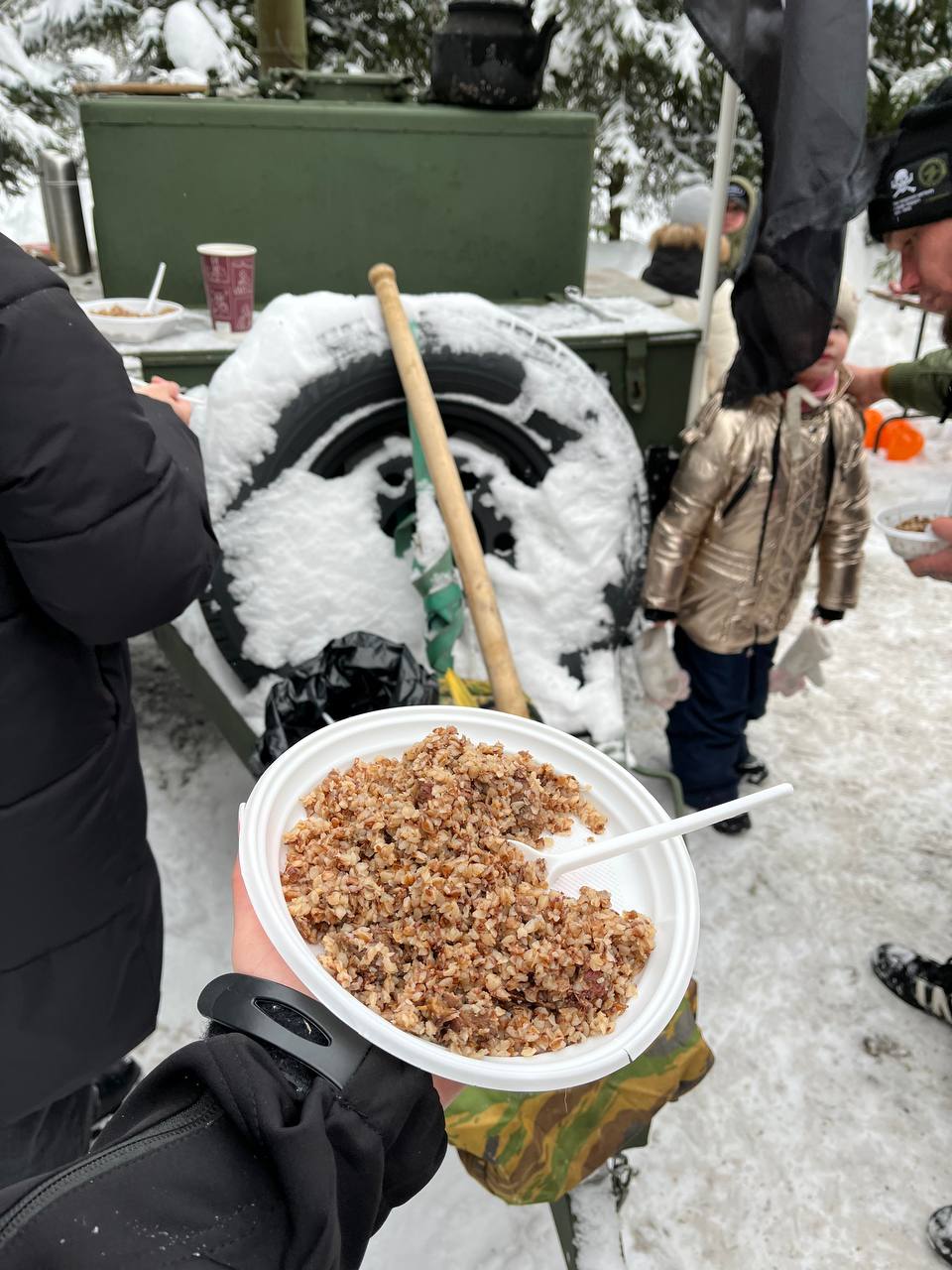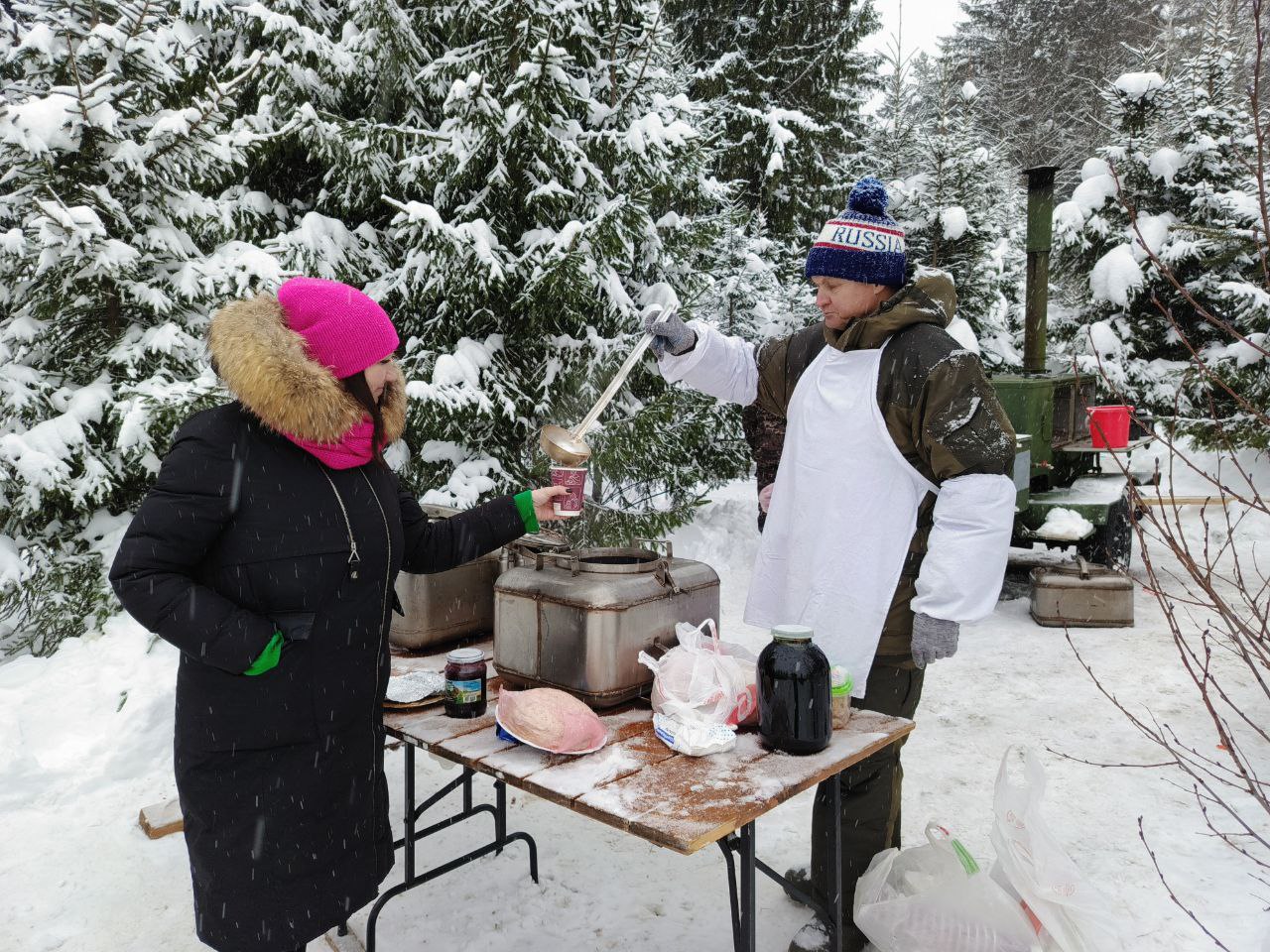 Особое гостеприимство проявилось в традиционном угощении. Из настоящей полевой кухни гостей потчевали сытной кашей, румяными блинами и ароматным травяным чаем. Несмотря на суровый январский мороз и снежную погоду, на празднике царило истинное тепло. Участники гуляний с честью выдержали испытание стихией, делом доказав стойкость русского характера и силу духа, которую не в силах сломить никакие холода.