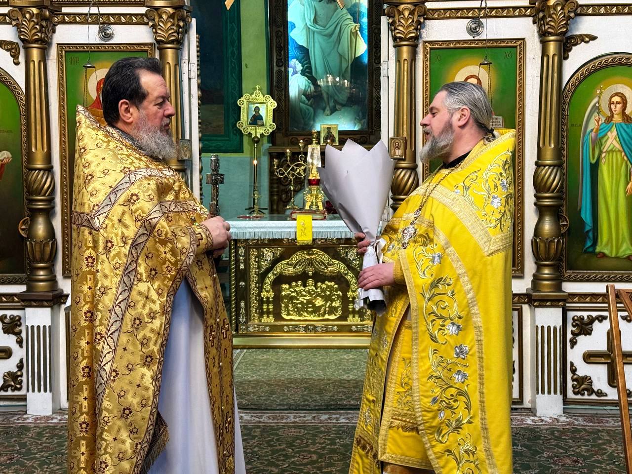В ХРАМЕ ПРЕПОДОБНОГО СЕРГИЯ РАДОНЕЖСКОГО ГОРОДА ЛЮДИНОВО ПОЗДРАВИЛИ НАСТОЯТЕЛЯ С ДНЕМ АНГЕЛА