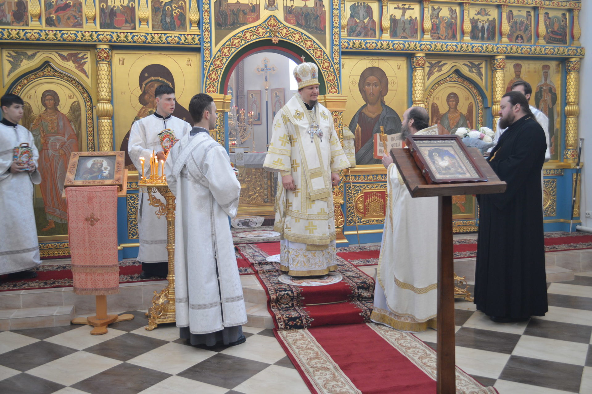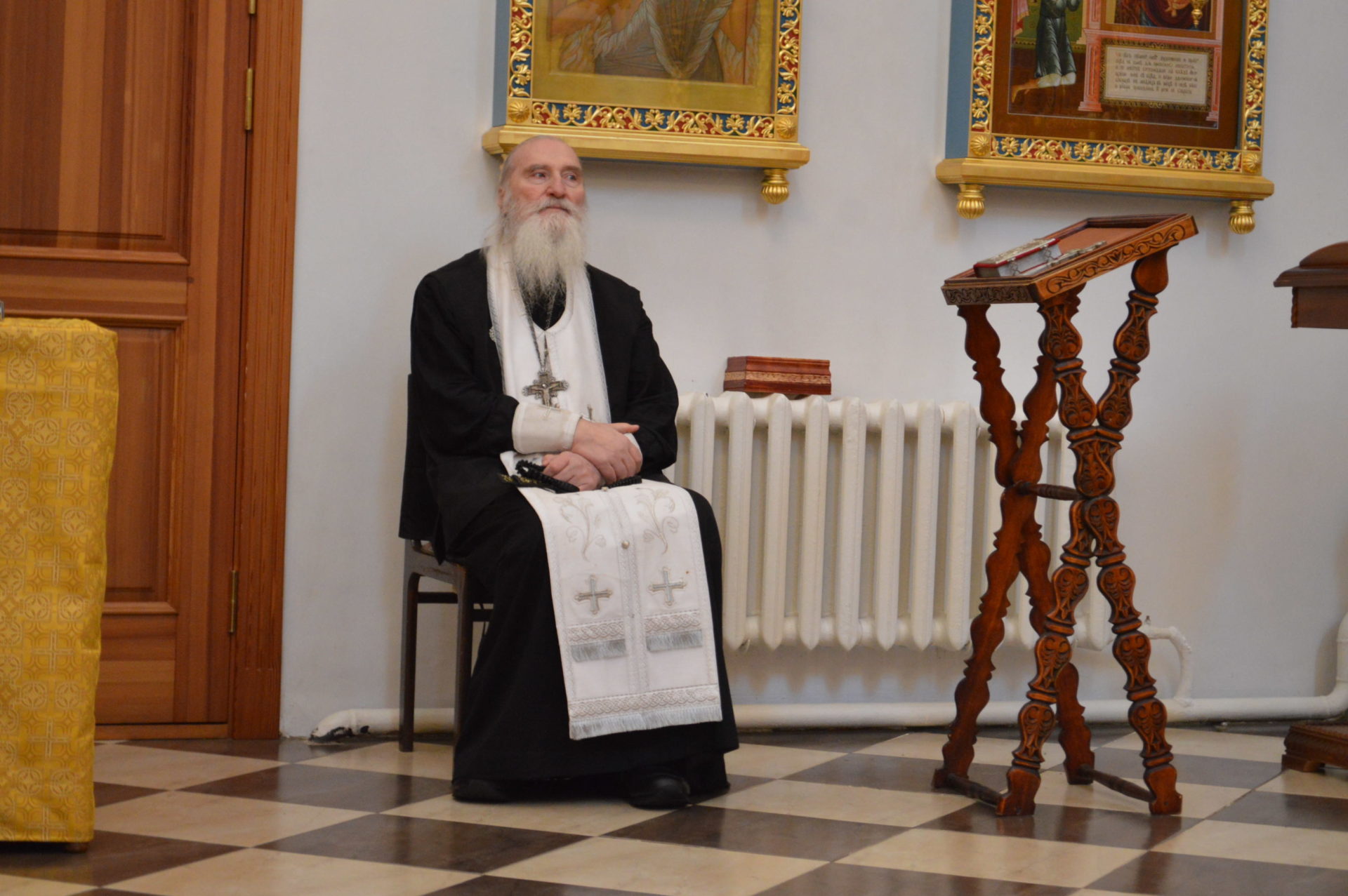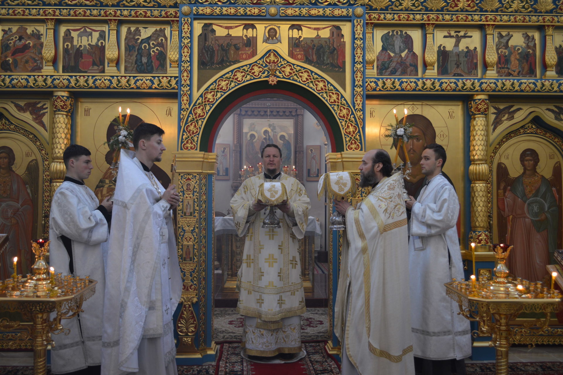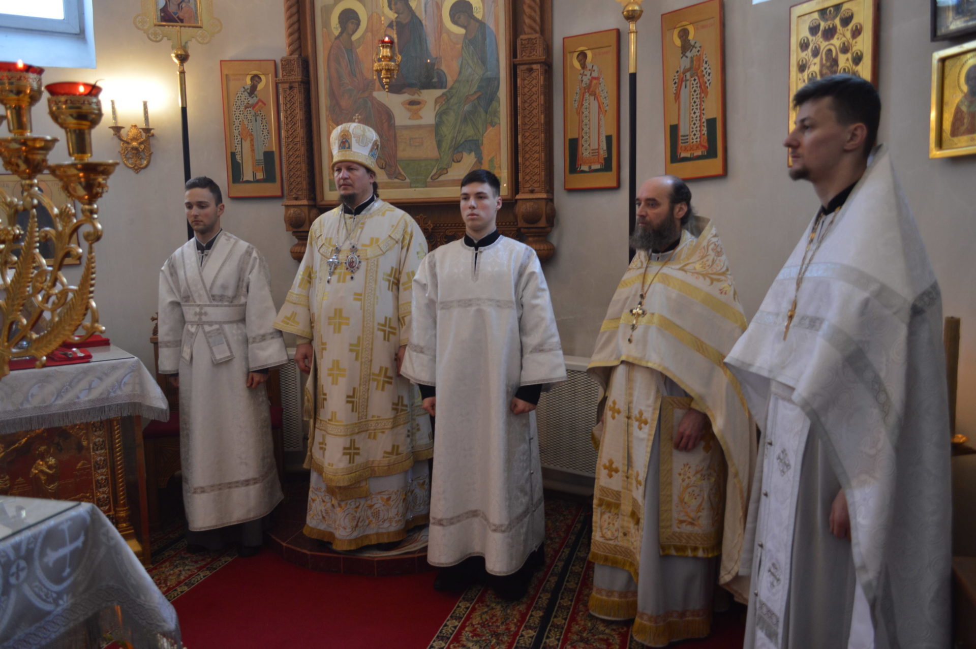 За богослужением пел мужской хор в составе: священника Сергия Марина, протодиакона Сергия Комарова и А.Л. Петрова.