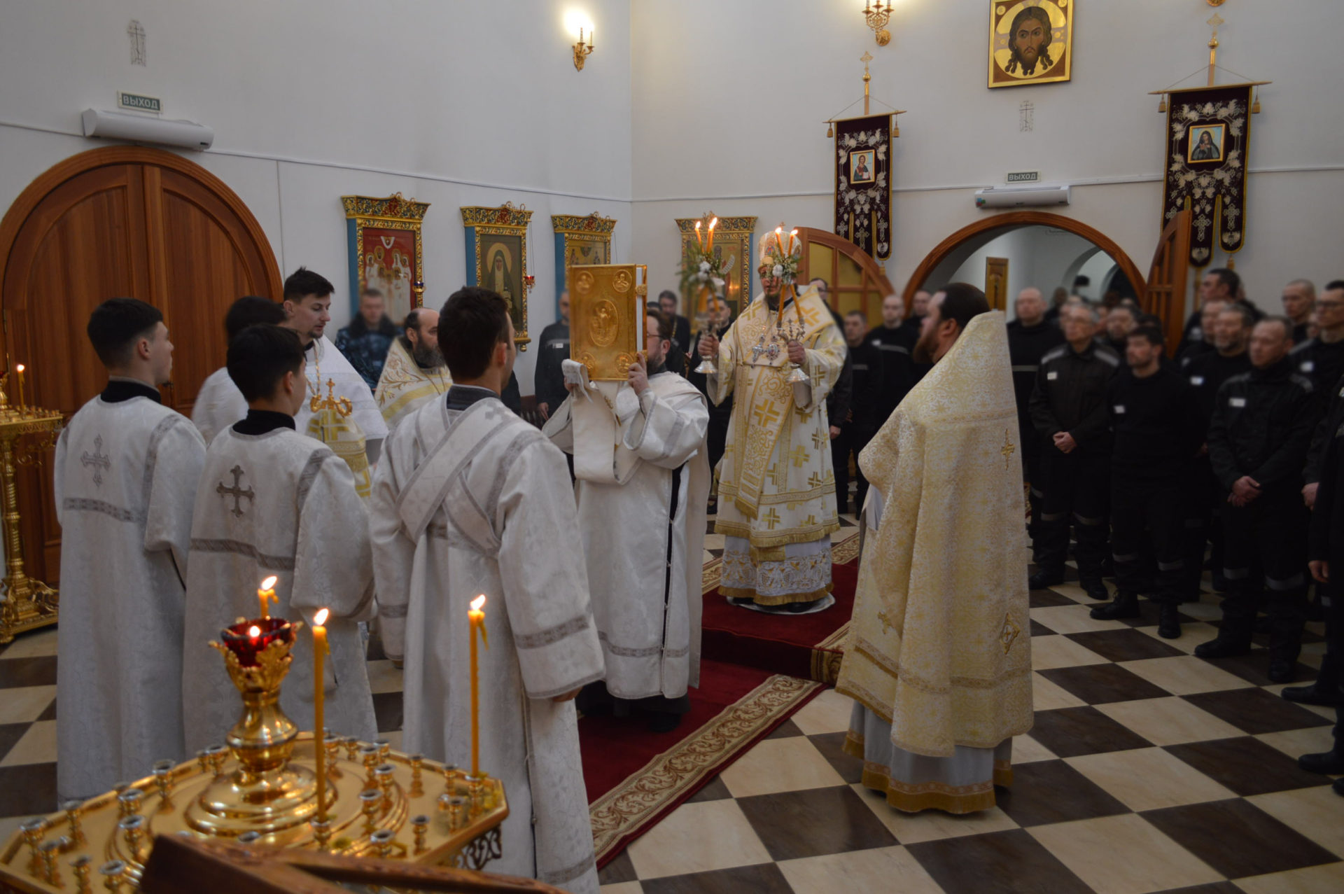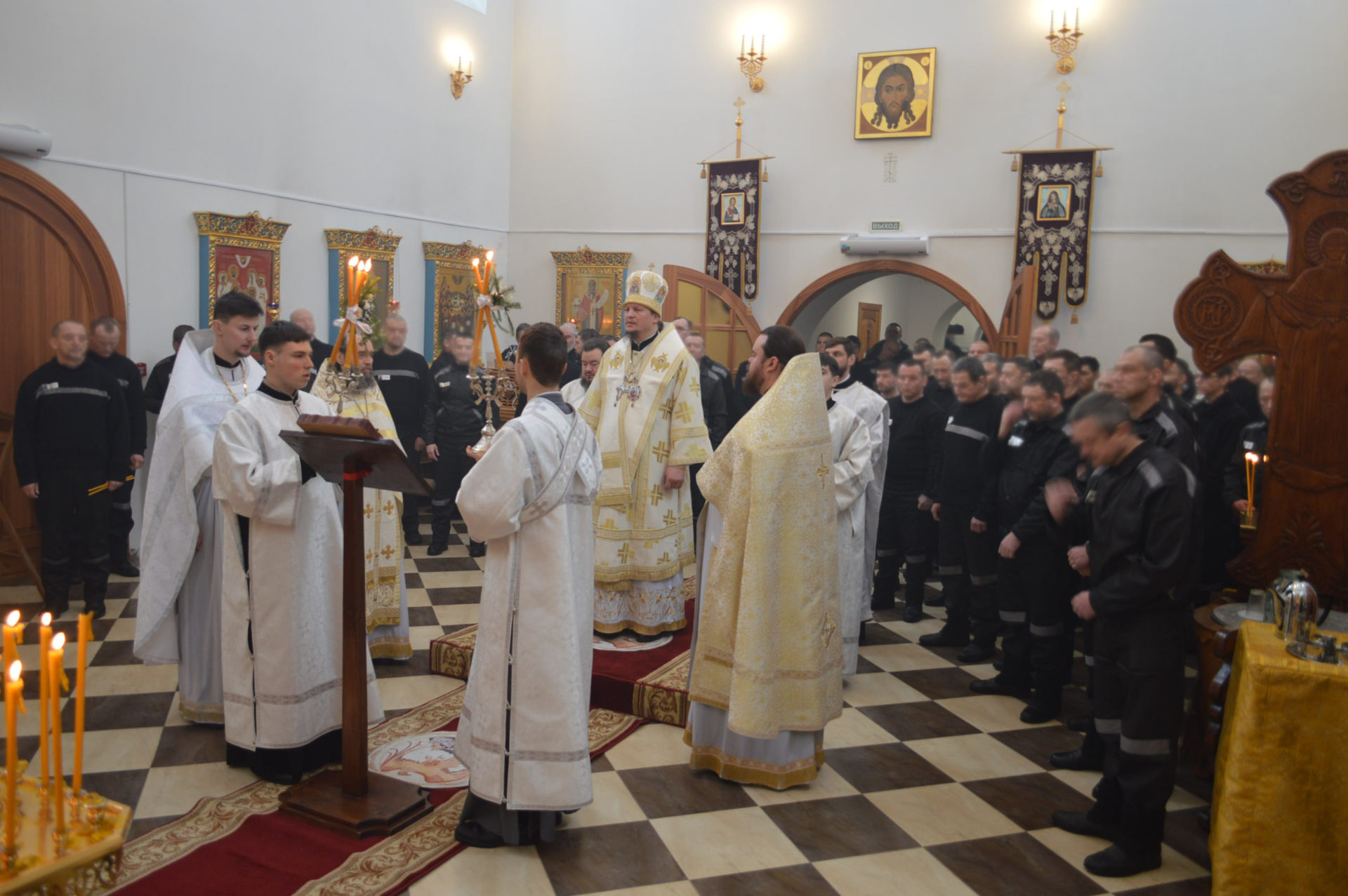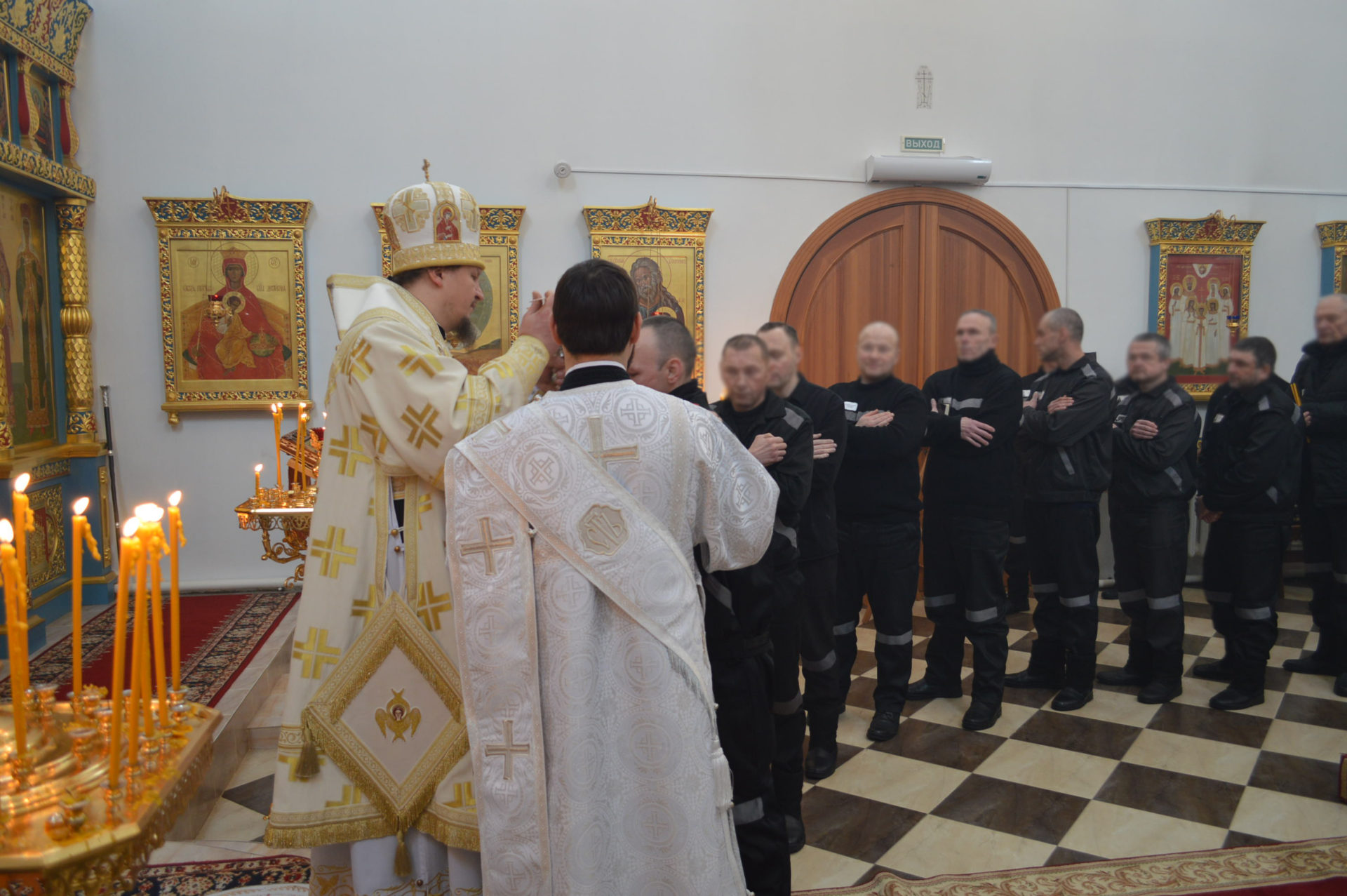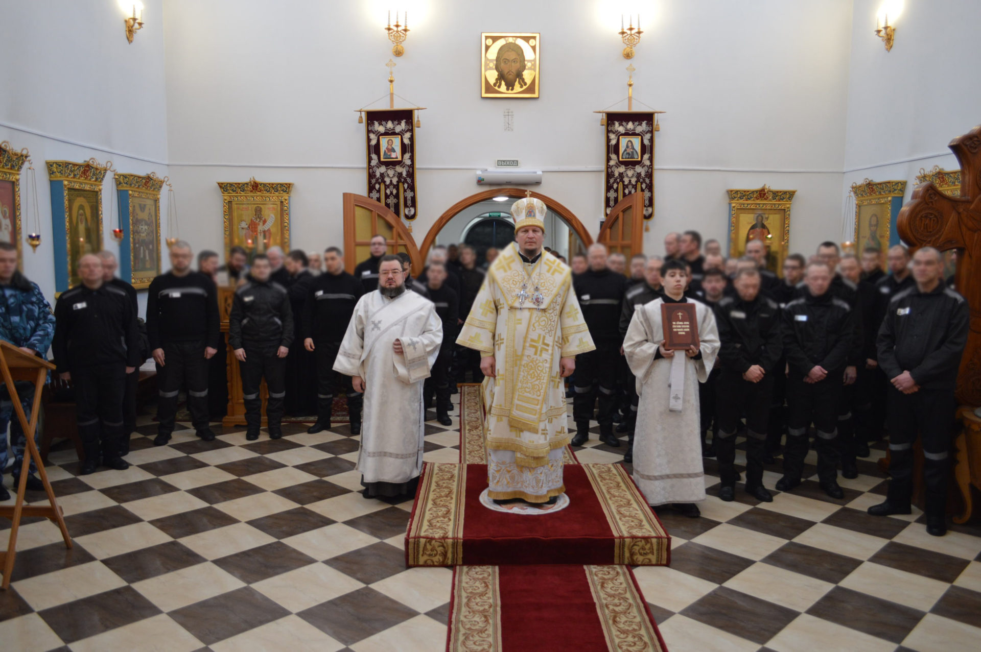 В попразднство Рождества Христова в храме Всех Святых в земле Российской просиявших при исправительной колонии в г. Сухиничи совершена Божественная Литургия архиерейским чином