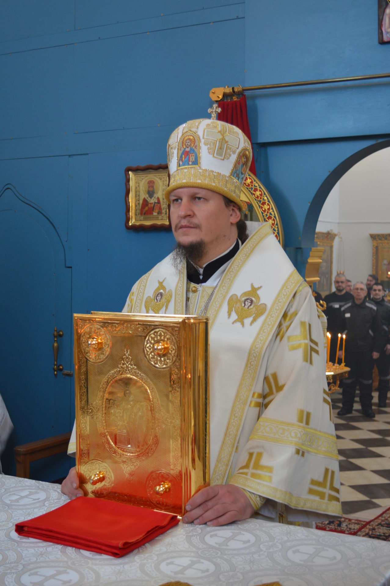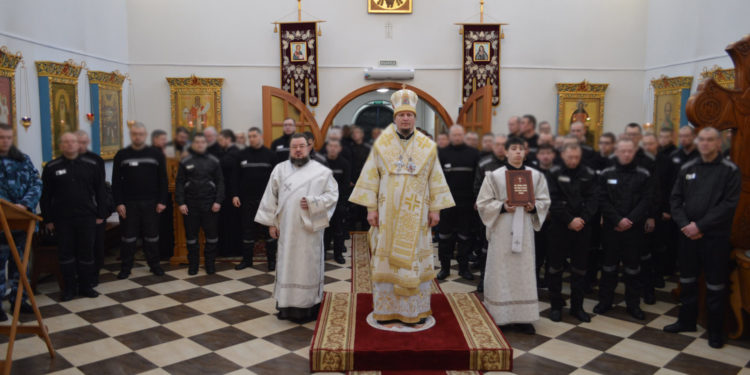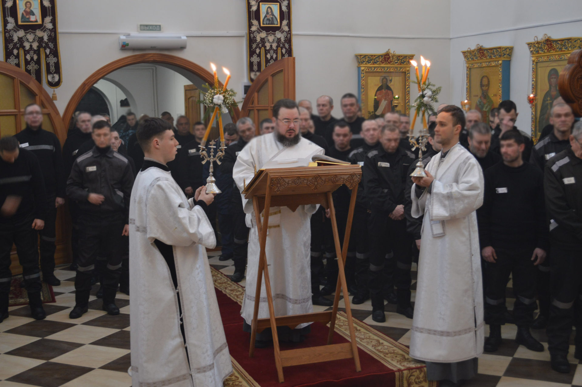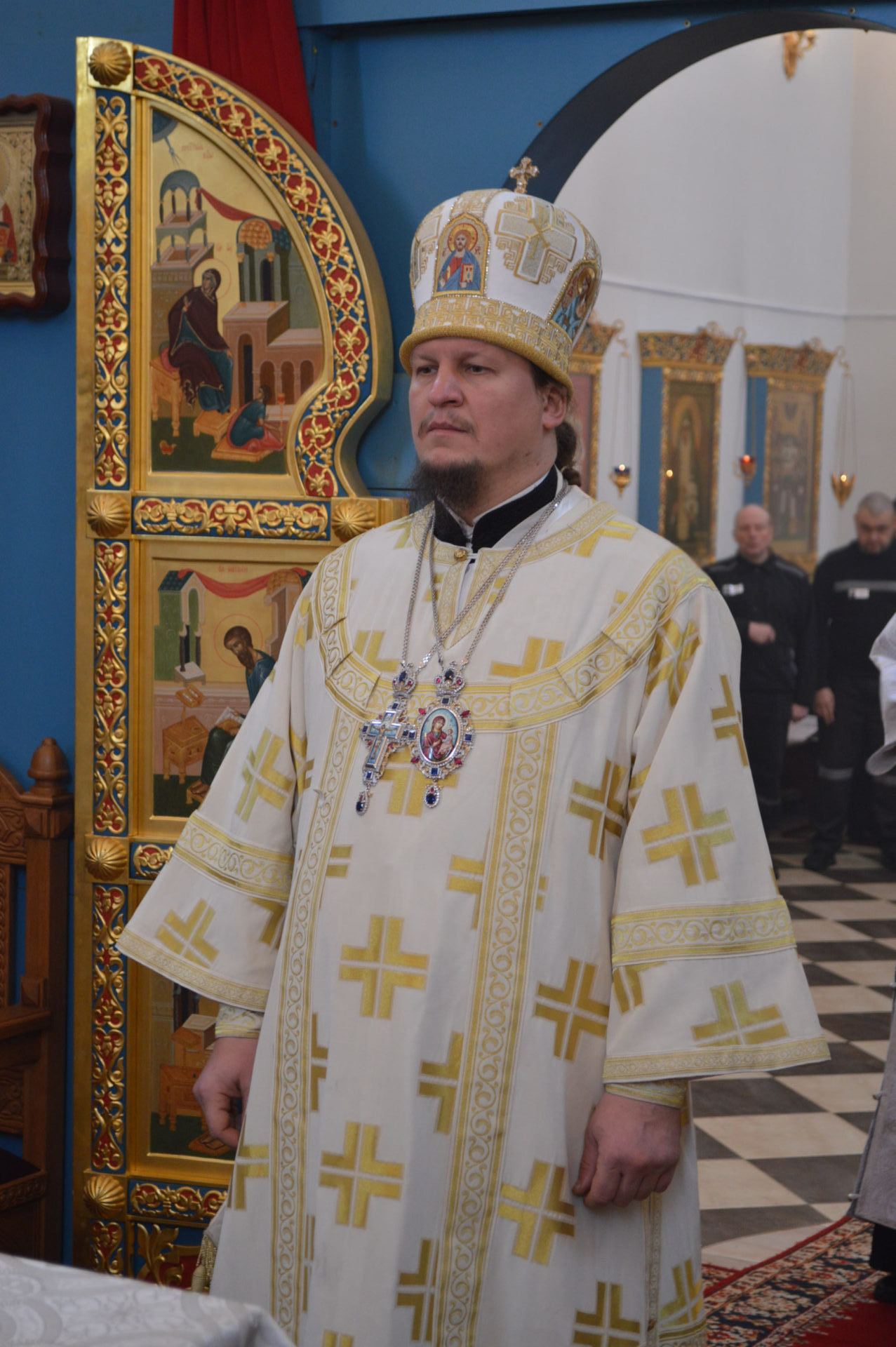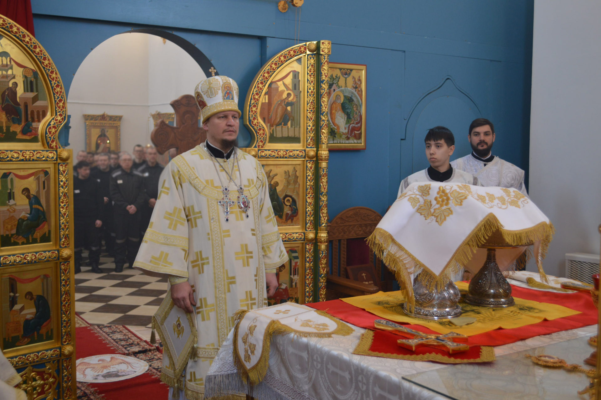 В попразднство Рождества Христова в храме Всех Святых в земле Российской просиявших при исправительной колонии в г. Сухиничи совершена Божественная Литургия архиерейским чином