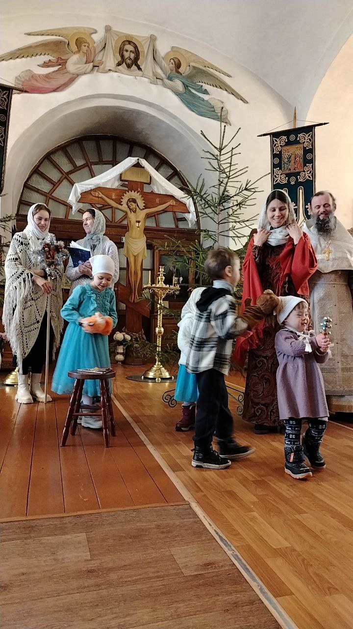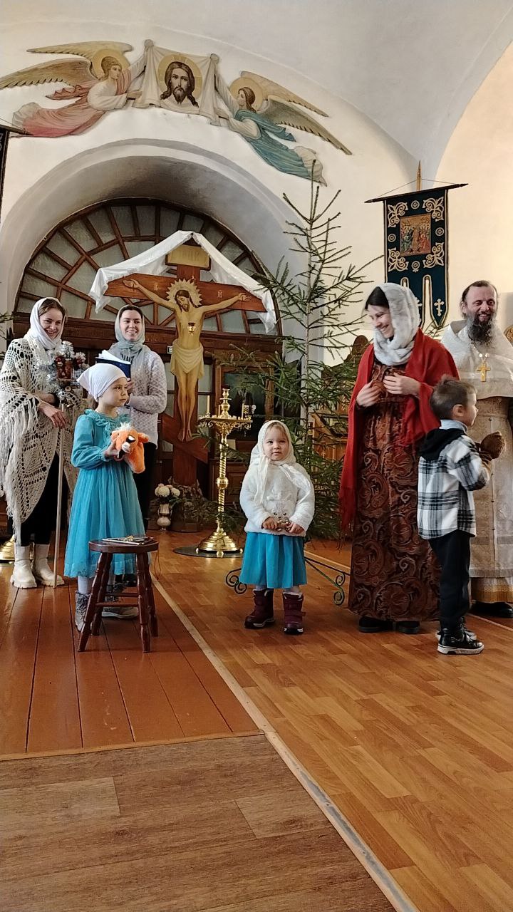 12 января, воскресный день после Рождества Христова, в Свято-Никольском храме города Козельска состоялся праздничный утренник воскресной учебно-воспитательной группы. У малышей был дебют — они пели колядки, водили хоровод вокруг настоящей лесной красавицы — ёлочки, рассказывали стихи. К поздравлению присоединились клиросные певчие, в прошлом — выпускницы нашей воскресной школы, исполнив рождественские колядки. После вручения подарков всех участников ждала общая трапеза и неожиданный сюрприз — с колядками приехали калужские семинаристы. Сложился небольшой общий концерт, малыши спели для колядовщиков свою песню и получили в ответ шоколадки. «Пусть рождественское чудо с нами следует по всюду!» — с таким откликом в сердце расходились все участники, а малыши наяву это чудо увидели в пушистых сугробах около храма, не преминув накувыркаться и напрыгаться…