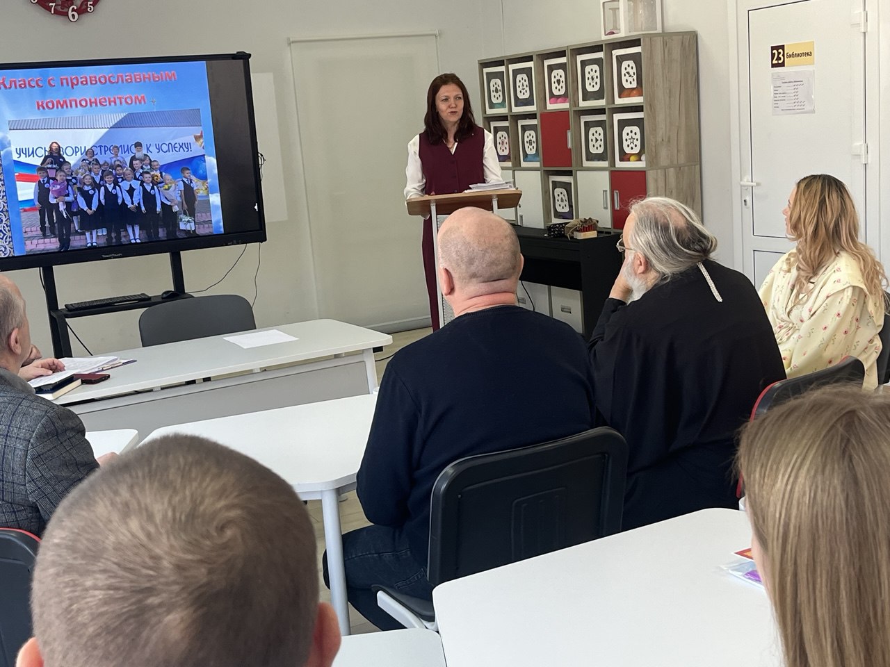 На заседании присутствовали администрация школы: директор Любовь Васильевна Гончарова, заместитель директора Ольга Сергеевна Клестова и члены Управляющего совета. Присутствующие на совете обсуждали вопросы функционирования классов различной направленности, в том числе и классов с православным компонентом (их сейчас в школе два: 1А и 2А классы). Как духовный наставник православных классов   отец Алексий в своём выступлении отметил, как важно, но в то же время и сложно выстраивать и приобретать системный многолетний опыт при открытии и дальнейшей жизнедеятельности классов с православным компонентом. Также было замечено, что благодаря тесному сотрудничеству школы с родителями и Казанским собором многие вопросы постепенно решаются. В последующем видится дальнейшее развитие программ православных классов. Батюшка отметил, что это очень важная совместная деятельность, которая должна помочь формированию религиозного мировоззрения у детей, помочь им в выборе правильного вектора жизни и поведении.