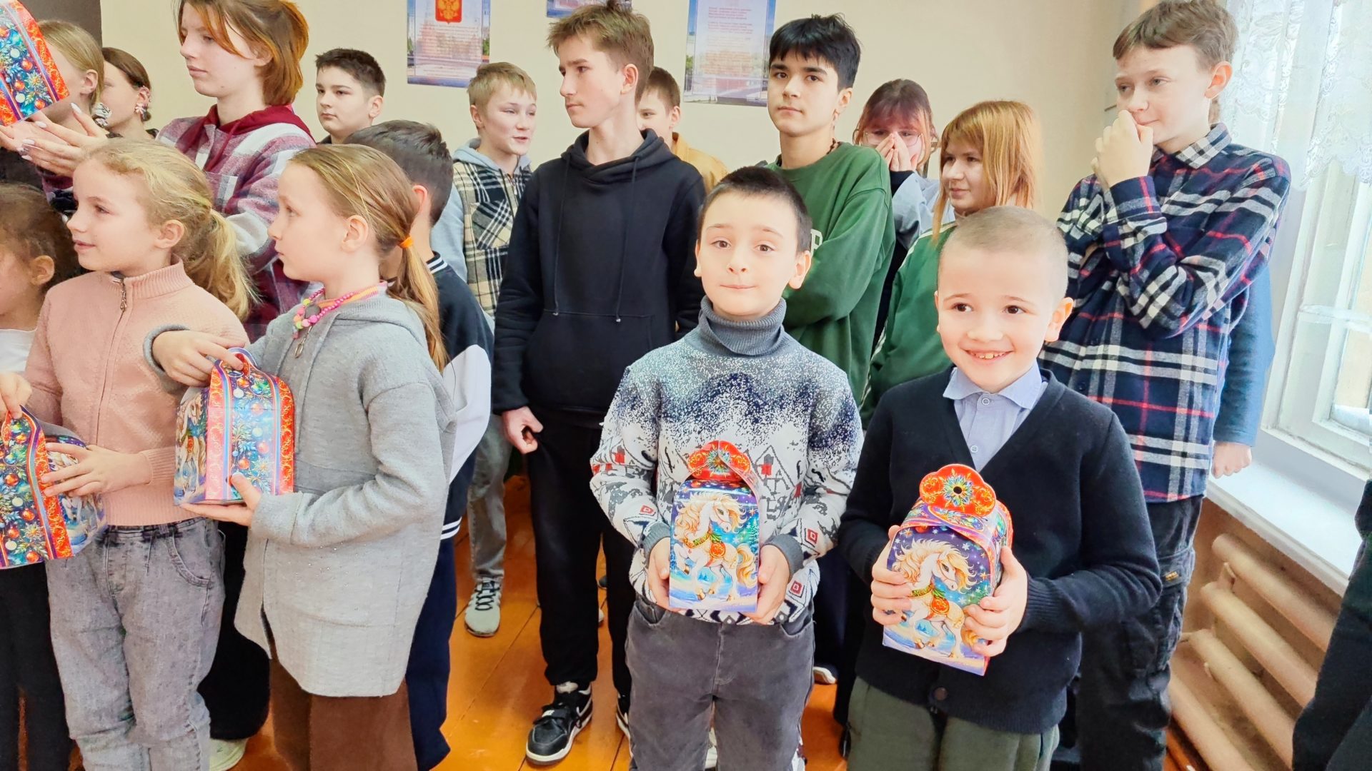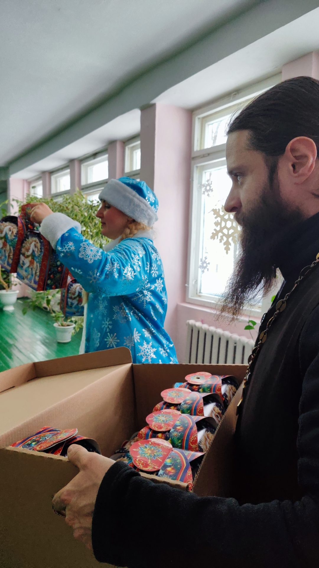 Сначала они посетили школу-интернат. Там к ребятам сначала обратился с поздравительным словом благочинный Людиновского округа настоятель Казанского собора протоиерей Алексий Жиганов. А потом началась веселая игровая программа от приглашенных аниматоров. В конце каждый ребенок получил сладкий подарок.