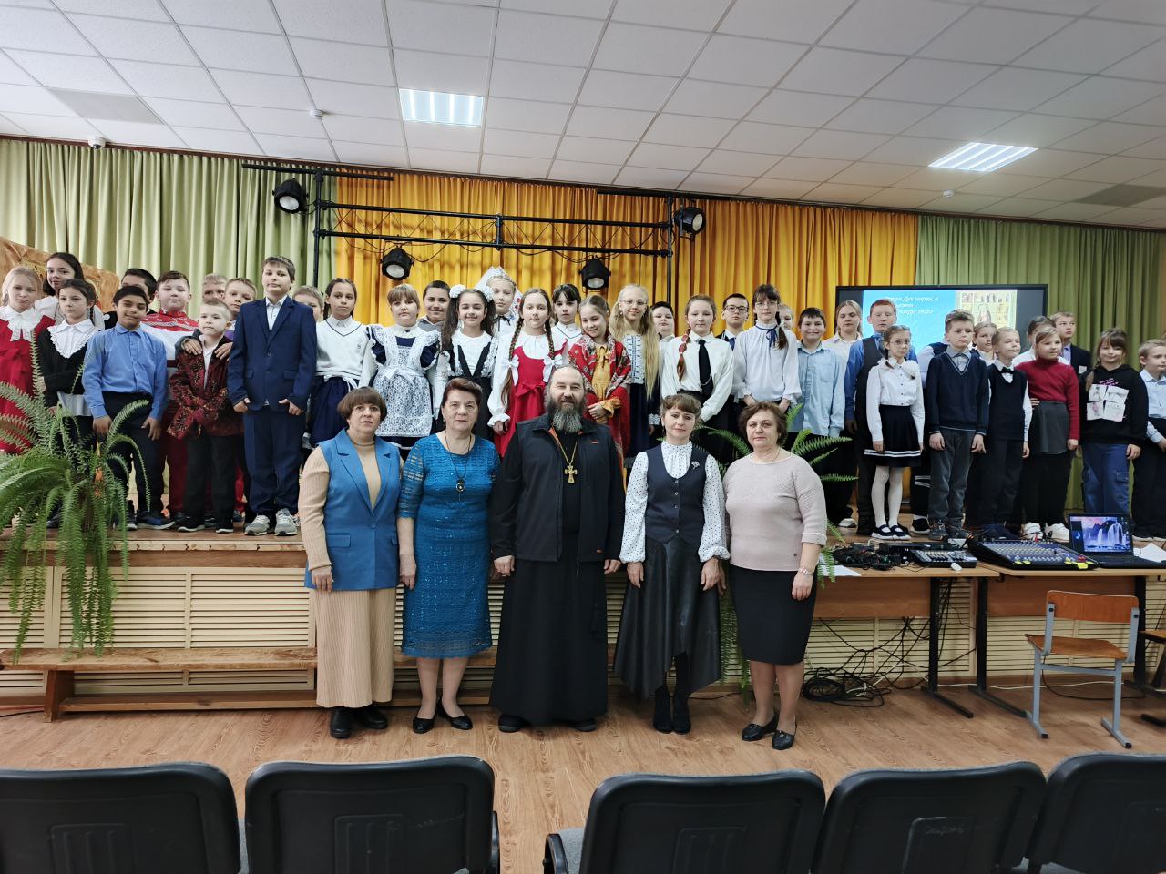 Внеклассное мероприятие, провела Башилова Валентина Ивановна и классные руководители 3-х классов Ольга Николаевна Яшкина и Мирослава Петровна Ермакова. Третьеклассники показали театрализованное представление: «детство преподобного Серафима Саровского».
