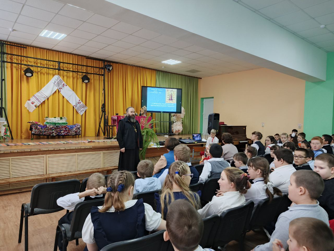 В Ульяновской школе, в уроках и внеурочных мероприятиях, приняли участие клирики Ульяновского благочиния священники и диакон.