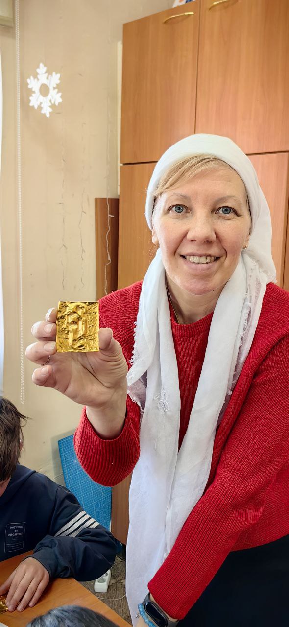 Ребята Заречной школы посетили занятие в Воскресной Школе «Преображение» при храме Воскресения Христова села Ульяново, которое провела матушка Анна Гайсина. История церковно-славянского языка: строки на церковно-славянского языка и заглавная буква «З» к постеру «Заповеди Божии» в технике «Быстрая чеканка».