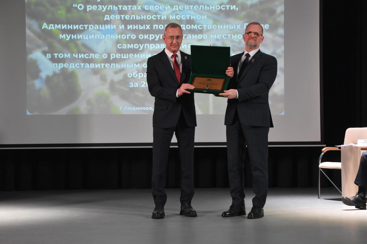 Людиново — город трудовой и воинской доблести, в этом году отмечает 400-летний юбилей. Округу, первому в регионе, по праву присвоено звание «Территория партизанской славы». Депутаты Законодательного Собрания приняли соответствующий закон в июне 2025 года. На заседании Губернатор области Владислав Шапша вручил регалии этого почетного звания главе муниципалитета Геннадию Ананьеву.