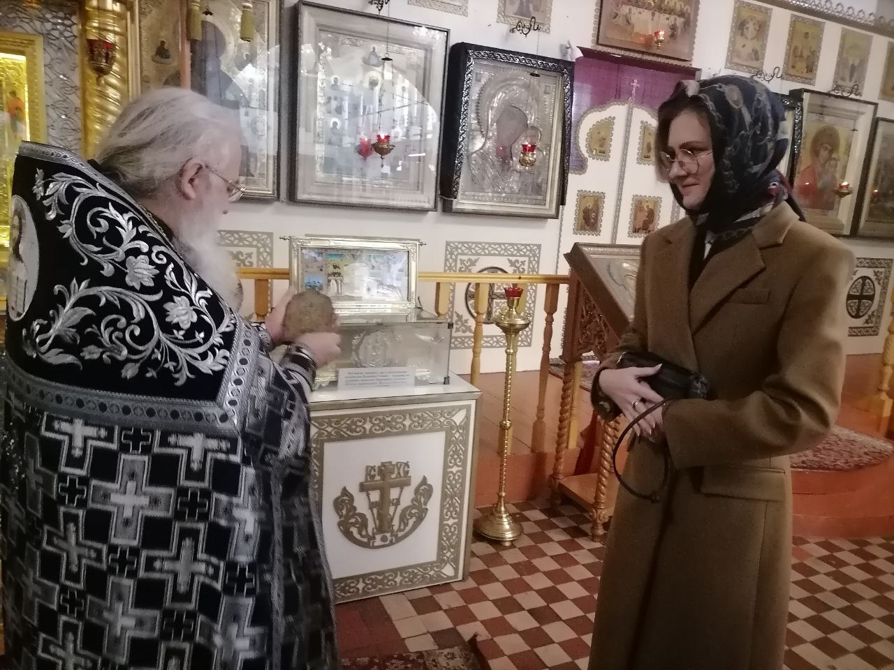 Отец Алексий был очень обрадован, что за множеством дел Мария Валерьевна не забыла своё обещание и привезла для храма замечательный подарок. Батюшка сердечно поблагодарил Марию Валерьевну за визит. На молитвенную память настоятель подарил гостье икону Божией Матери «Избавление от бед страждущих», именуемую «Людиновская», книги «Храмы земли Людиновской» и «Синодик Люиновский край», пожелав дальнейших успехов в трудах и Божьего благословения.