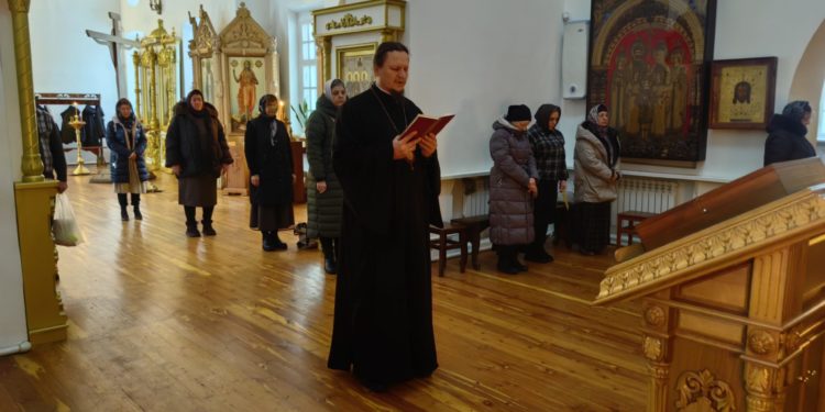 26 февраля в четверг Первой седмицы Великого поста епископ Макарий молился за утренним богослужением в женском монастыре в честь Святых Жен-Мироносиц с. Клыково.