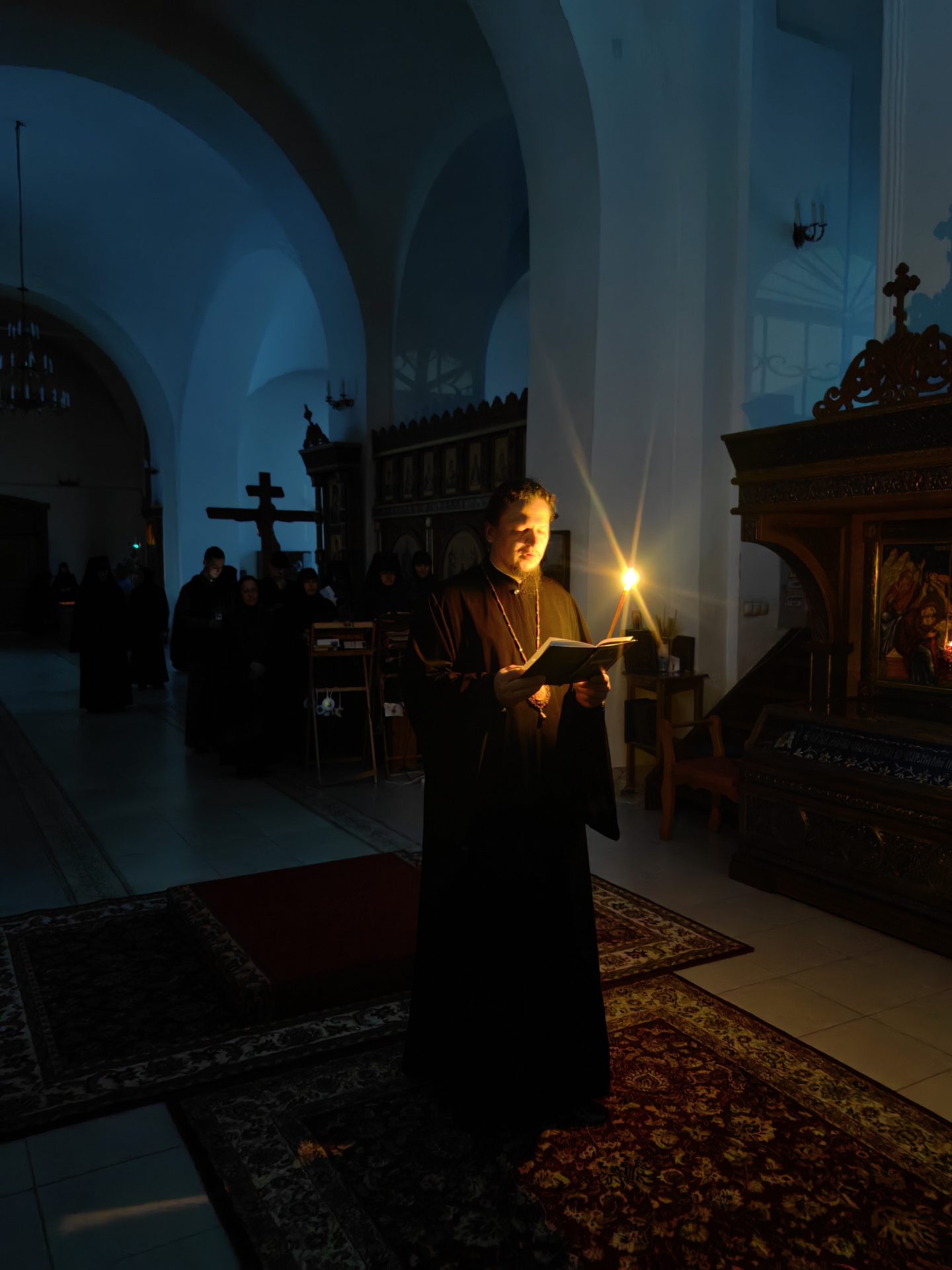 За богослужением архипастырь читал канон утрени, шестопсалмие, часы и последование вечерни. Вместе с архипастырем уставные чтения совершали иподиаконы — студенты Калужской духовной семинарии, проходящие положенную богослужебную практику: студент магистратуры Димитрий Сандросян, студенты бакалавриата — Димитрий Дроздов, Николай Мудрый, Альберт Григорьев и ученик Козельской православной гимназии Дионисий Тарпан.