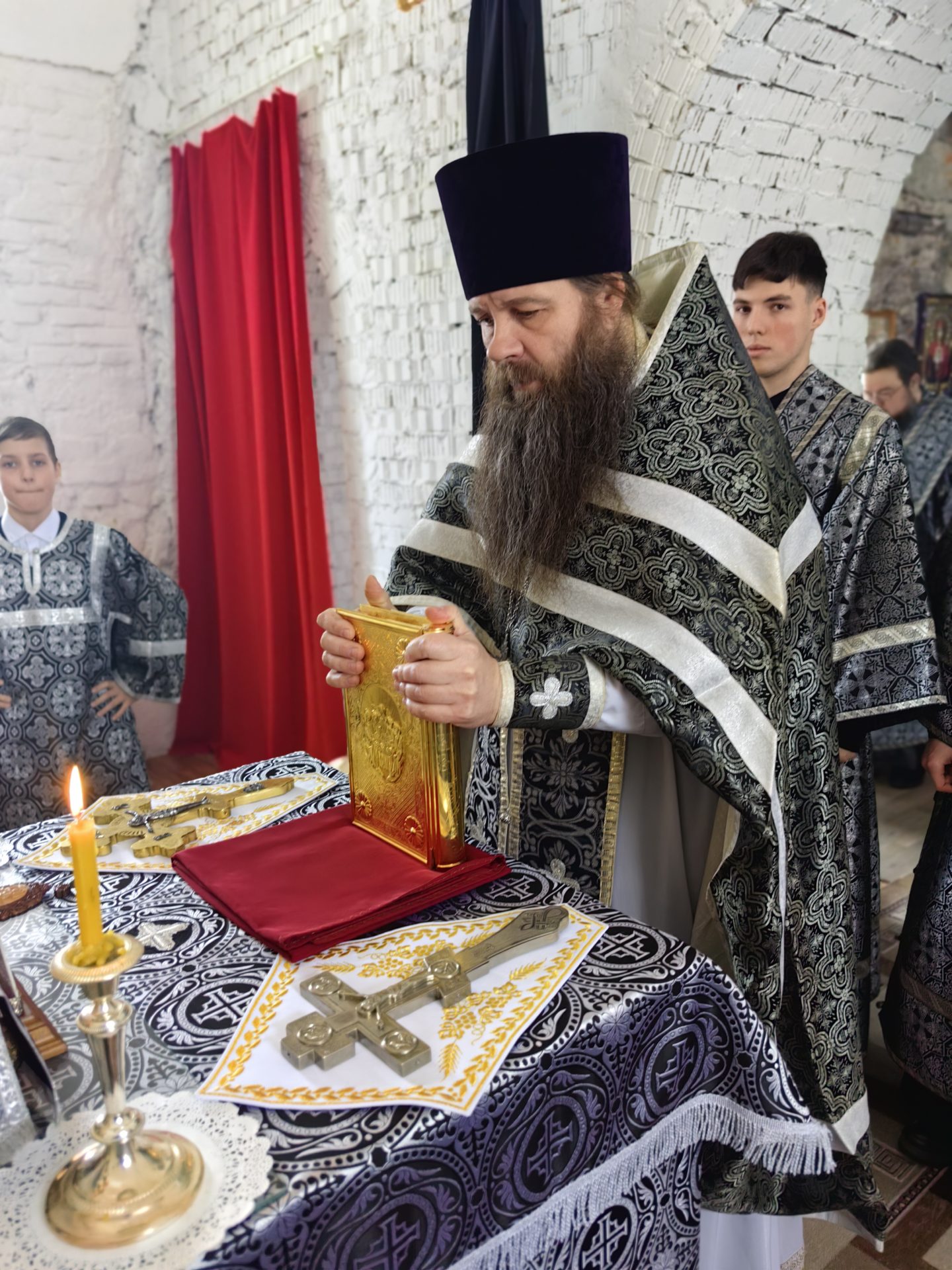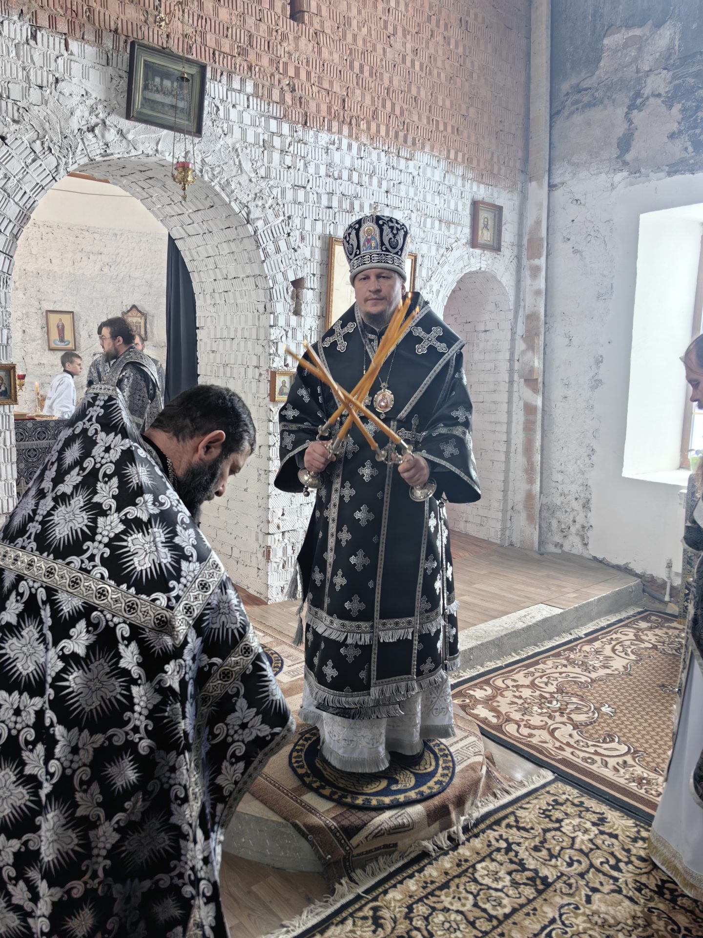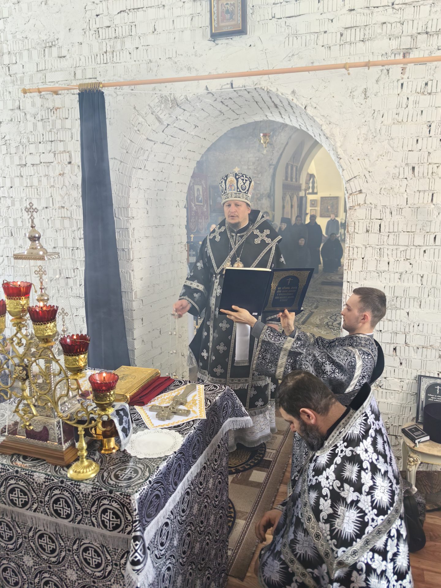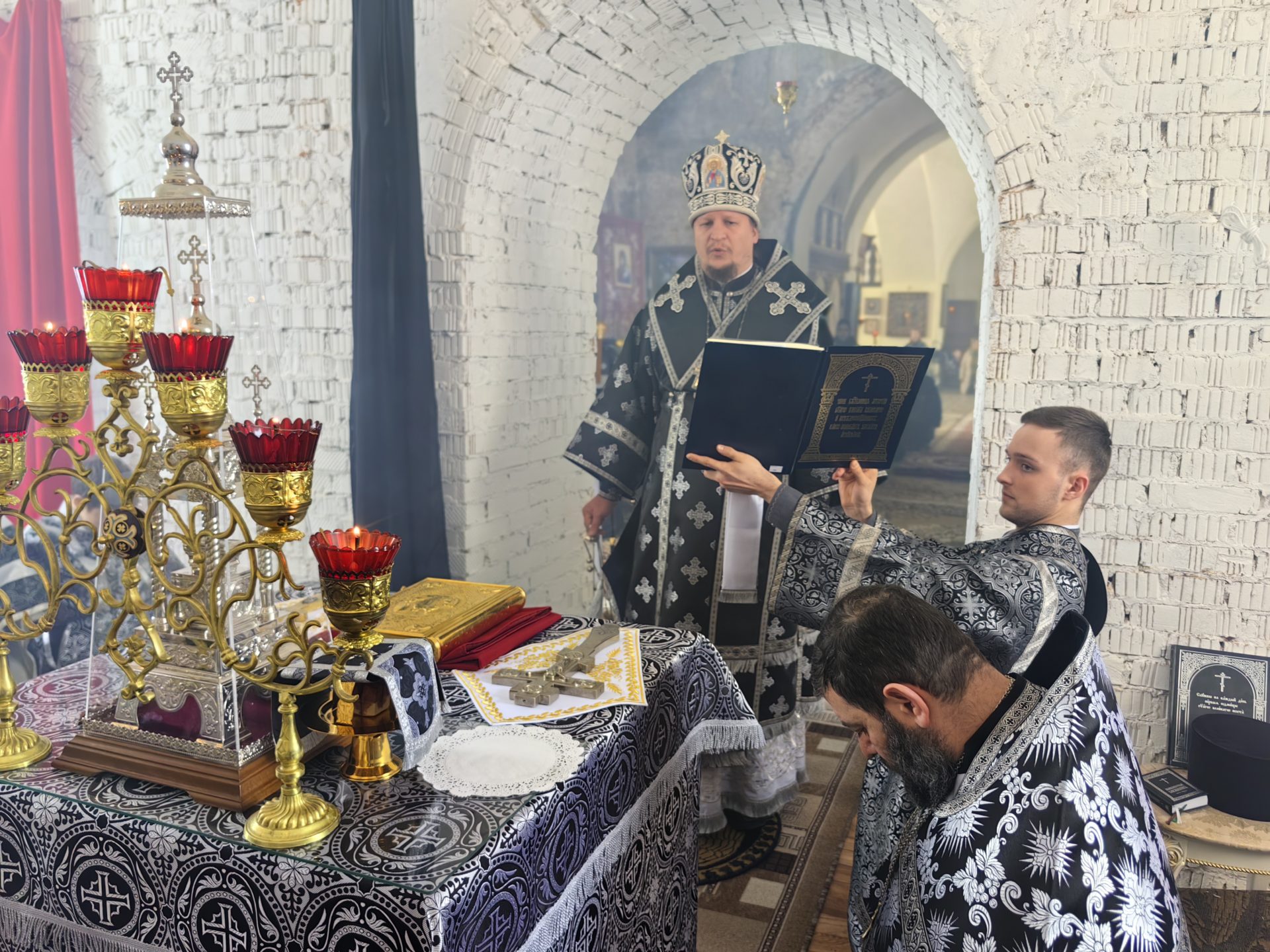 Литургию Преждеосвященных даров архипастырю сослужили: священник Евгений Чуркин, священник Сергий Акопян, священник Андрей Пожилов и диакон Николай Кречетов.