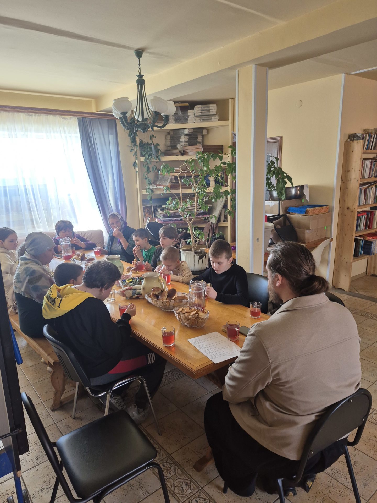 иерей Константин (Илющенко) рассказал детям о самой важной книге для христиан — Библии. Ребята узнали, как в древности книги переписывали вручную, какой это был долгий и трудный труд, и почему к книге всегда относились с большим уважением. Батюшка напомнил и о том, как важно читать духовные книги, ведь через них человек учится вере, добру и мудрости.
