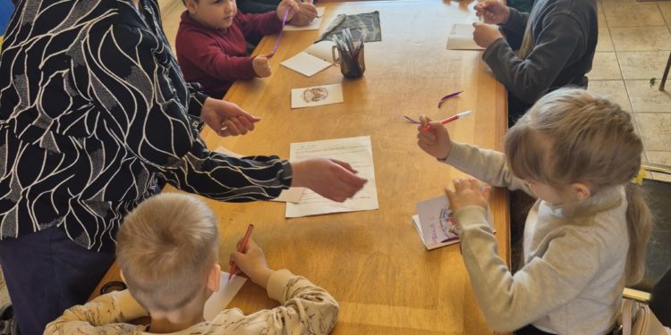 На рукоделии дети мастерили личные книжки-дневники — «Книгу добрых дел». Ребята будут записывать туда добрые поступки, совершённые за неделю, а по воскресеньям делиться ими друг с другом. К Пасхе должна получиться настоящая библиотека добра.