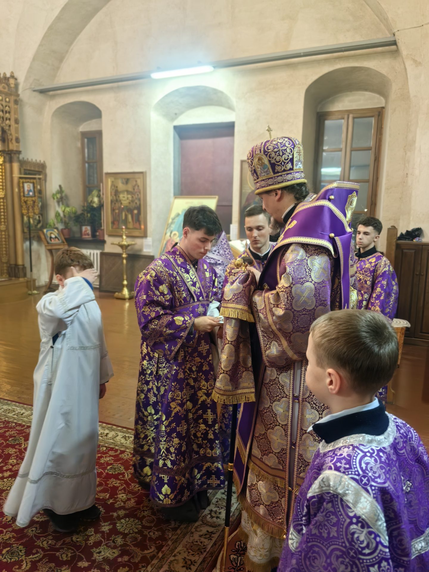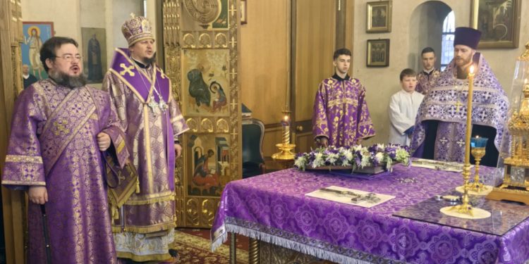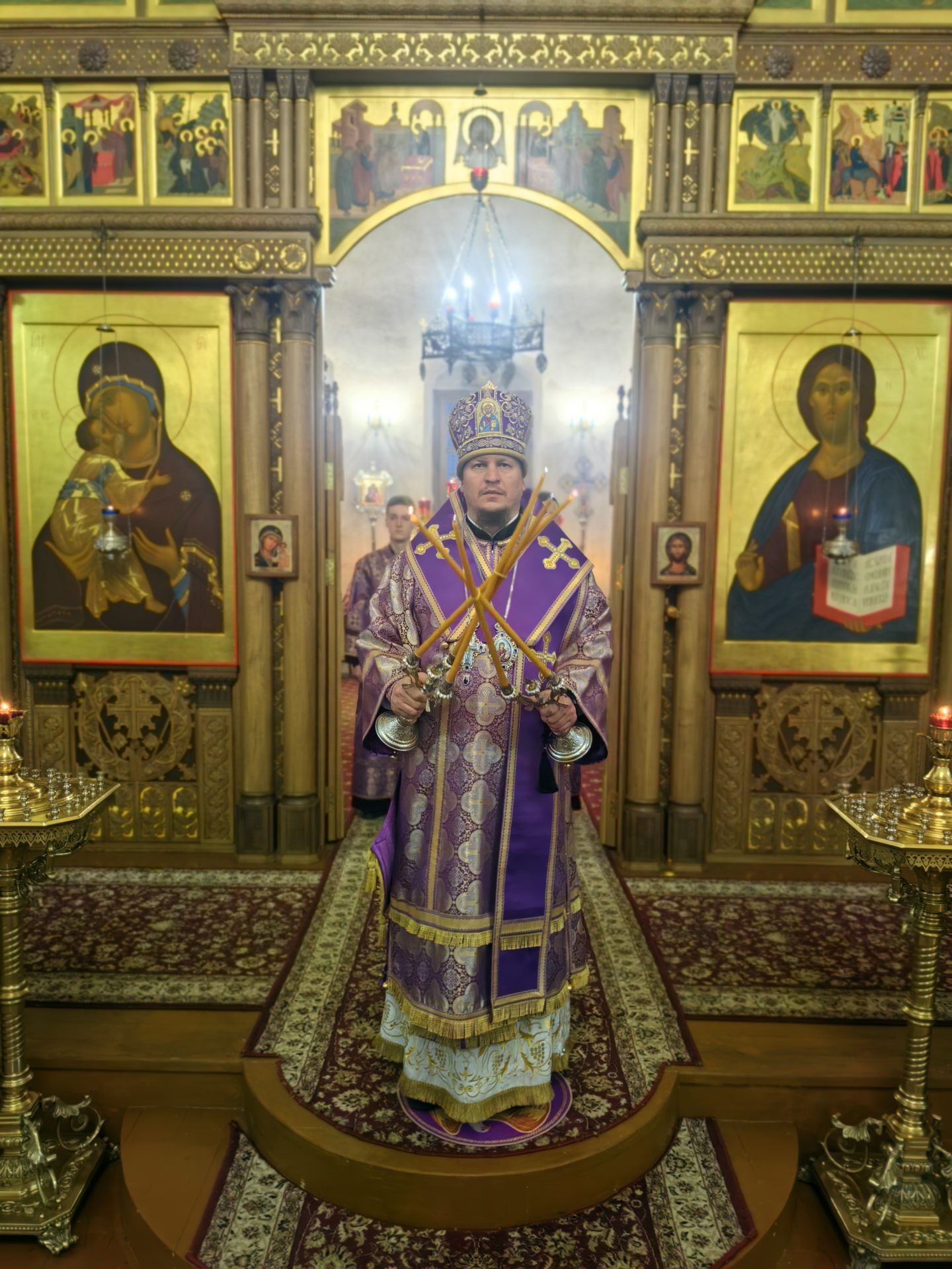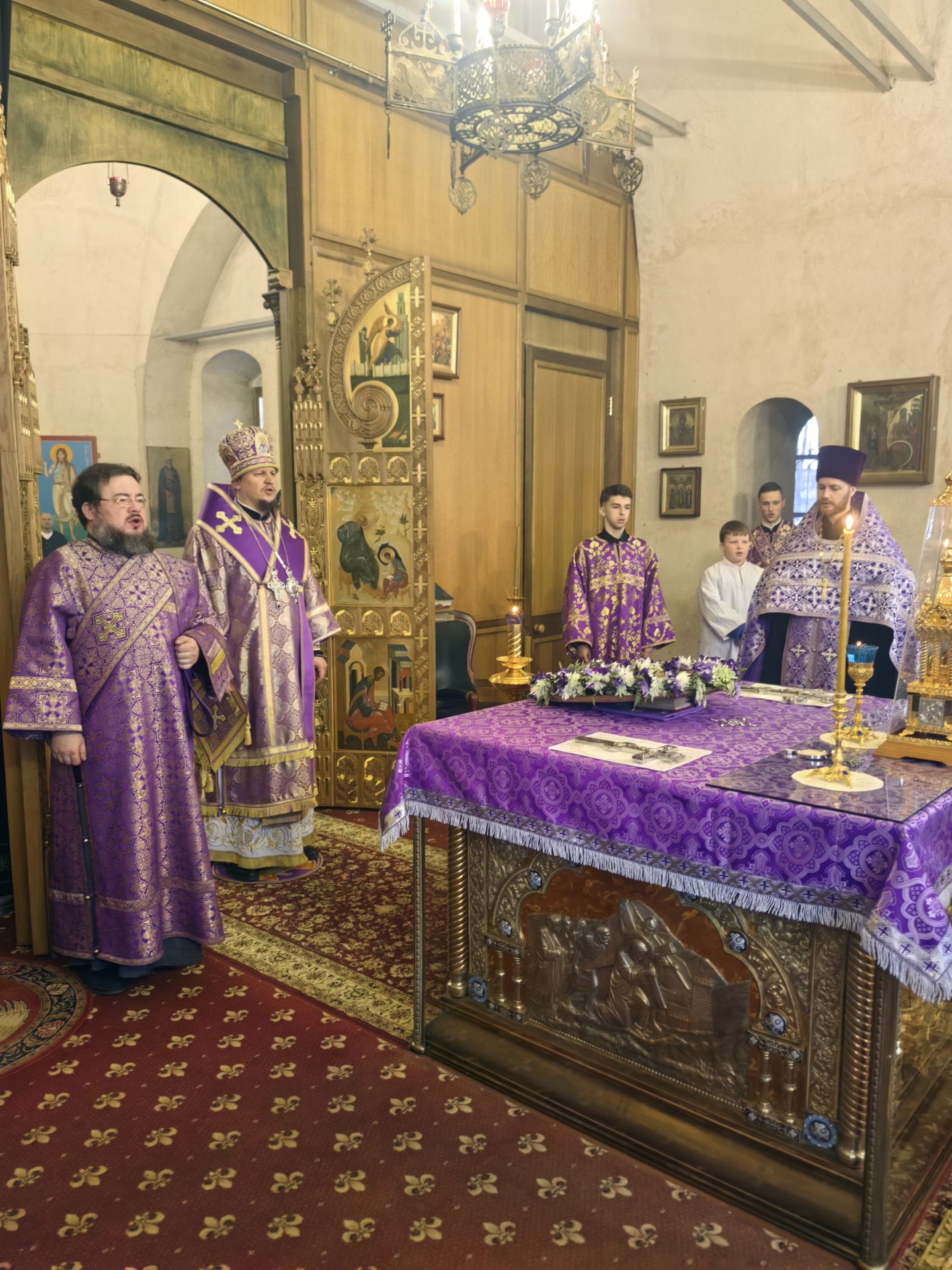 По окончании богослужения владыка обратился со словом проповеди: «Крест — хранитель всей вселенной, крест — красота Церкви, крест — ангелов слава и демонов язва!» Такими словами сегодня Святая Церковь прославляет Честной и Животворящий Крест Господень. В середине Великого поста установлено Церковью совершать поклонение Кресту, чтобы указать нам путь, направление нашей духовной жизни. Потому что никакие аскетические подвиги, посты, поклоны и прочие духовные упражнения не имеют смысла если мы не готовы взять свой крест и следовать за Христом. Может прозвучать вопрос: «А в чем мой крест?» Ответ очень прост: в твоей семье, в твоей работе или служении, в тех обстоятельствах жизни, которые Господь посылает нам. Мы призваны каждый на своем месте нести свой крест подражая Спасителю. Не унывать, не изнемогать, падать и вновь подниматься. И именно в крестоношении заключается путь ко спасению во Христе. Желаю всем вам терпения и радости в несении своего креста вслед за Христом!»