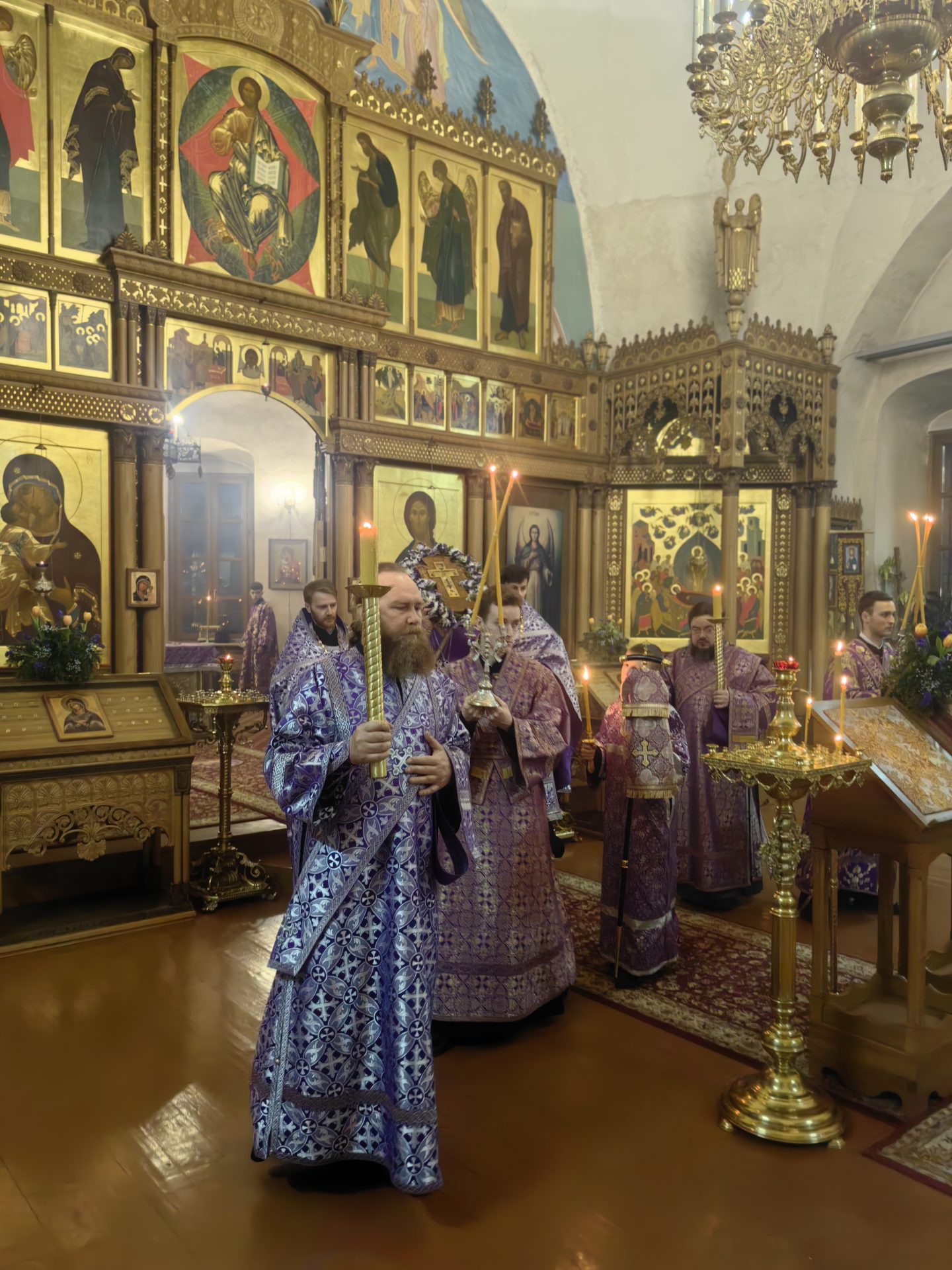 Накануне Недели Крестопоклоннной епископ Макарий совершил Всенощное Бдение с чином поклонения Кресту в Успенском кафедральном соборе Козельска