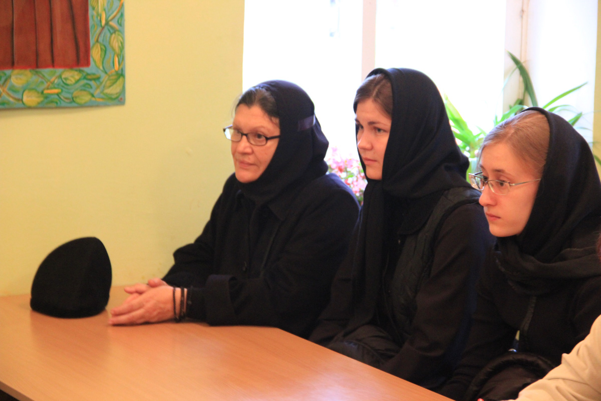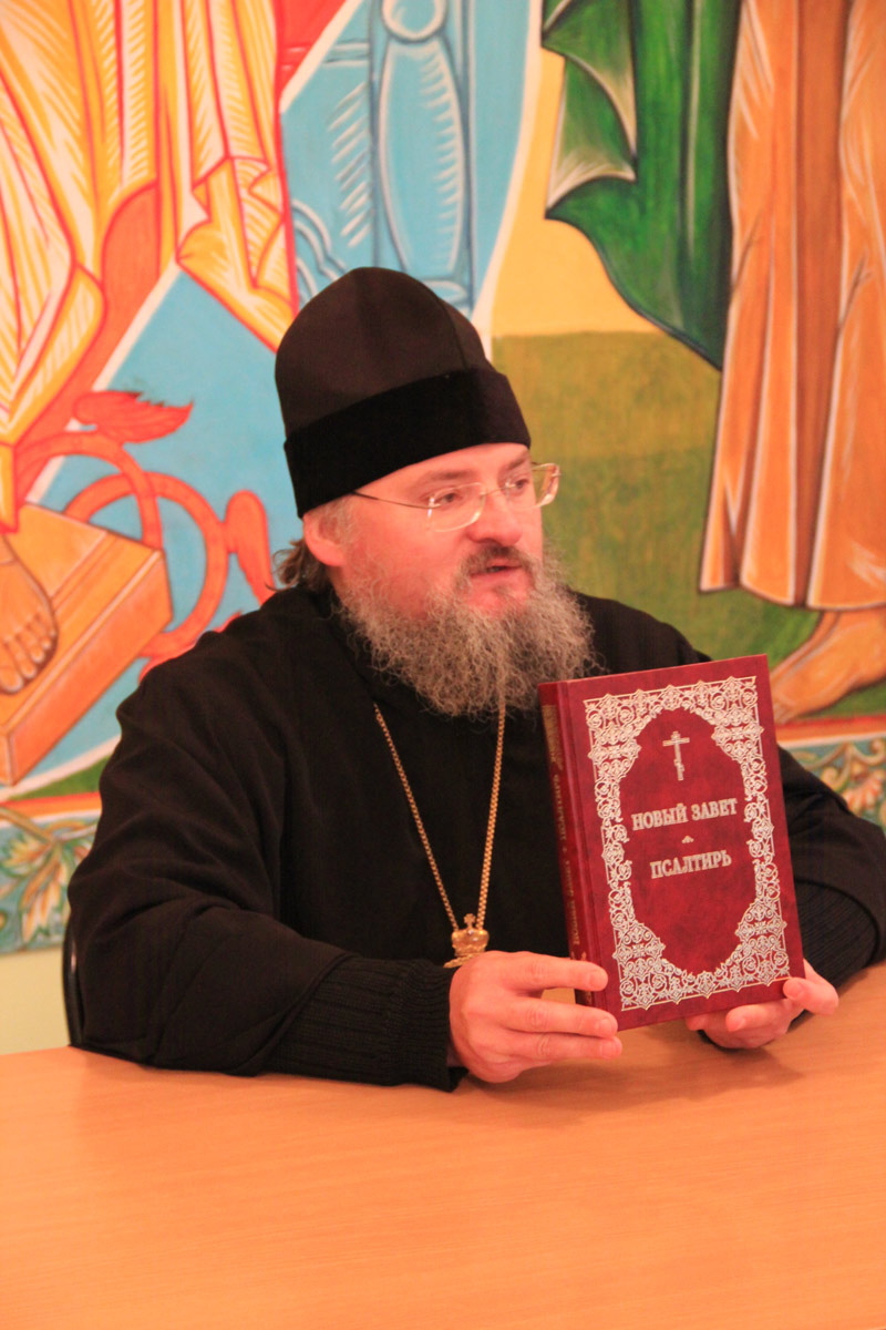 Владыка рассказал о целях и задачах богословской школы, ответил на вопросы собравшихся и преподнес в дар каждому книгу Священного Писания Нового Завета.