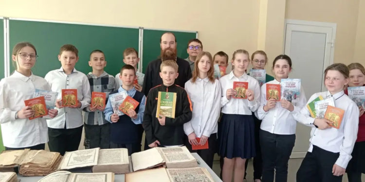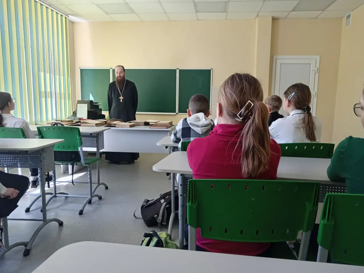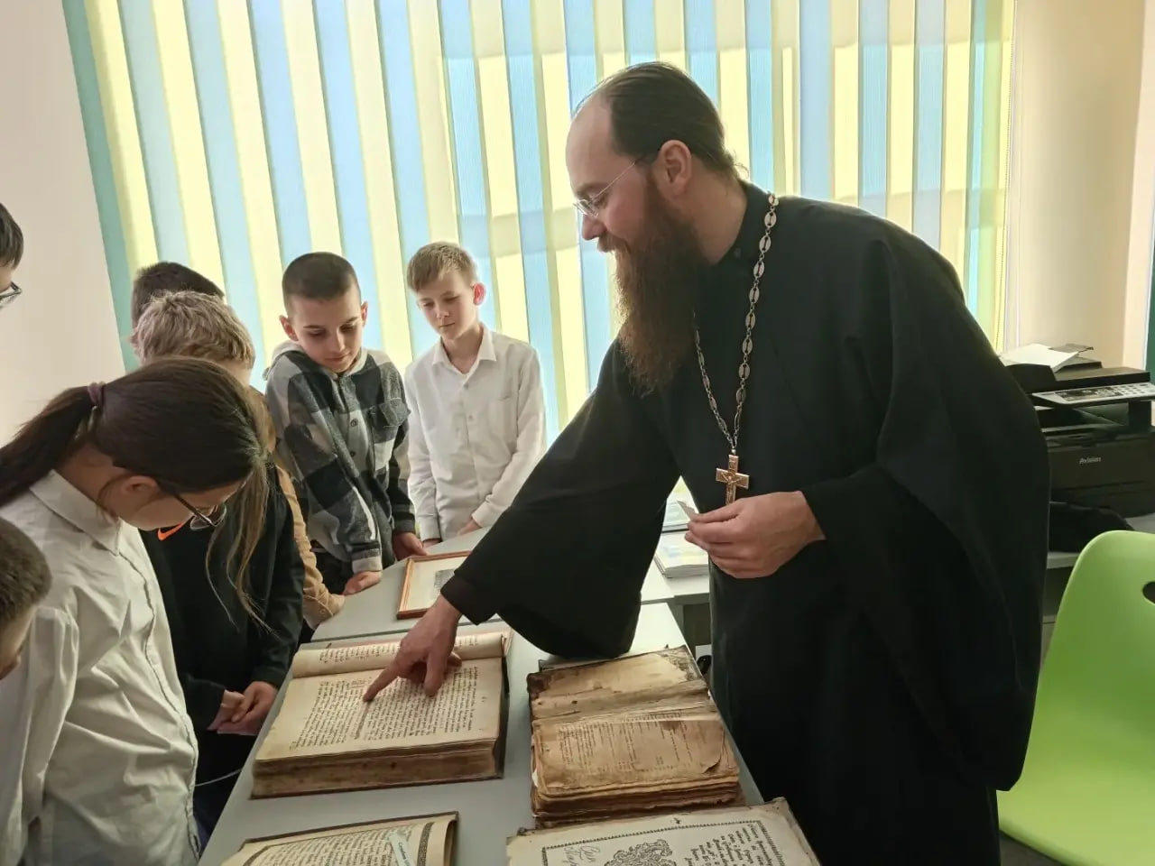 По приглашению директора и педагогов школы, для учащихся 4,5,6 классов занятие провел иерей Тихон Худяков, настоятель храма в честь Преображения Господня села Нижние Прыски. Ребятам было рассказано о книгопечатании в истории нашей родины и особенном значении Православной книги. Также учащимся была представлена экспозиция старинных богослужебных книг местного храма. В том числе издания конца 18 – начала 20 века.