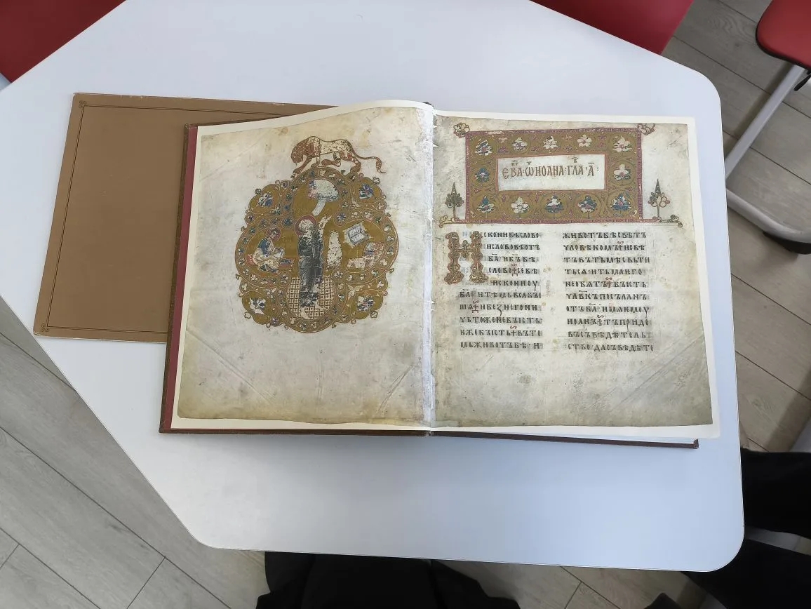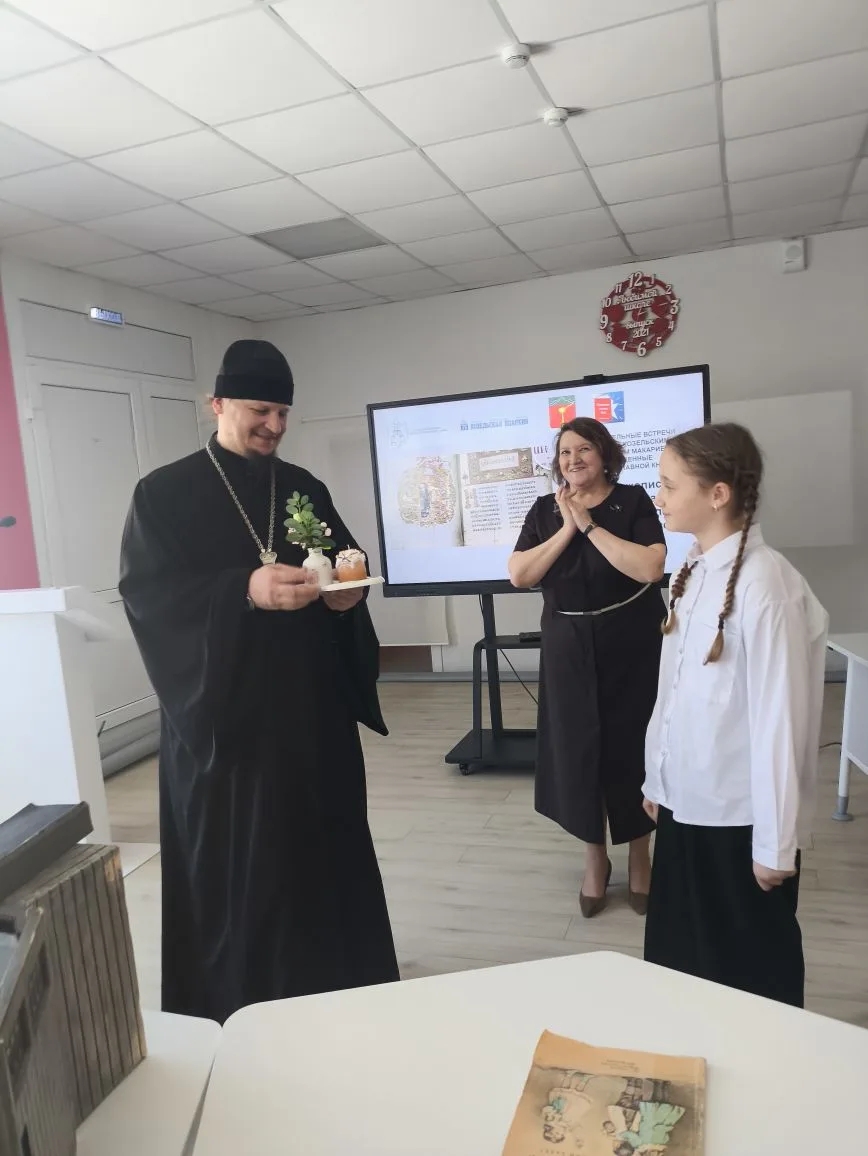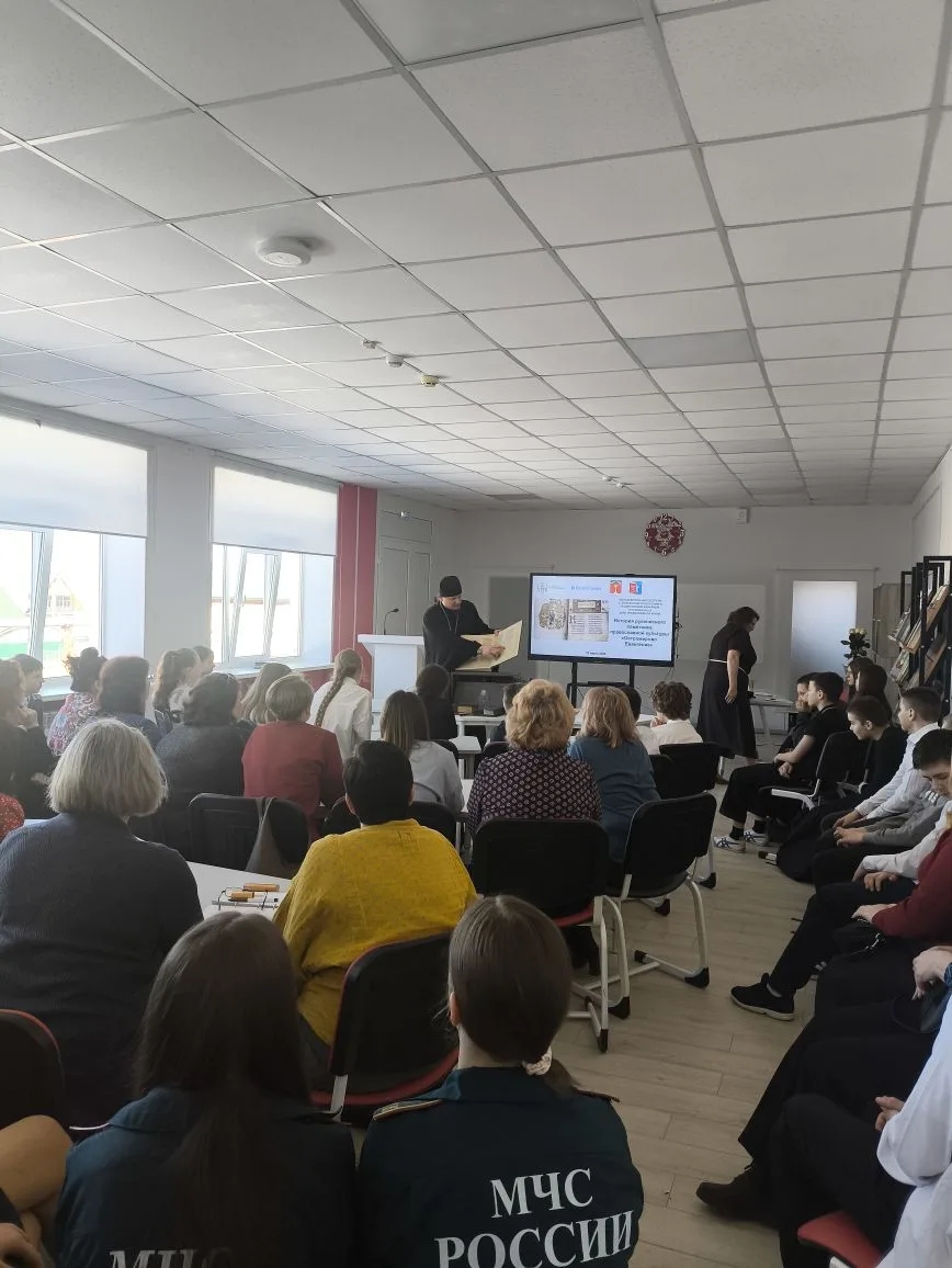 На вторую встречу с Владыкой Макарием собрались ученики 6-7 классов Средней школы №2, учителя ОПК, педагоги дошкольных учреждений и школьные педагоги- библиотекари, советники директора по воспитанию и взаимодействию с общественными детскими объединениями. Здесь для слушателей прошло знакомство с историей рукописного памятника православной культуры «Остромирово Евангелие», рукопись которого хранится с 1806 года в Российской национальной библиотеке. Владыка в своём рассказе отметил, что Остромирово Евангелие является основой средневековой книжности, древнейшей пергаментной рукописной книгой Руси, написанной в середине XI века. В этой драгоценной рукописи мы обладаем величайшим сокровищем: как в смысле древности, так и в смысле внешней красоты памятника: это замечательный образец письменного искусства наших предков. В завершении второй встречи Владыка сказал очень важное для слушателей: «Культура Руси начинается с Остромирово Евангелия».