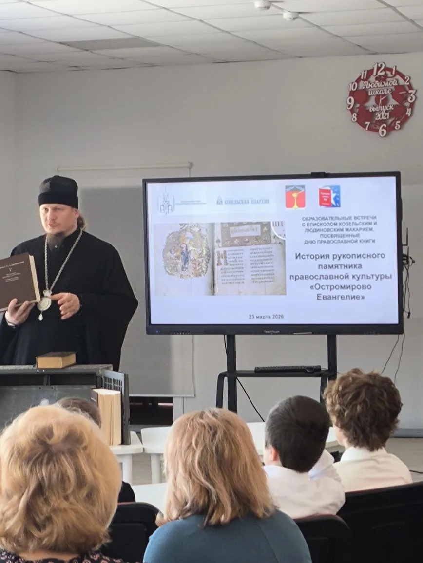 23 марта 2026 года в МКОУ «Средняя школа №2» города Людиново прошли образовательные встречи в рамках Недели Православной книги. Для встречи с аудиторией слушателей был приглашён Епископ Козельский и Людиновский Макарий. Инициатором встречи выступила администрация школы: директор Любовь Гончарова и заместитель директора Ольга Клестова.