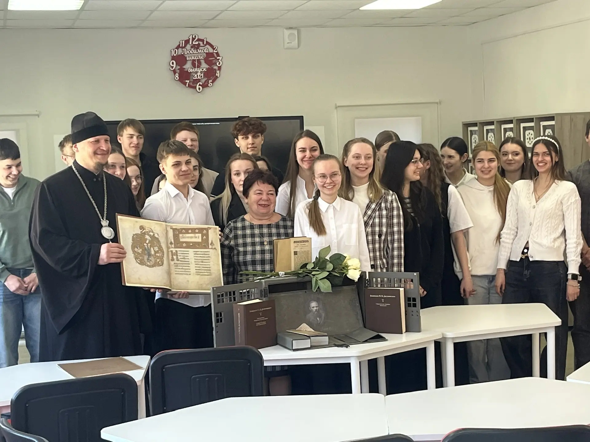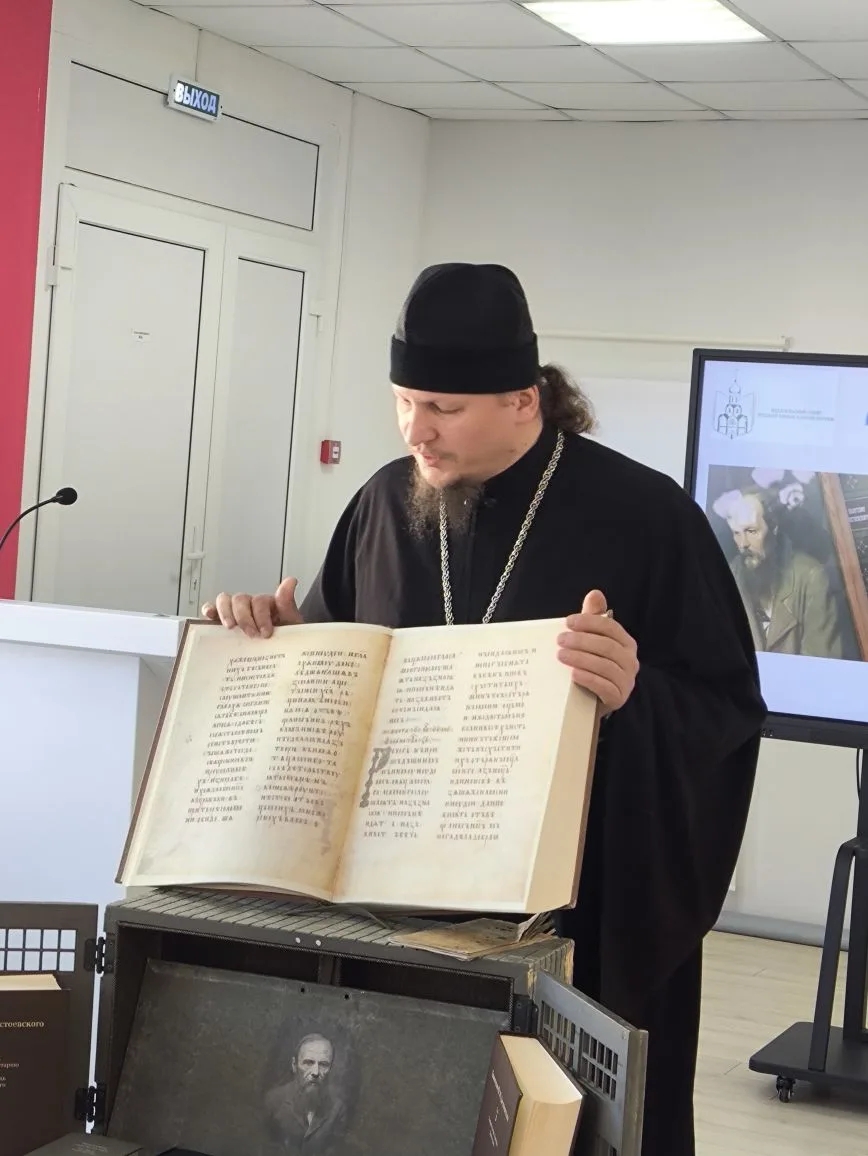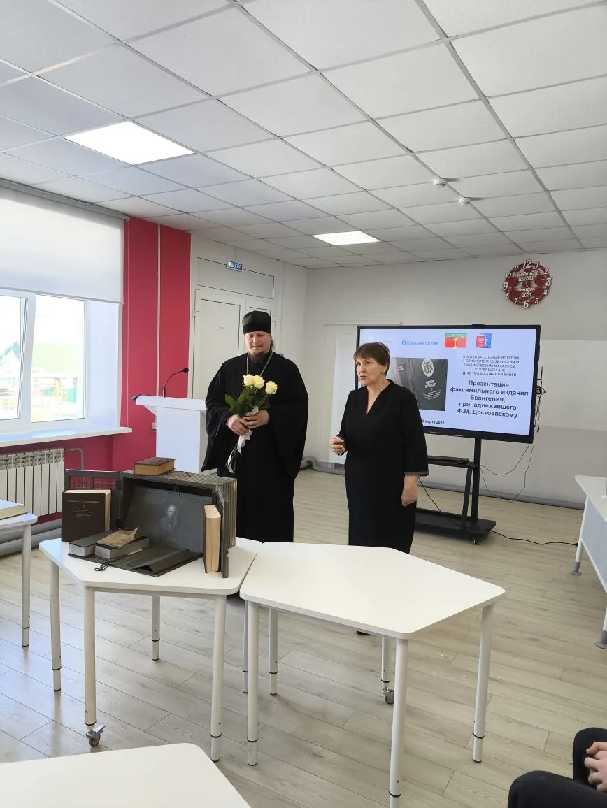 На первую встречу с Владыкой Макарием были приглашены ученики 10 классов Средней школы №2, учителя русского языка школ Людиновского района, руководитель и сотрудники Централизованной библиотечной системы Людиновского муниципального округа Калужской области. Перед знакомством с факсимильным изданием Евангелия, принадлежавшего Ф.И. Достоевскому, Владыка Макарий затронул творчество писателей 19 века, таких как Н.В.Гоголь, В.Г.Белинский, отметив, какое большое влияние на их творчество, на смысловое содержание их произведений оказывала православная, духовная литература. Далее Владыка рассказал о жизненном пути великого русского писателя Ф.И.Достоевского и обстоятельствах его открытия для себя Евангелия во время пребывания на каторге в Омском остроге, а также о глубоком влиянии этой книги на жизнь и творчество писателя, подчеркнув, как евангельские смыслы пронизывают его произведения. Во время встречи, после заданного вопроса «каких современных писателей Вы рекомендуете», Владыка ответил: «…из современных писателей: Татьяну Шипонину, Ирину Богданову, Наталью Сухинину, а из современных поэтов: Виктора Кирюшина, Олесю Николаеву, Инну Кучерову».