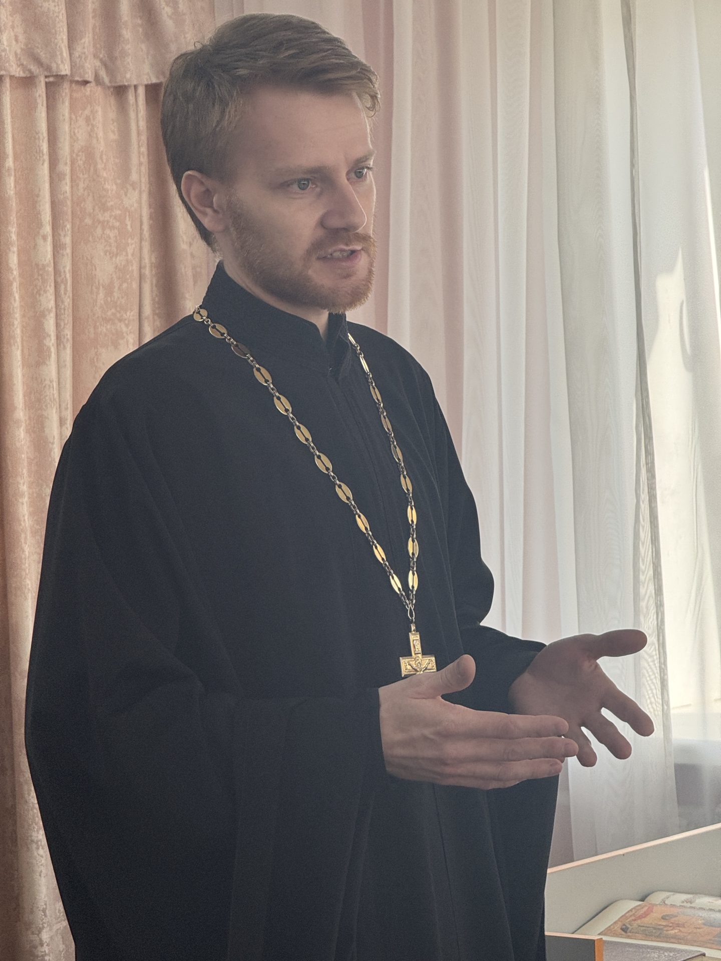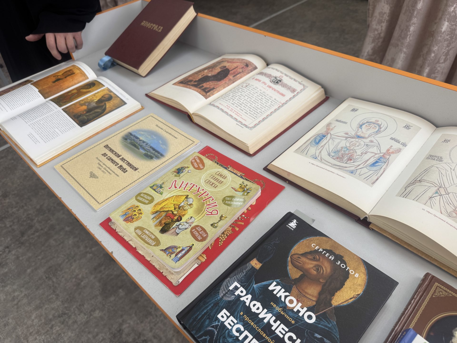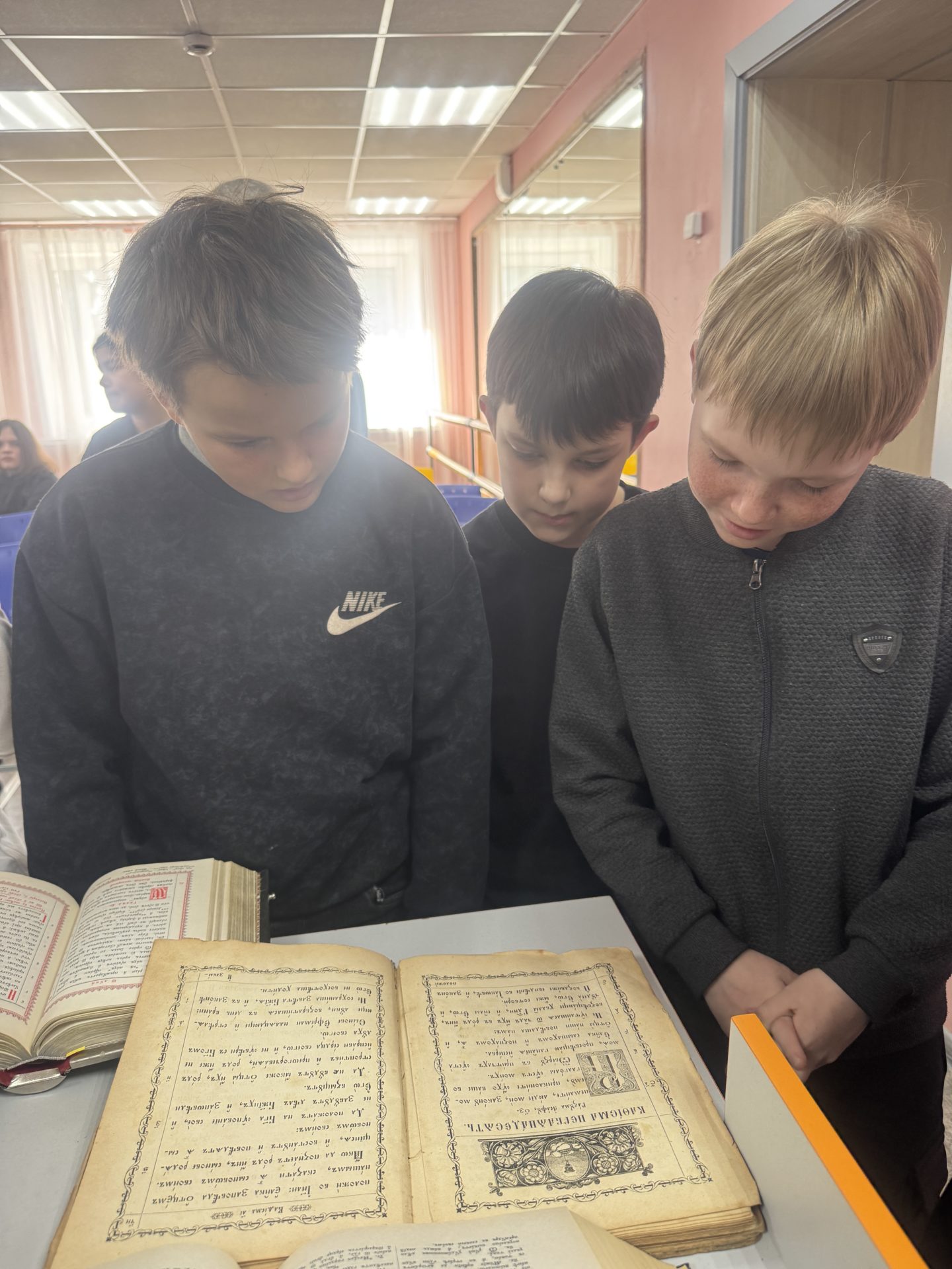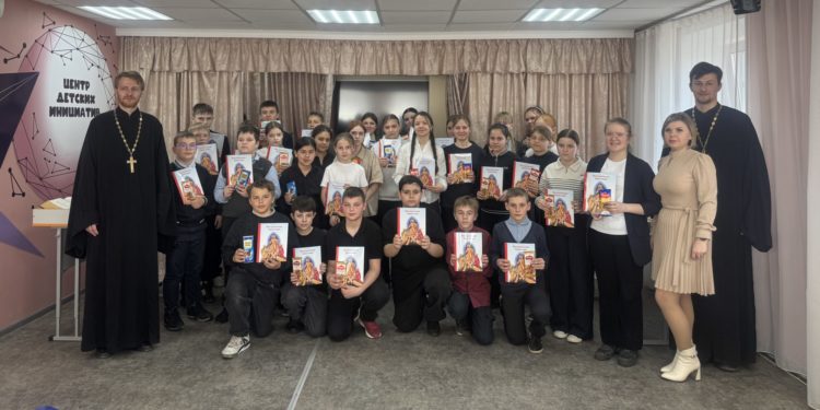 Священнослужители рассказали детям о важности чтения книг для становления личности, красоте и пользе православной литературы. А также познакомили учащихся с конкретными книгами: богослужебным Евангелием (возрастом ~200 лет), современной книгой с историями появления необычных православных икон — «иконографический беспредел», Псалтирью и др.