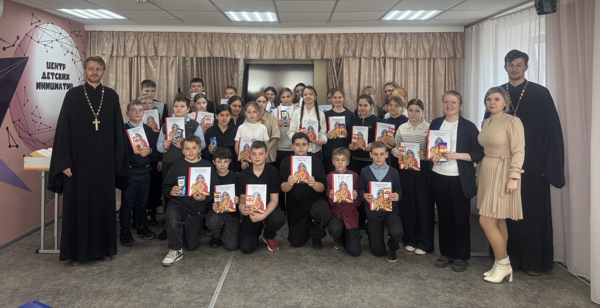 В завершении общения священнослужители поблагодарили учащихся за терпение, активный отклик и подарили каждому по книге «Воскресение Христово».