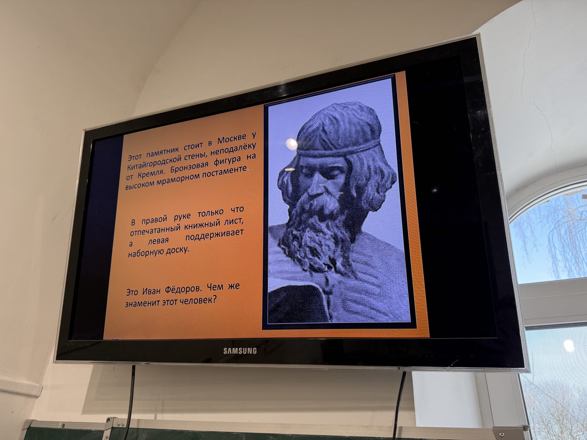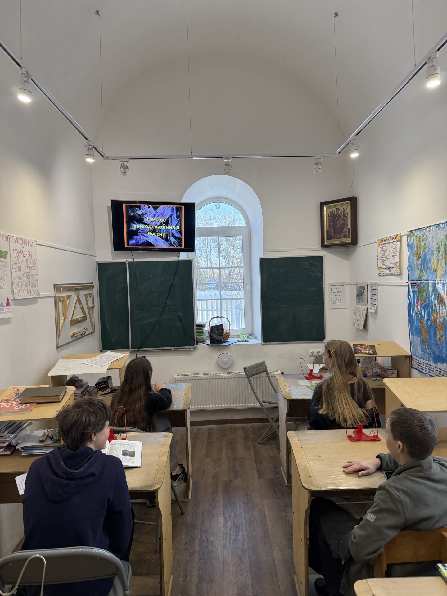 Отец Сергий рассказал учащимся об истории книгопечатания на Руси, отметив, насколько прорывным оказалось изобретение Ивана Федорова, как оно повлияло на развитие образования и унификацию в первую очередь духовной и богослужебной литературы Московского царства.