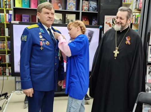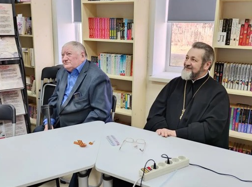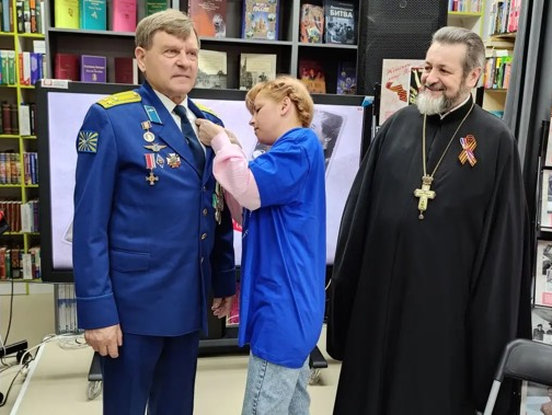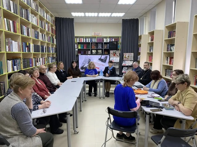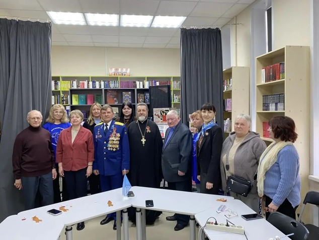 2 апреля в Думиничской библиотеке было организовано мероприятие «Женское лицо Победы» в рамках образовательных чтений по духовно-нравственному воспитанию, которые проводятся в период весенних каникул с 2025-2026 учебного года. На встрече присутствовали: Благочинный Думиничского округа, протоиерей Иоанн Староста, заместитель Главы администрации Левашова Ирина Сергеевна, председатель общественной организации ветеранов Калужской области Анатолий Михайлович Исаченко, представители Совета ветеранов Думиничского округа, директора школ, учителя истории. Приветствовала всех Левашова Ирина Сергеевна, которая поблагодарила присутствующих за проводимую патриотическую работу. Затем о женской доли и о женском служении Отечеству рассказал Отец Иоанн. Присутствующие внимательно слушали батюшку и по окончании выступления задавали вопросы. О легендарной летчице Валентине Гризодубовой был показан фильм и подготовлена выставка, о которой рассказала активистка Думиничского женсовета, директор библиотеки Картышова Елена Ивановна. Очень большой интерес у присутствующих вызвало выступление полковника в отставке, военного вертолётчика Анатолия Михайловича Исаченко об его боевых вылетах. Запланировали подобную встречу организовать с учащимися. Приятным сюрпризом стал мастер-класс по изготовлению Георгиевской ленточки, который провела Челнокова Наталья Алексеевна.