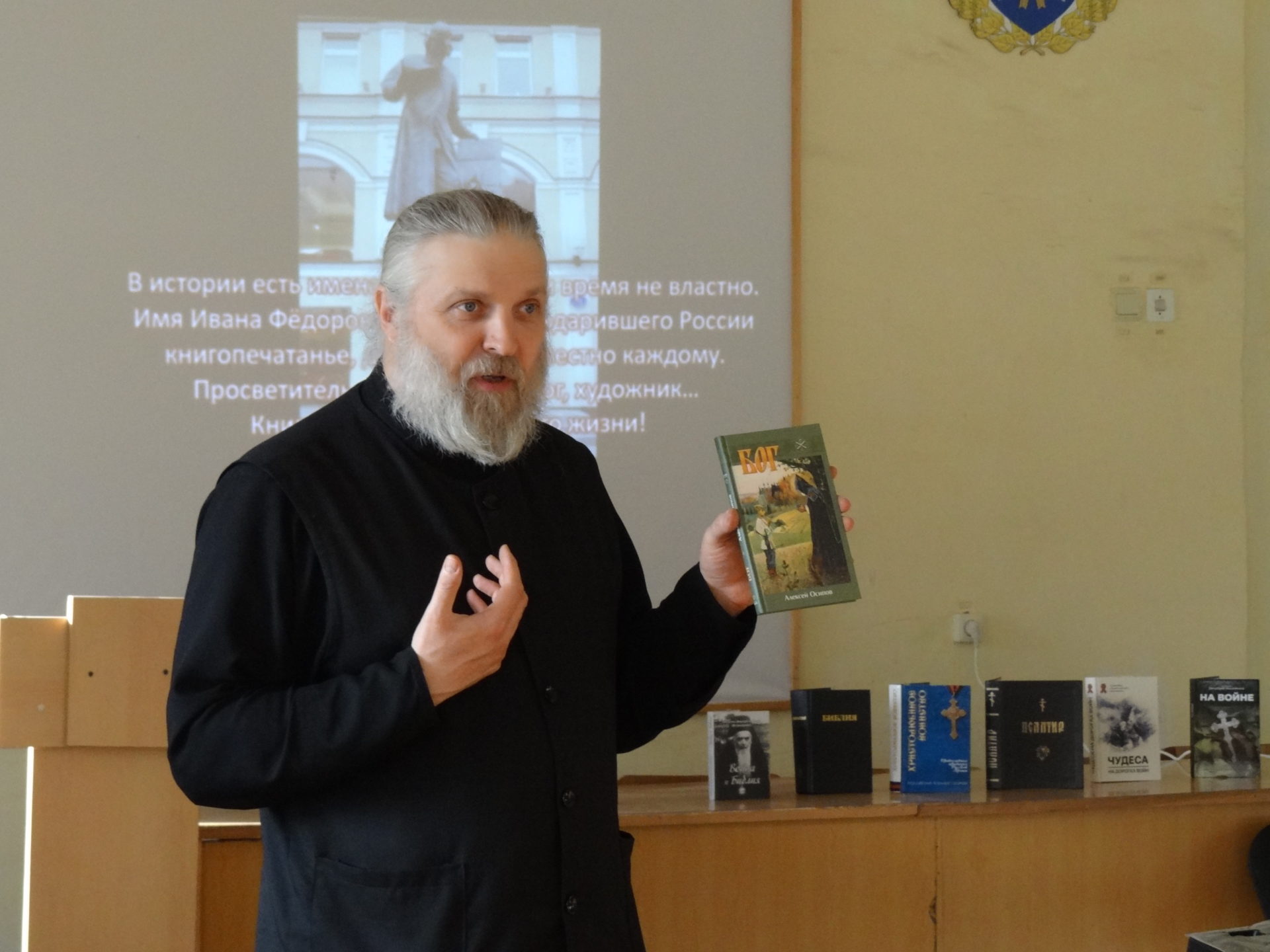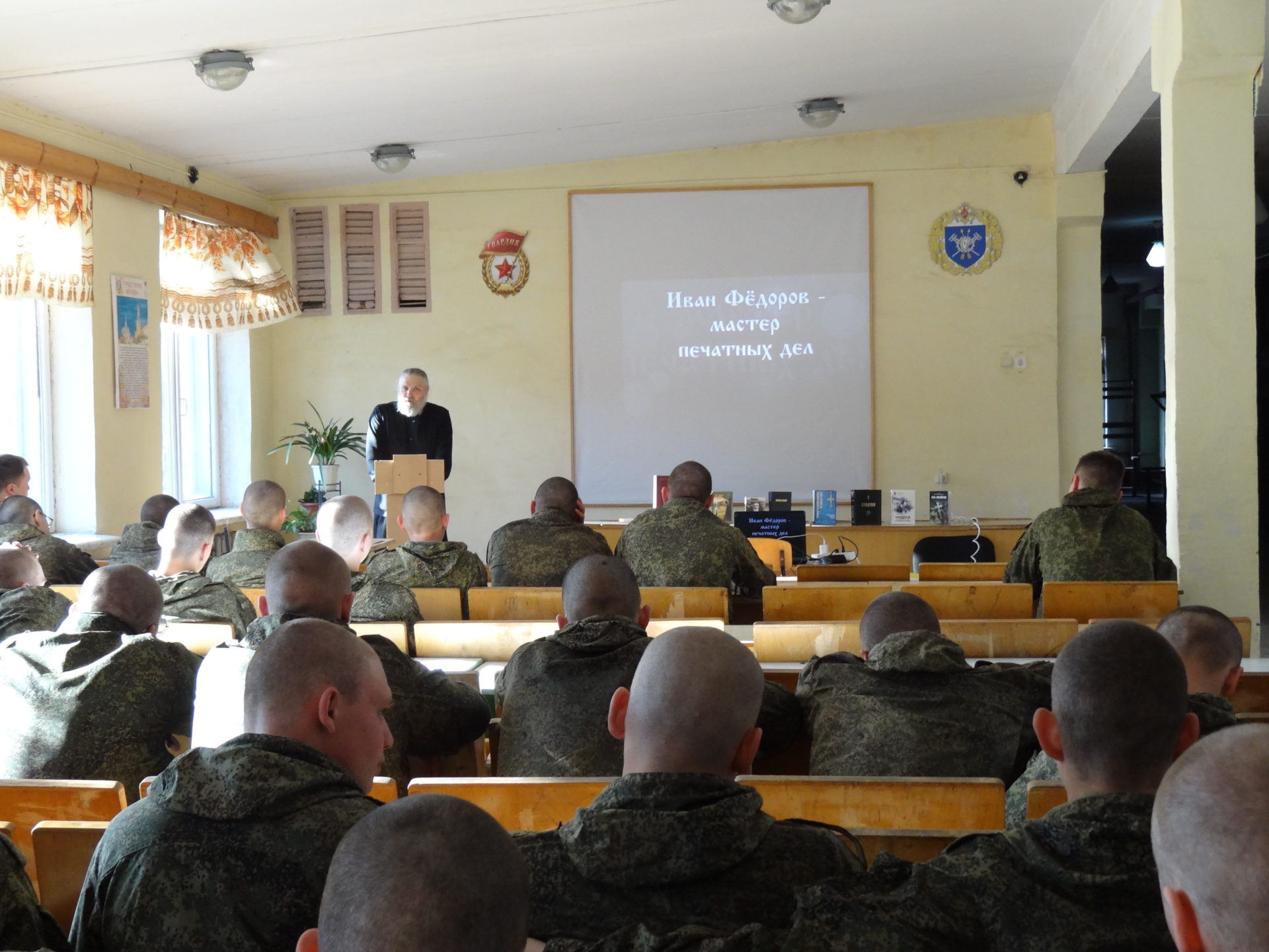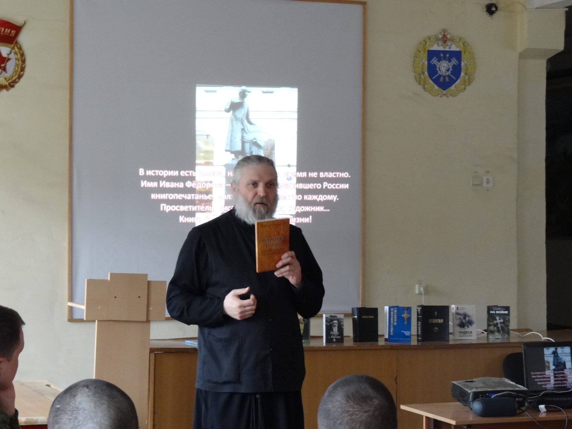 Священник рассказал военнослужащим о истории этого праздника, о возникновении первой печатной книги «Апостол». Был просмотрен видеофильм, посвященный жизни и деятельности первопечатника Ивана Федорова. Была представлена рукописная книга, вызвав неподдельный интерес присутствующих. Загаданы были загадки и произнесены пословицы о пользе чтения книг.
