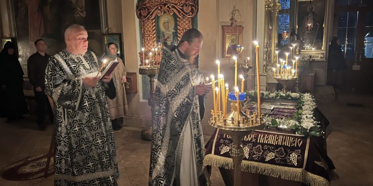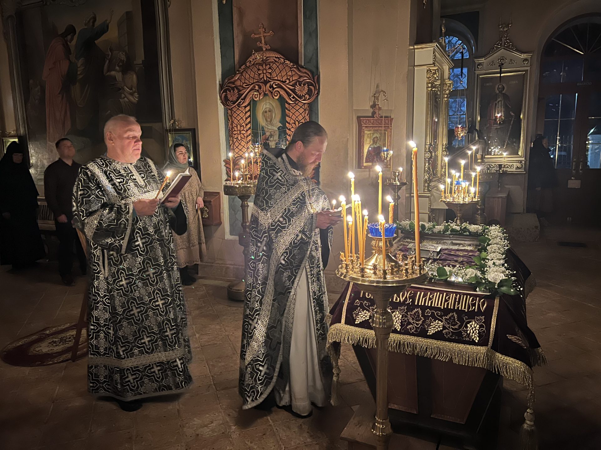 В Преображенском храме вот уже более 70-ти лет есть традиция служить утреню с чином Погребения и часы с Литургией, не разделяя их на вечер пятницы и утро субботы, а всё вместе ночью. Эту традицию принесли в храм служившие в нем в советское время  новомученики Оптинские преподобномученик Гурий (Самойлов) и иеромонах Арсений (Мельников), бывший насельником скита.