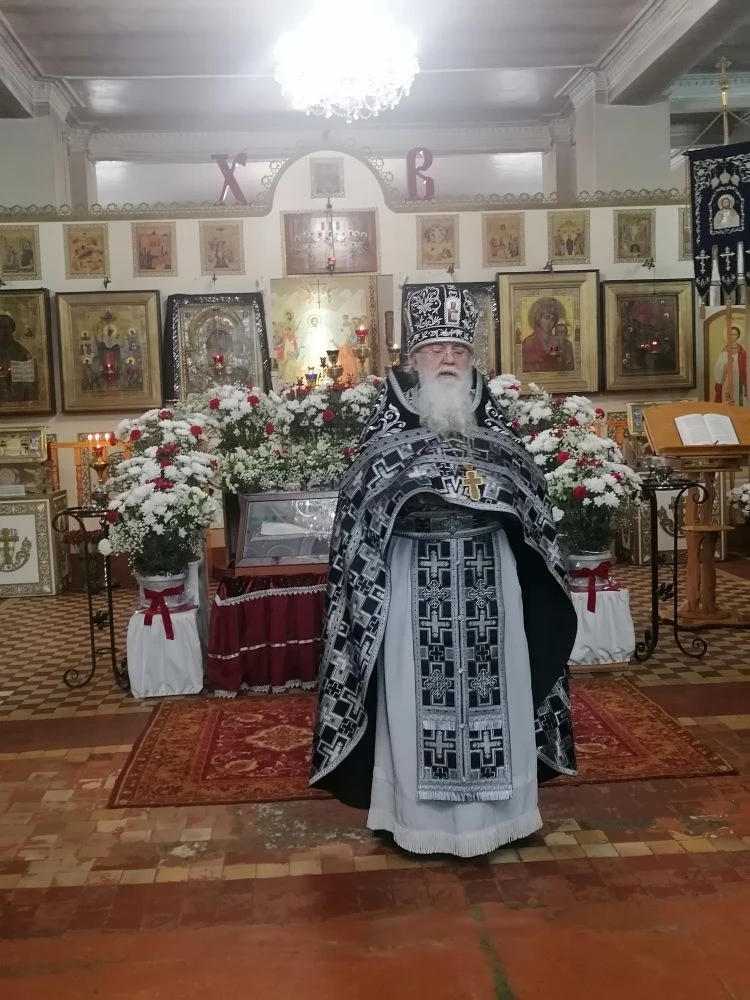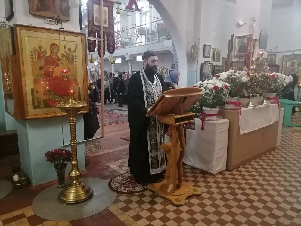 10 апреля 2026 года, в Великую Пятницу, в день воспоминания крестной смерти Господа нашего Иисуса Христа, настоятель Казанского собора города Людиново протоиерей Алексий Жиганов в сослужении клириков храма иерея Алексия Сначева, иерея Владислава Скоркина, диакона Андрея Соколова совершили вечерню с выносом Святой Плащаницы в храме.