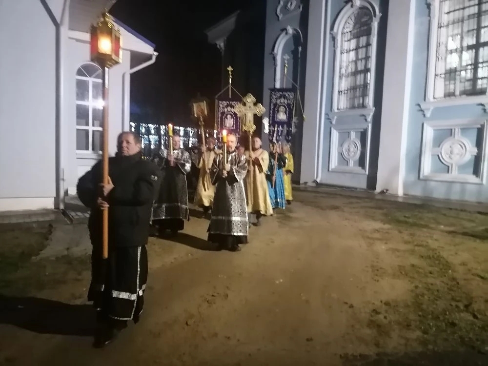 В этот же день, вечером, в канун Великой Субботы, настоятель Казанского собора города Людиново протоиерей Алексий Жиганов в сослужении клириков храма совершили утреню с Чином погребения Господа нашего Иисуса Христа.