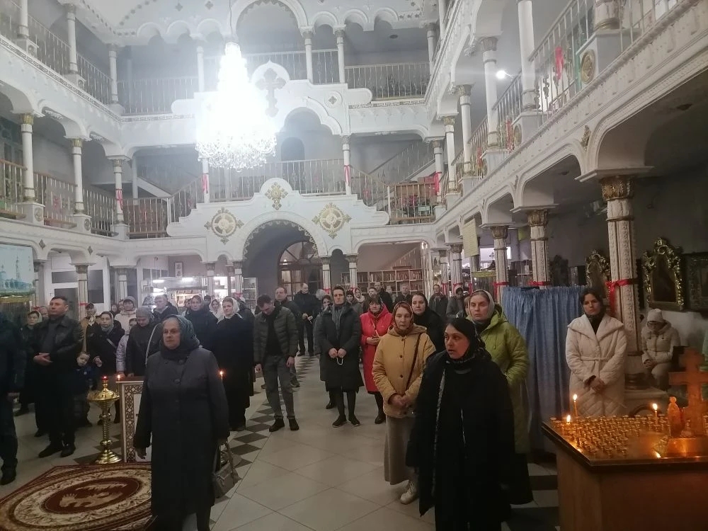 По традиции Великая вечерня, в воспоминание страданий Спасителя, снятия с креста тела Христова и погребения Его совершается раньше обычного – в час крестной смерти Господа Иисуса Христа. По выносе Плащаницы был прочитан канон «на Распятие Господне и на плач Пресвятой Богородицы».
