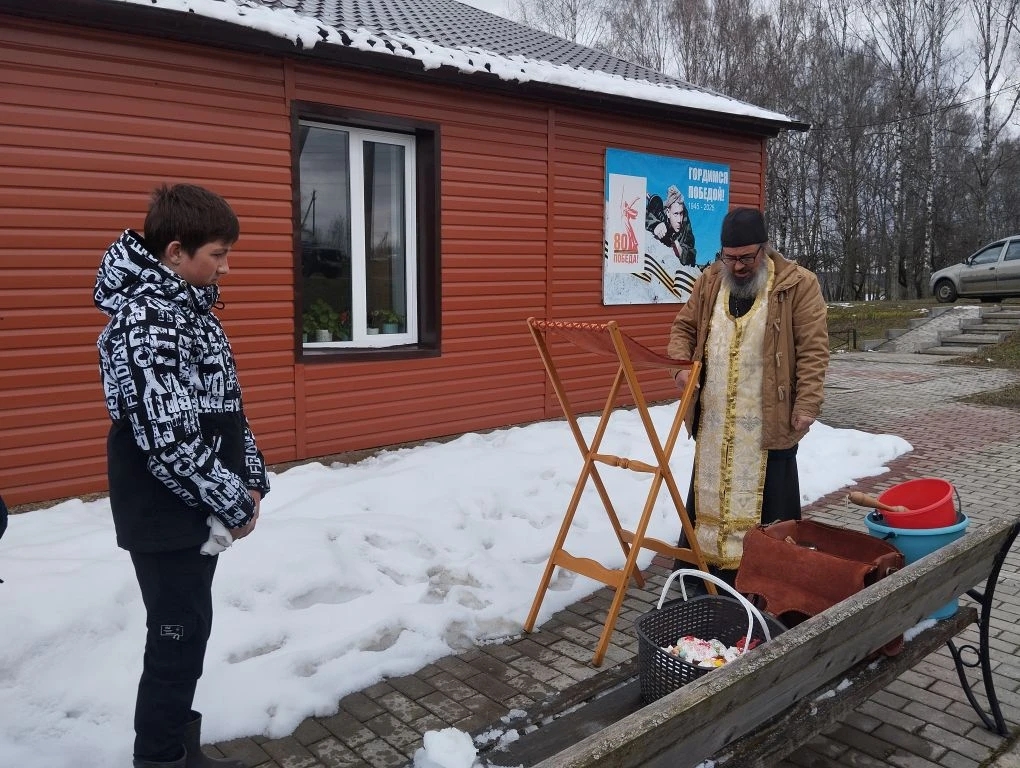 В Великую Субботу, настоятель храма в честь мучениц Евдокии, Дарии, Дарии и Марии села Уколица Ульяновского благочиния Козельской Епархии иерей Стахий Гайсин, посетил 7 деревень, что бы освятить пасхальные куличи и яйца.