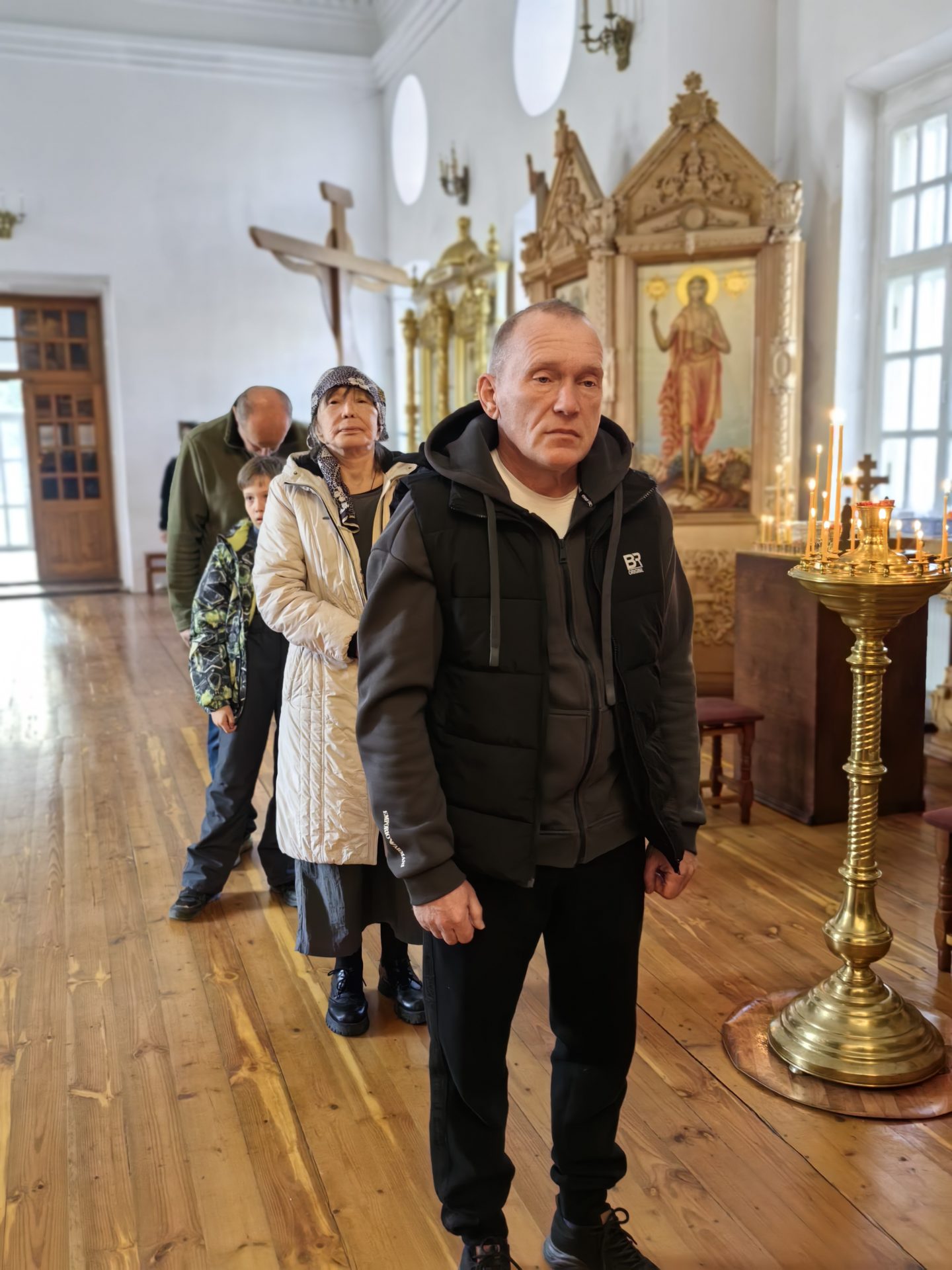 За богослужением молилась настоятельница обители монахиня Афанасия (Алексеева) с сестрами обители и паломники.