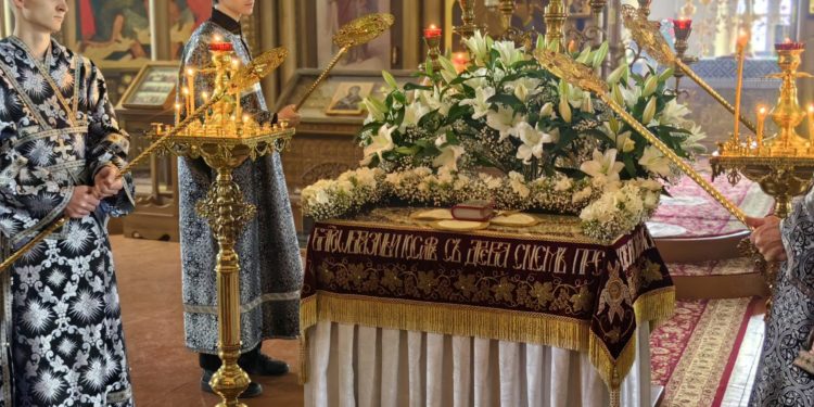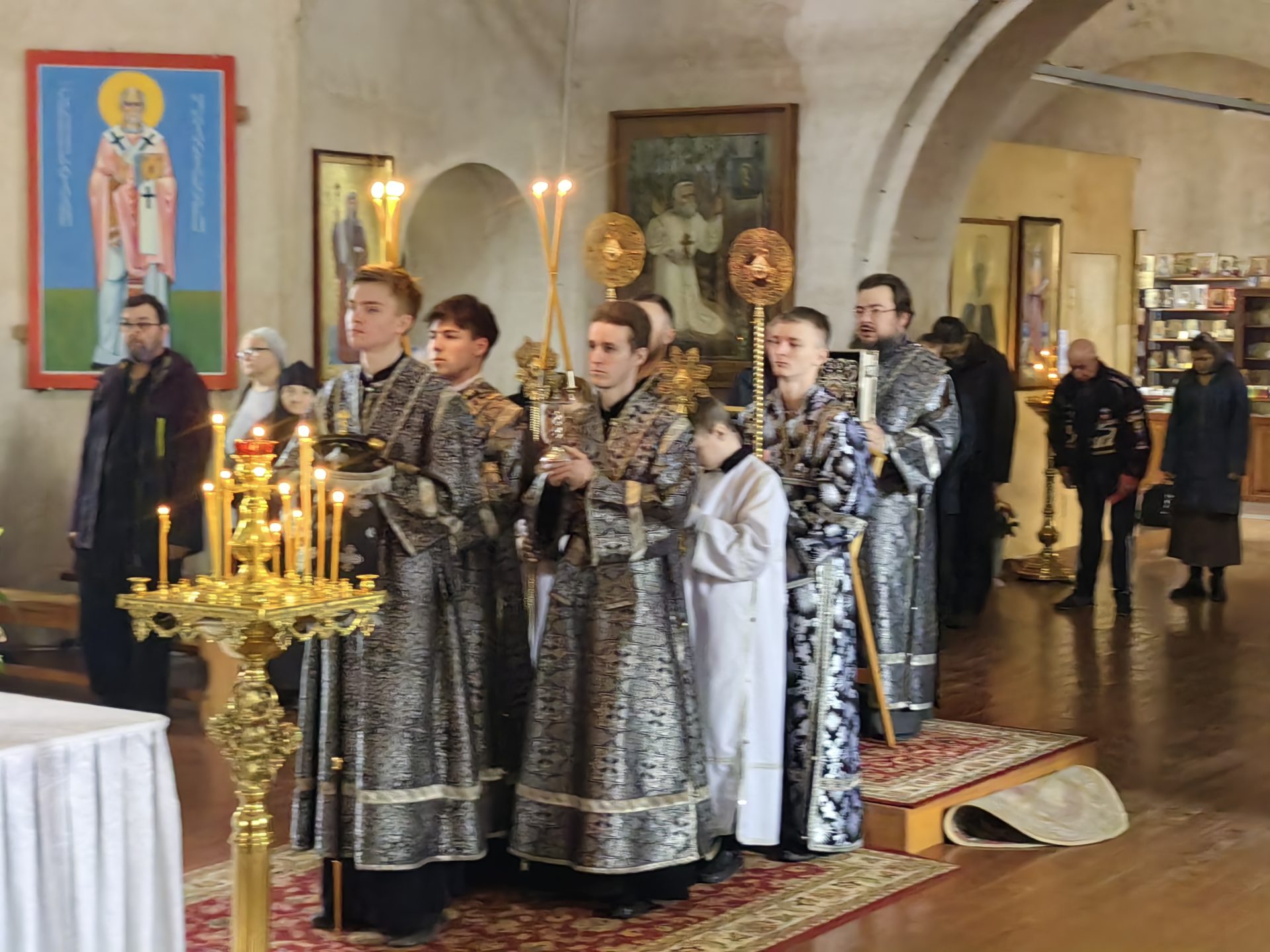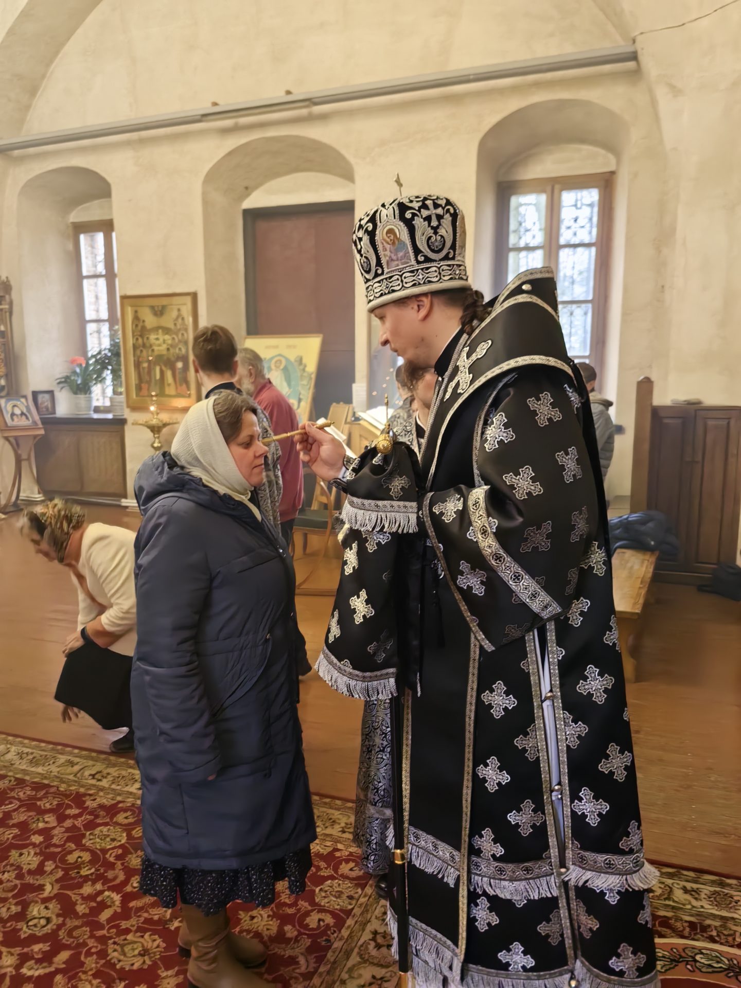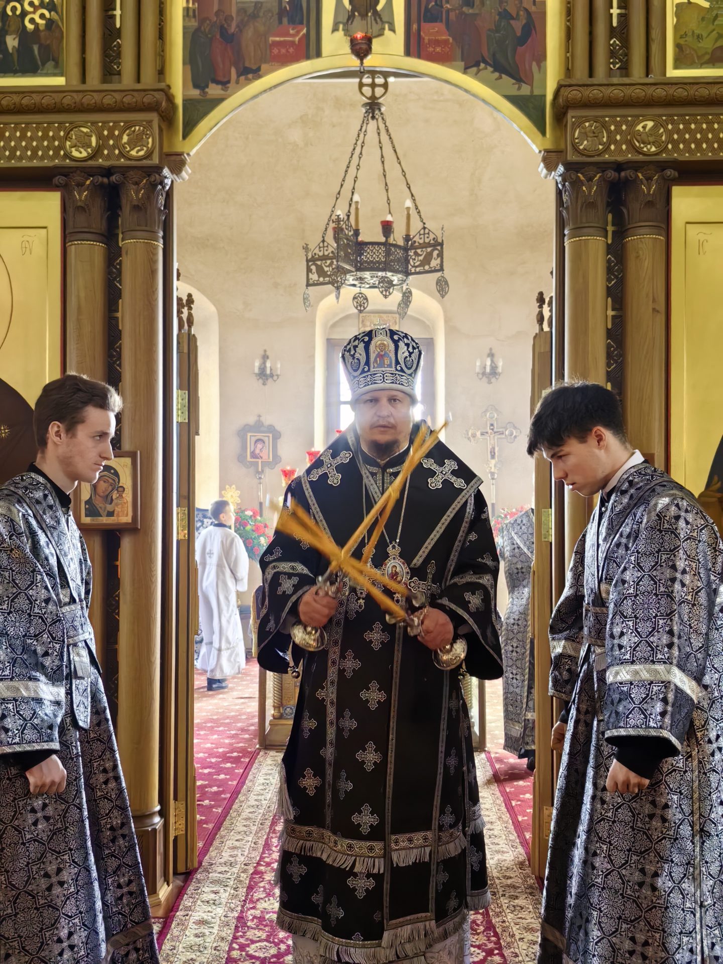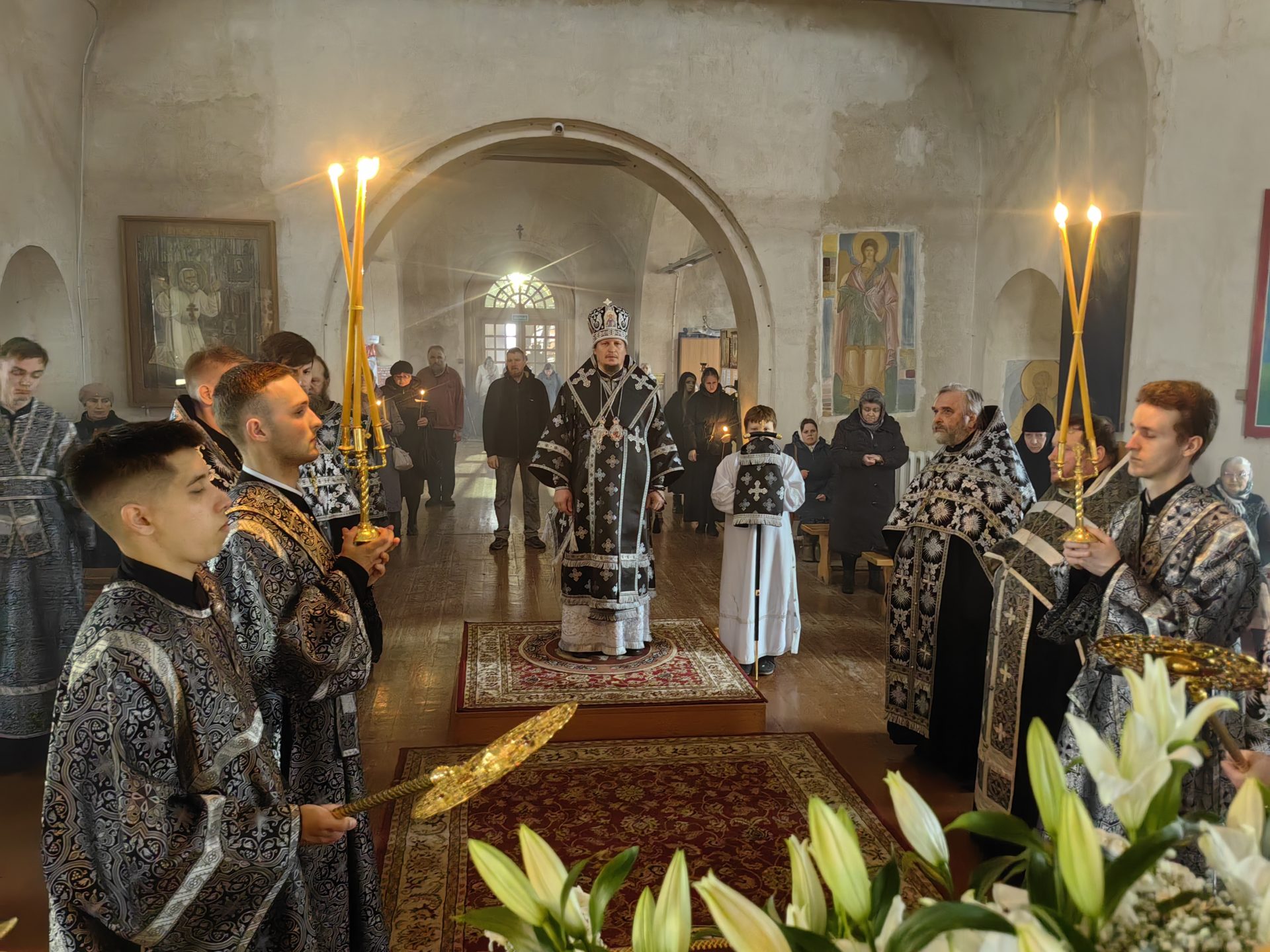 Днём епископ Макарий возглавил служение вечерни с чином выноса Плащаницы, малое повечерие с умилительным каноном на погребение тела Спасителя и утреню с чином погребения Плащаницы.