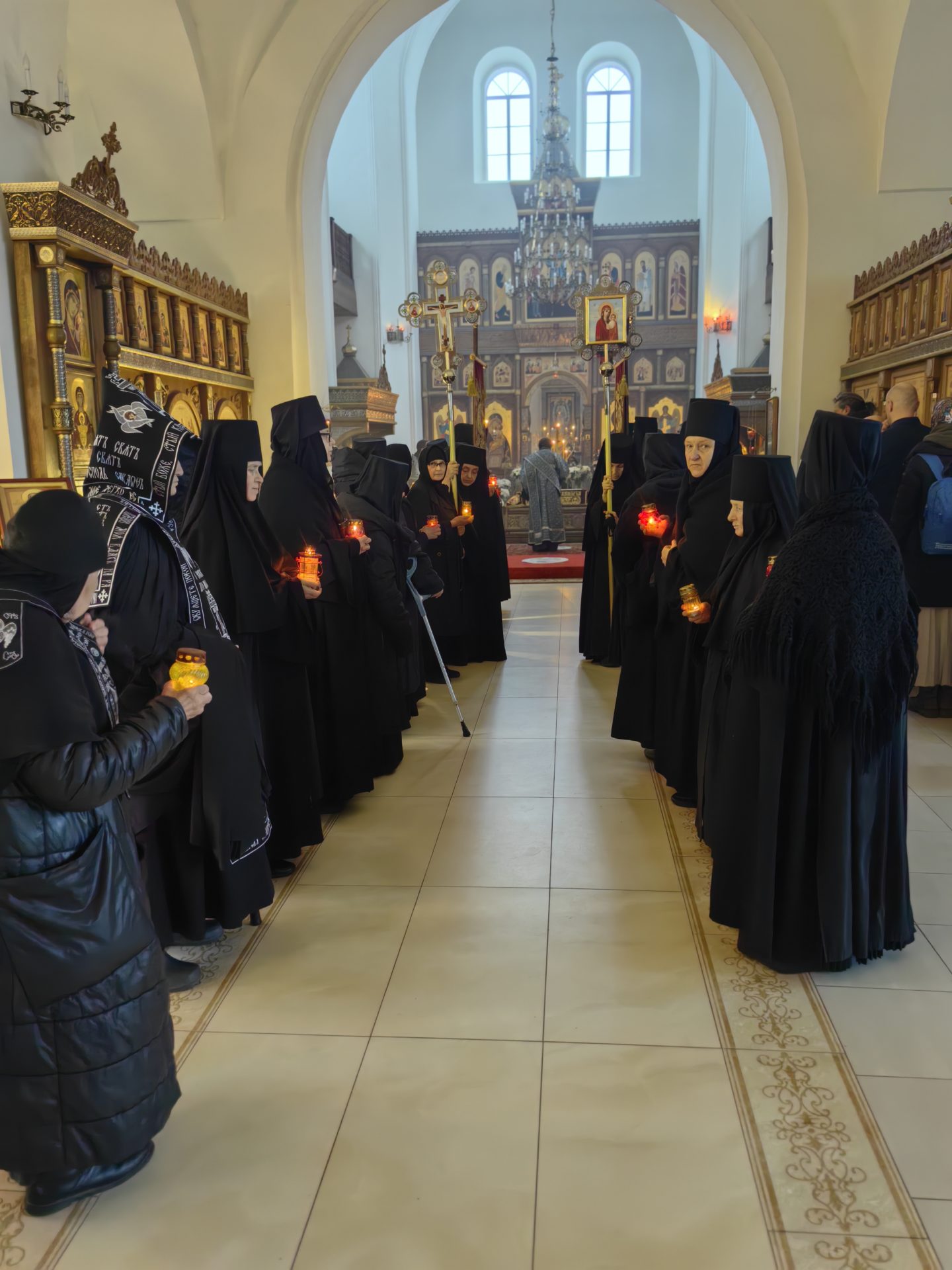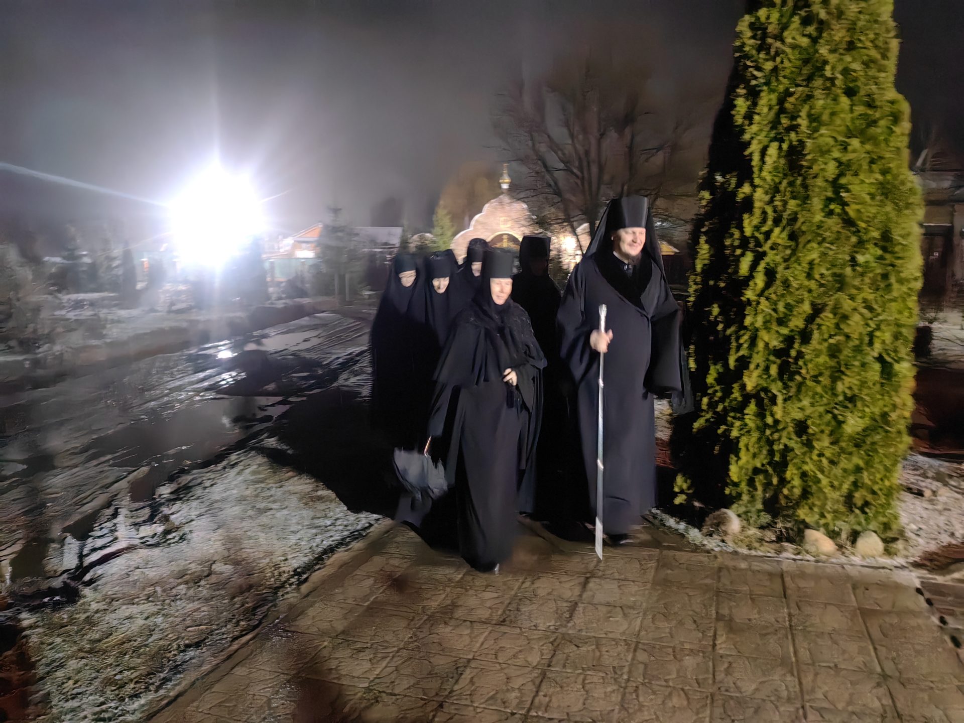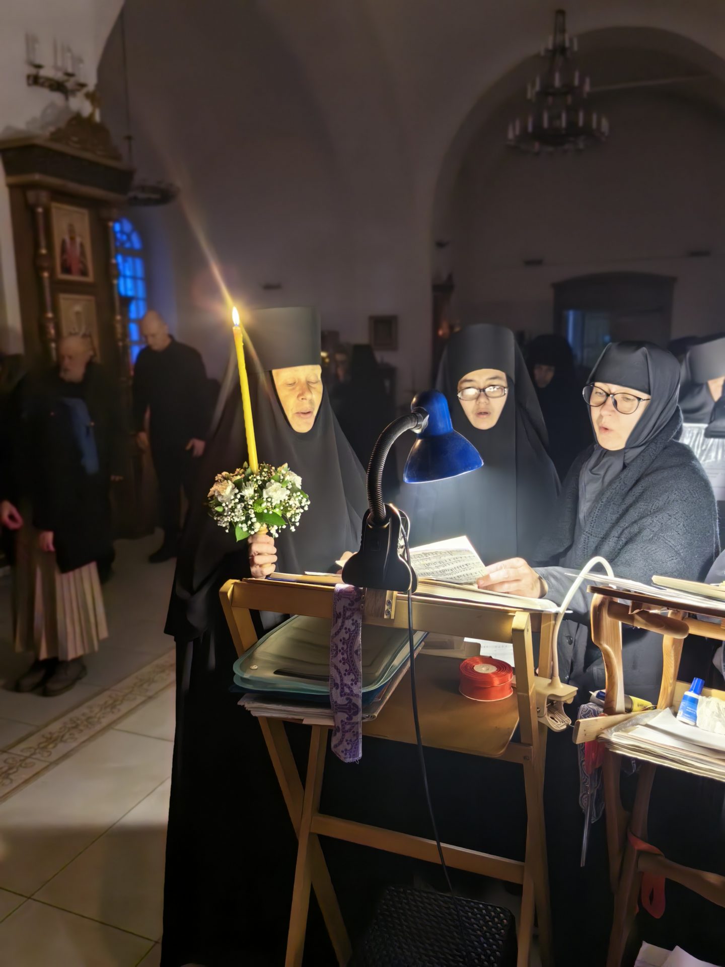 За богослужением молилась и.о. игумении обители монахиня Антония (Бубнова) с сестрами обители.